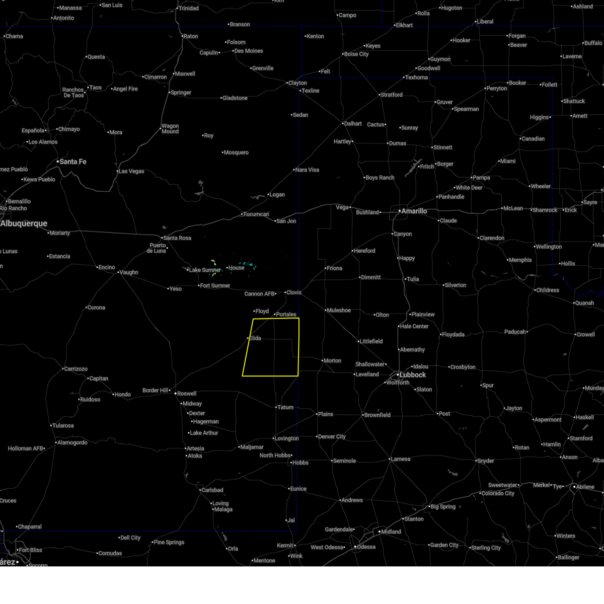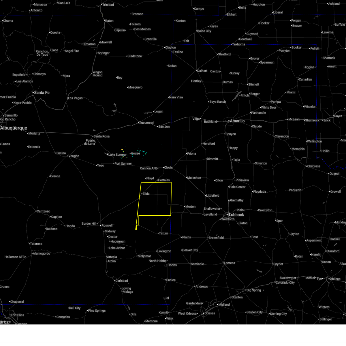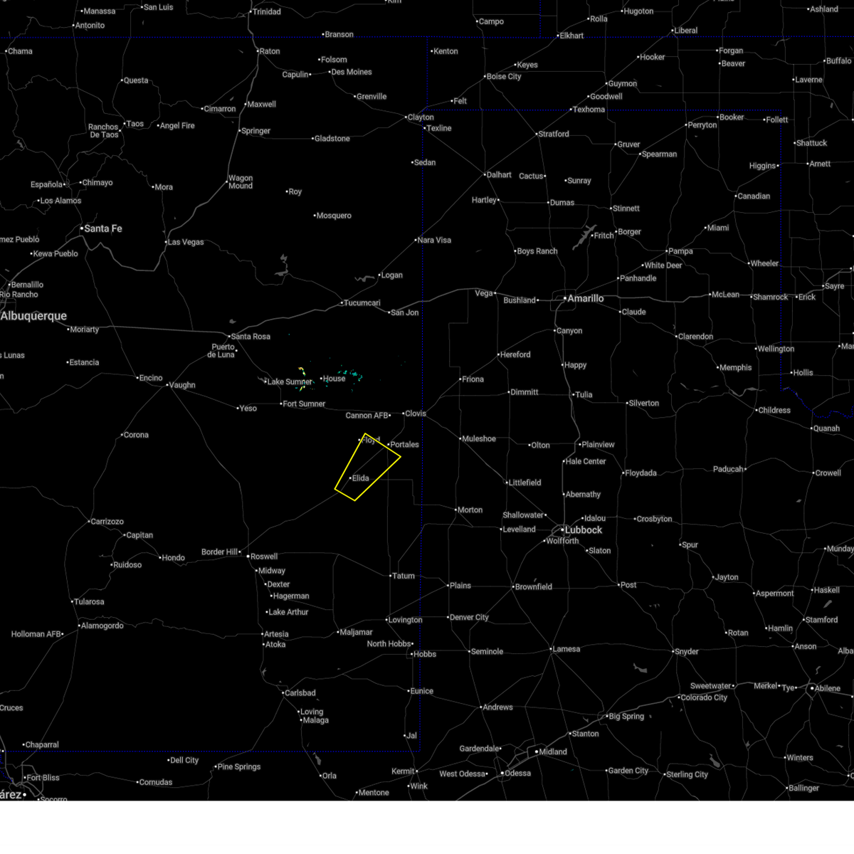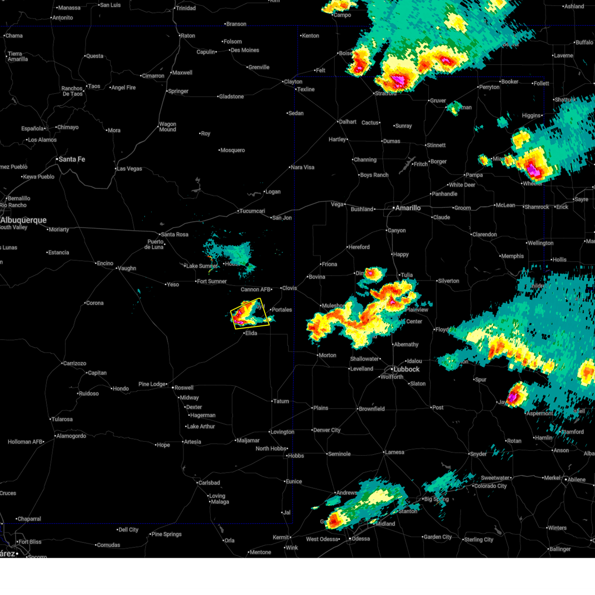 At 417 pm mdt, a severe thunderstorm was located 13 miles north of elida, or 18 miles west of portales, moving northeast at 45 mph (radar indicated). Hazards include ping pong ball size hail and 60 mph wind gusts. People and animals outdoors will be injured. expect hail damage to roofs, siding, windows, and vehicles. expect wind damage to roofs, siding, and trees. locations impacted include, clovis, portales, melrose, elida, floyd, saint vrain, cannon air force base, kenna, oasis state park and portair. A tornado watch remains in effect until 1000 pm mdt for southeastern and east central new mexico.