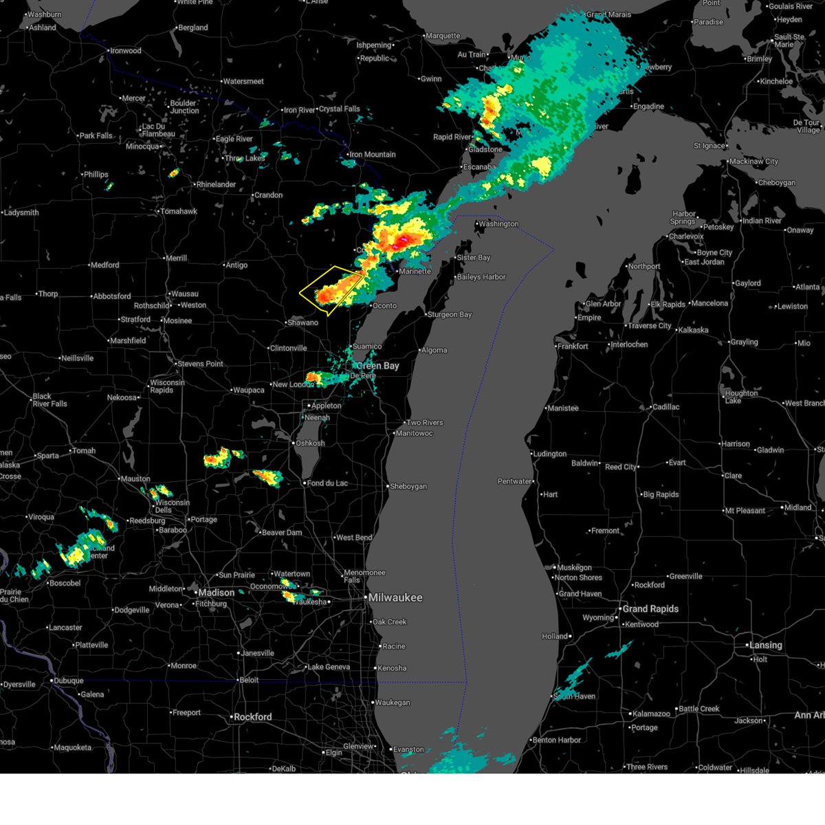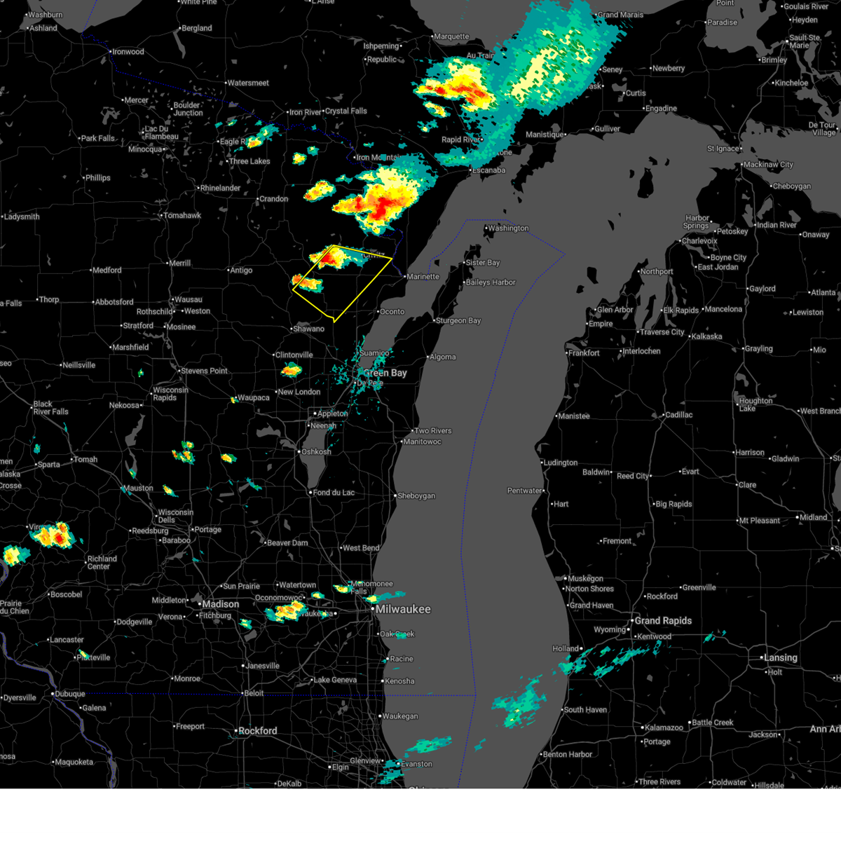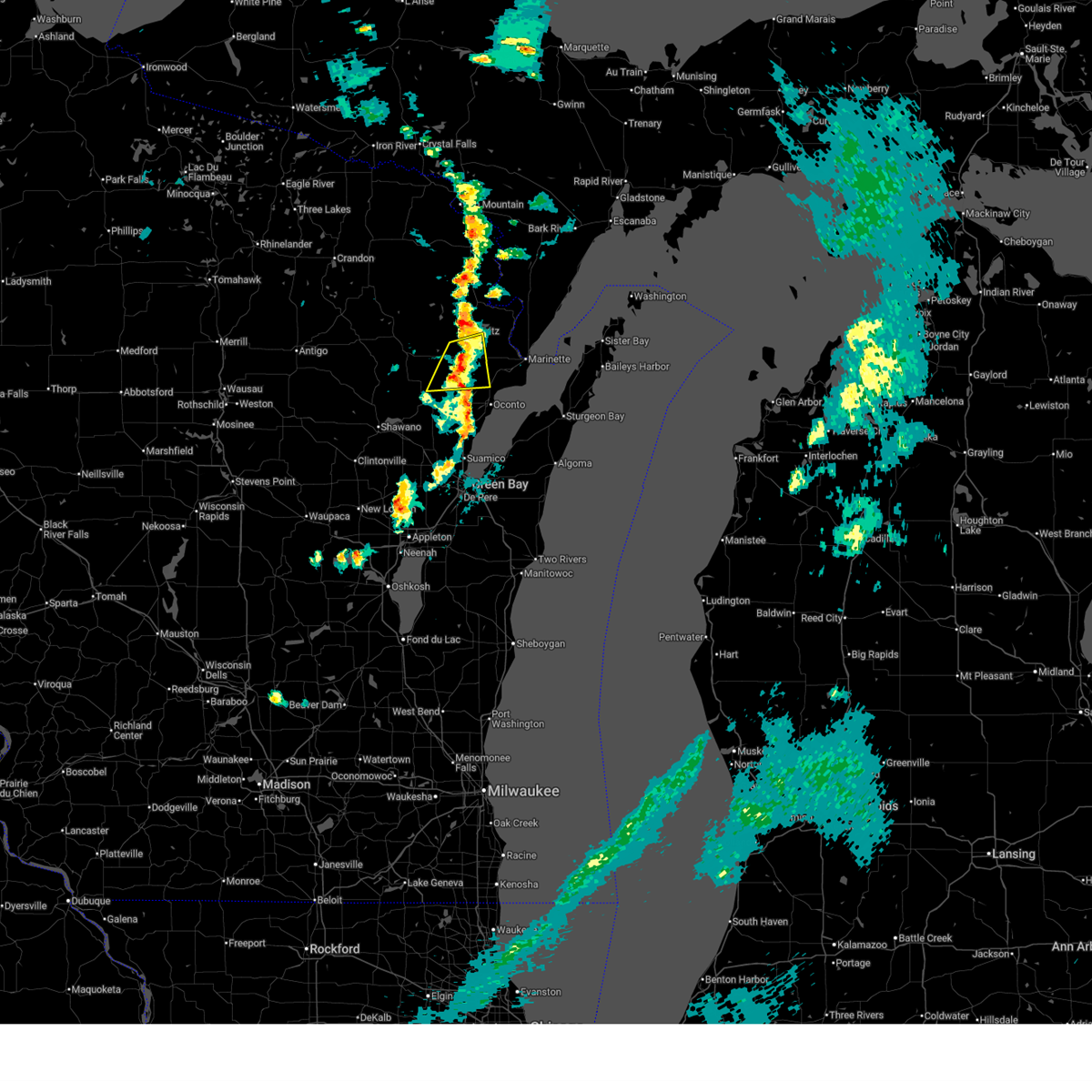 At 638 am cdt, severe thunderstorms were located along a line extending from near stephenson to near pound to gillett, moving east at 40 mph (radar indicated). Hazards include 60 mph wind gusts. Expect damage to roofs, siding, and trees. these severe storms will be near, oconto around 655 pm cdt marinette around 700 am cdt. menominee around 705 am cdt. Other locations impacted by these severe thunderstorms include cullen, underhill, breed, middle inlet, hayes, silver cliff, pensaukee, high falls reservoir, hickory corners and porterfield.
