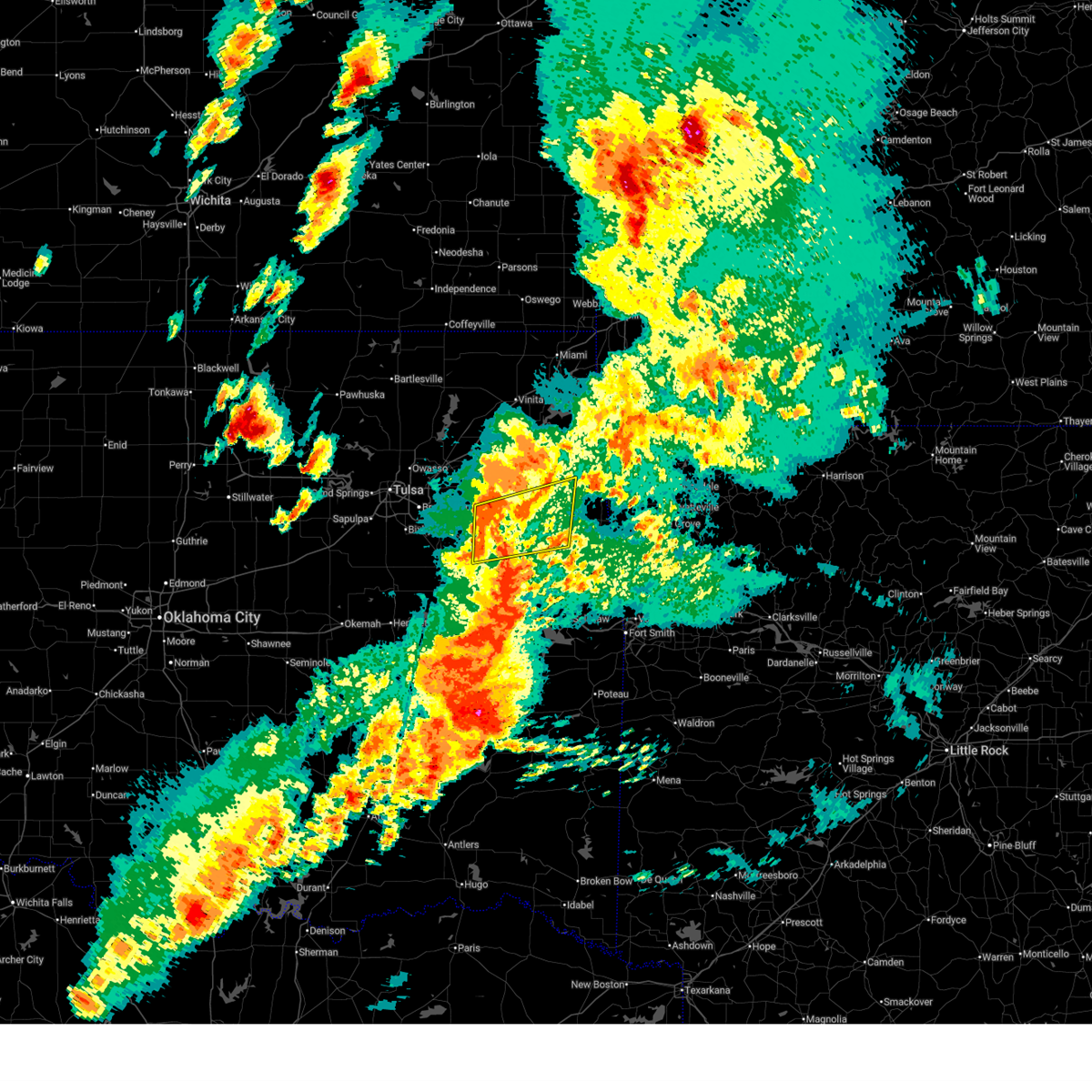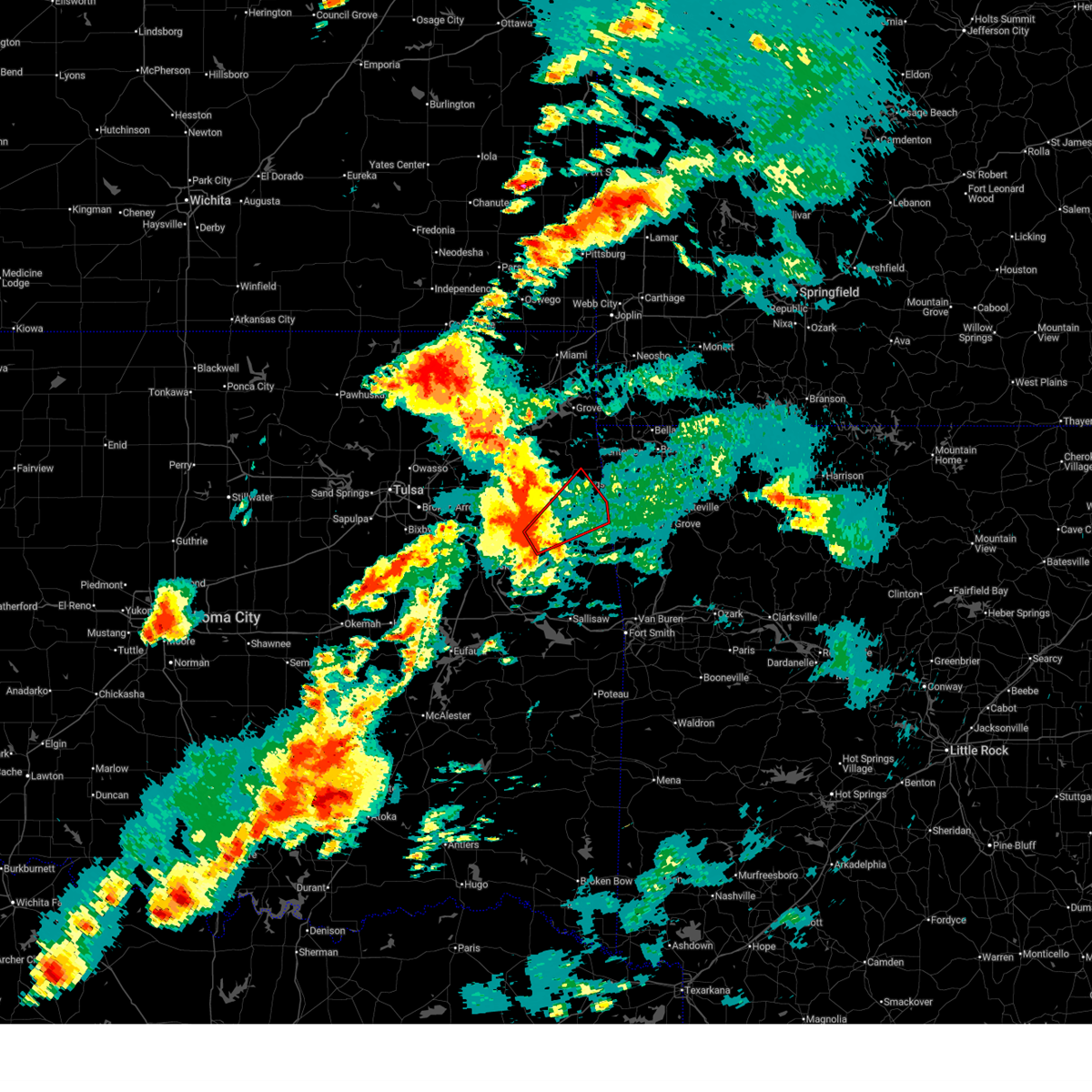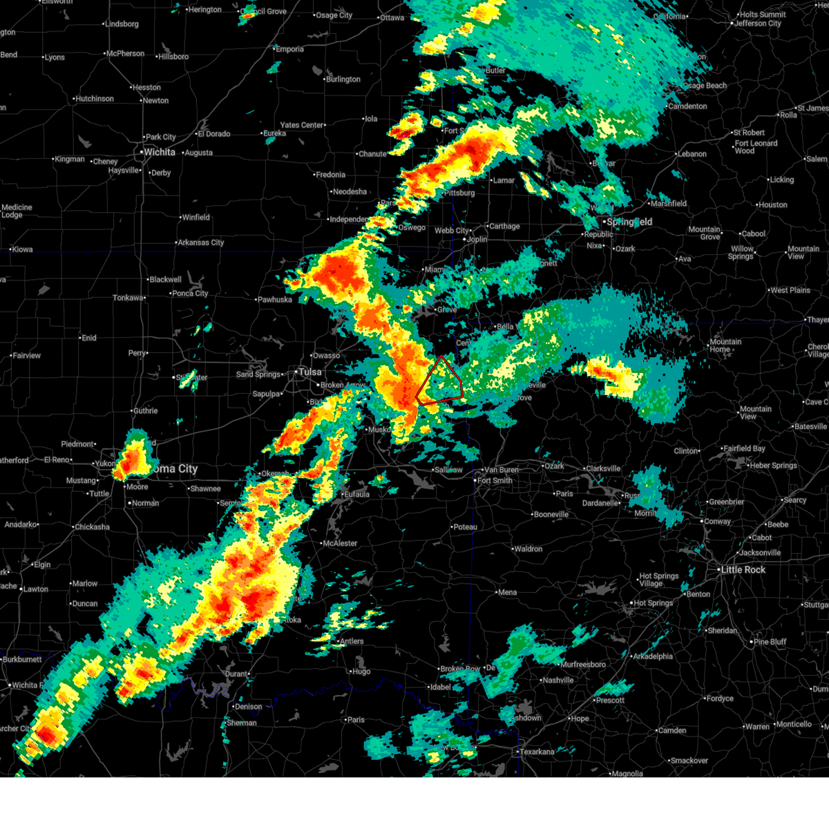 At 502 pm cdt, a severe thunderstorm capable of producing a tornado was located 4 miles west of eldon, moving northeast at 40 mph (radar indicated rotation). Hazards include tornado. Flying debris will be dangerous to those caught without shelter. mobile homes will be damaged or destroyed. damage to roofs, windows, and vehicles will occur. tree damage is likely. Locations in or near the path include, ballard, eldon, proctor, westville, christie, scraper, watts, natural falls state park, tahlequah,.