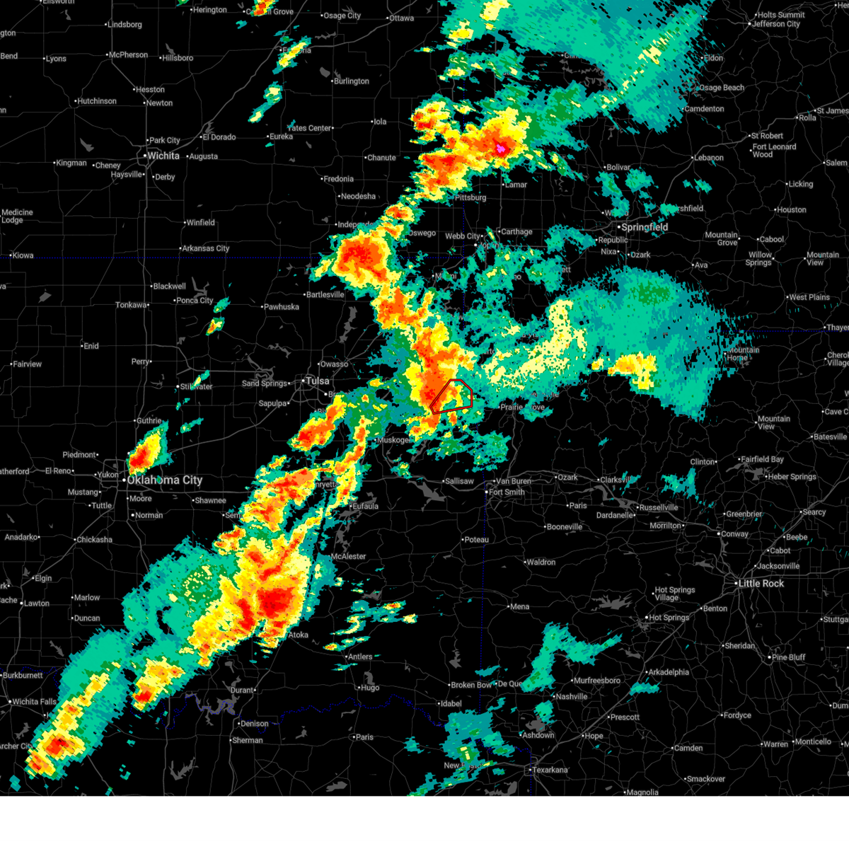 At 118 pm cdt, severe thunderstorms were located along a line extending from near sportsmen acres community to near wagoner to 5 miles north of oktaha to dewar, moving east at 45 mph. these are very dangerous storms (radar indicated). Hazards include 90 mph wind gusts and quarter size hail. You are in a life-threatening situation. flying debris may be deadly to those caught without shelter. mobile homes will be heavily damaged or destroyed. homes and businesses will have substantial roof and window damage. expect extensive tree damage and power outages. Locations in or near the path include, muskogee, tahlequah, sallisaw, wagoner, stilwell, eufaula, stigler, pryor creek, henryetta, fort gibson, checotah, chouteau, warner, westville, vian, locust grove, salina, quinton, gore, dewar, this includes interstate 40 in oklahoma between mile markers 233 and 311.