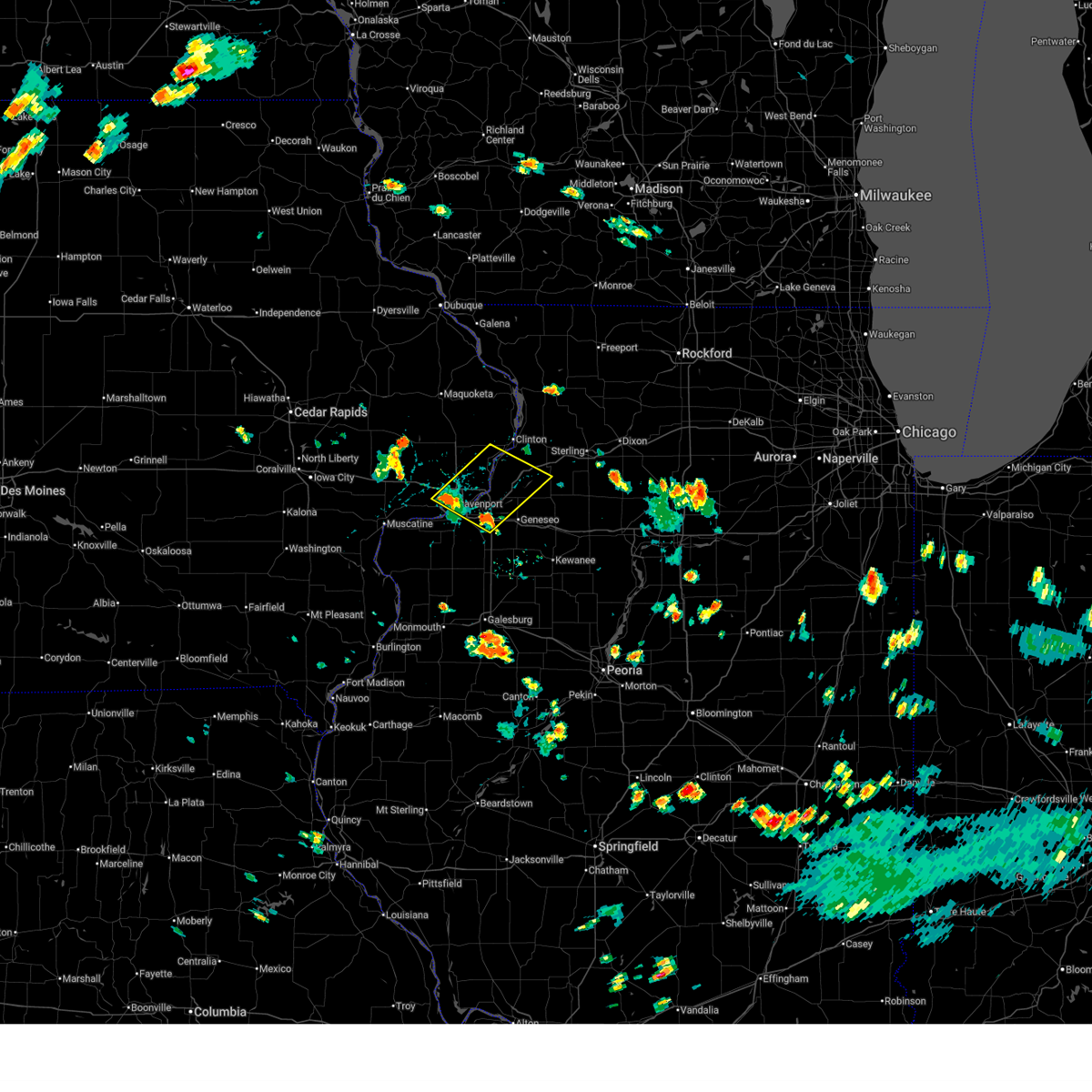 At 445 pm cst, a severe thunderstorm capable of producing a tornado was located near milan, or near rock island, moving northeast at 45 mph (radar indicated rotation). Hazards include tornado. Flying debris will be dangerous to those caught without shelter. mobile homes will be damaged or destroyed. damage to roofs, windows and vehicles will occur. tree damage is likely. this dangerous storm will be near, rock island around 455 pm cst. davenport, moline, silvis and riverdale around 500 pm cst. bettendorf, east moline, eldridge and hampton around 505 pm cst. le claire, rapids city and long grove around 510 pm cst. port byron, princeton, cordova and mccausland around 515 pm cst. other locations impacted by this tornadic thunderstorm include panorama park, silvis heights, illiniwek forest preserve, scott county park, fishermans corner, davenport municipal airport, mississippi valley fairgrounds, rock creek marina and campground, park view and malone. this includes the following highways, interstate 74 in iowa between mile markers 1 and 5. interstate 80 in iowa between mile markers 292 and 306. interstate 80 in illinois between mile markers 1 and 2. interstate 74 in illinois between mile markers 2 and 3. Interstate 280 between mile markers 3 and 18.