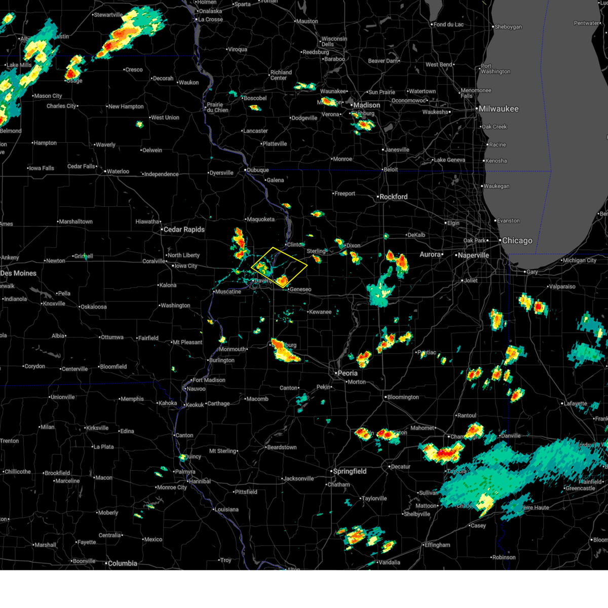 At 716 pm cdt, a severe thunderstorm capable of producing a tornado was located over milan, or over rock island, moving east at 30 mph (radar indicated rotation). Hazards include tornado and half dollar size hail. Flying debris will be dangerous to those caught without shelter. mobile homes will be damaged or destroyed. damage to roofs, windows, and vehicles will occur. tree damage is likely. this dangerous storm will be near, moline and riverdale around 725 pm cdt. east moline, coal valley and warner around 730 pm cdt. silvis and hampton around 735 pm cdt. colona, rapids city and cleveland around 740 pm cdt. osborn around 745 pm cdt. geneseo around 755 pm cdt. other locations impacted by this tornadic thunderstorm include panorama park, silvis heights, illiniwek forest preserve, fishermans corner, joslin, mississippi valley fairgrounds, morristown, hillsdale, pleasant valley and coyne center. this includes the following highways, interstate 74 in iowa between mile markers 2 and 5. interstate 80 in iowa between mile markers 304 and 306. interstate 80 in illinois between mile markers 1 and 22. interstate 74 in illinois between mile markers 2 and 3. interstate 88 between mile markers 1 and 13. Interstate 280 between mile markers 5 and 18.