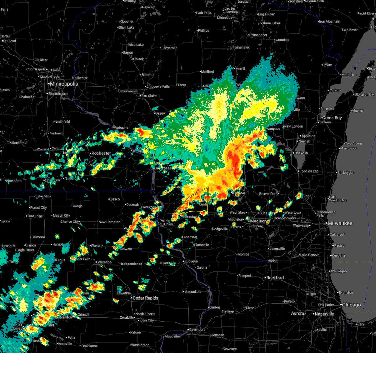 At 505 pm cdt, severe thunderstorms were located along a line extending from 10 miles west of boscobel to near muscoda, moving northeast at 70 mph (radar indicated). Hazards include 60 mph wind gusts and quarter size hail. Hail damage to vehicles is expected. expect wind damage to roofs, siding, and trees. severe thunderstorms will be near, muscoda around 510 pm cdt. richland center and clayton around 520 pm cdt. viroqua around 530 pm cdt. la farge around 535 pm cdt. hillsboro around 545 pm cdt. other locations impacted by these severe thunderstorms include westport, excelsior, rockbridge, wauzeka and viola. A tornado watch remains in effect until 1100 pm cdt for central, southwestern and west central wisconsin.