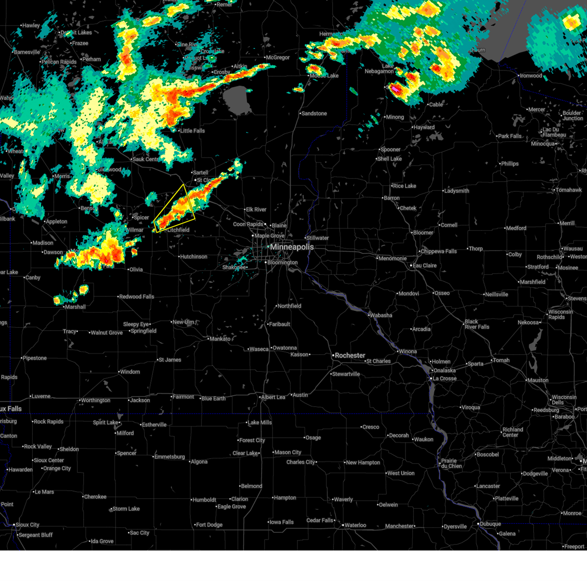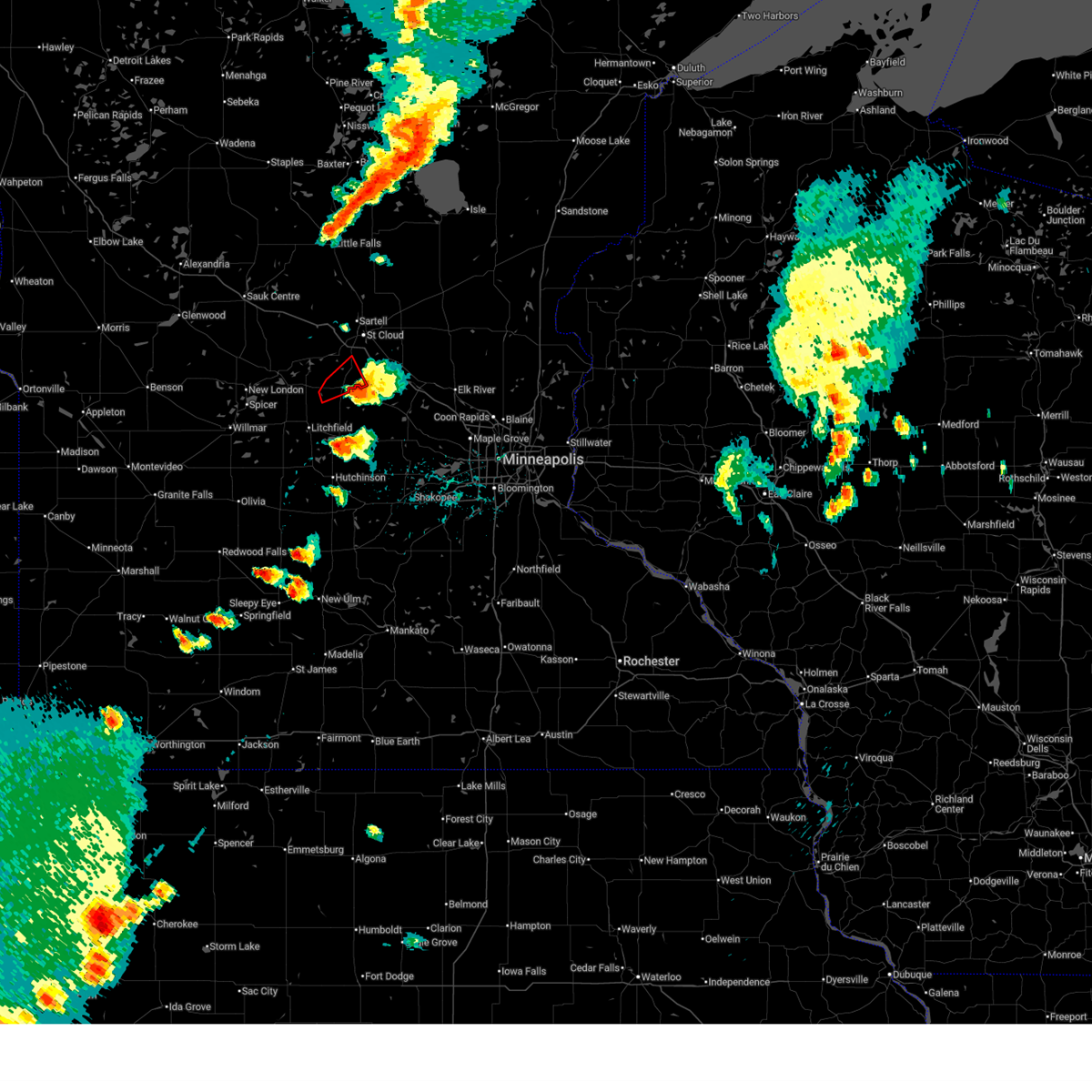 At 137 am cdt, severe thunderstorms were located along a line extending from near rockville to near forest city to near lakeside, moving northeast at 55 mph (radar indicated). Hazards include 60 mph wind gusts and nickel size hail. Expect damage to roofs, siding, and trees. severe thunderstorms will be near, dassel around 140 am cdt. kimball around 150 am cdt. st. cloud and annandale around 155 am cdt. cokato and maple lake around 200 am cdt. winsted, howard lake, clearwater and clear lake around 205 am cdt. Other locations impacted by these severe thunderstorms include enfield, silver creek, fairhaven, south haven, st augusta, smith lake, greenleaf, darwin, santiago and french lake.