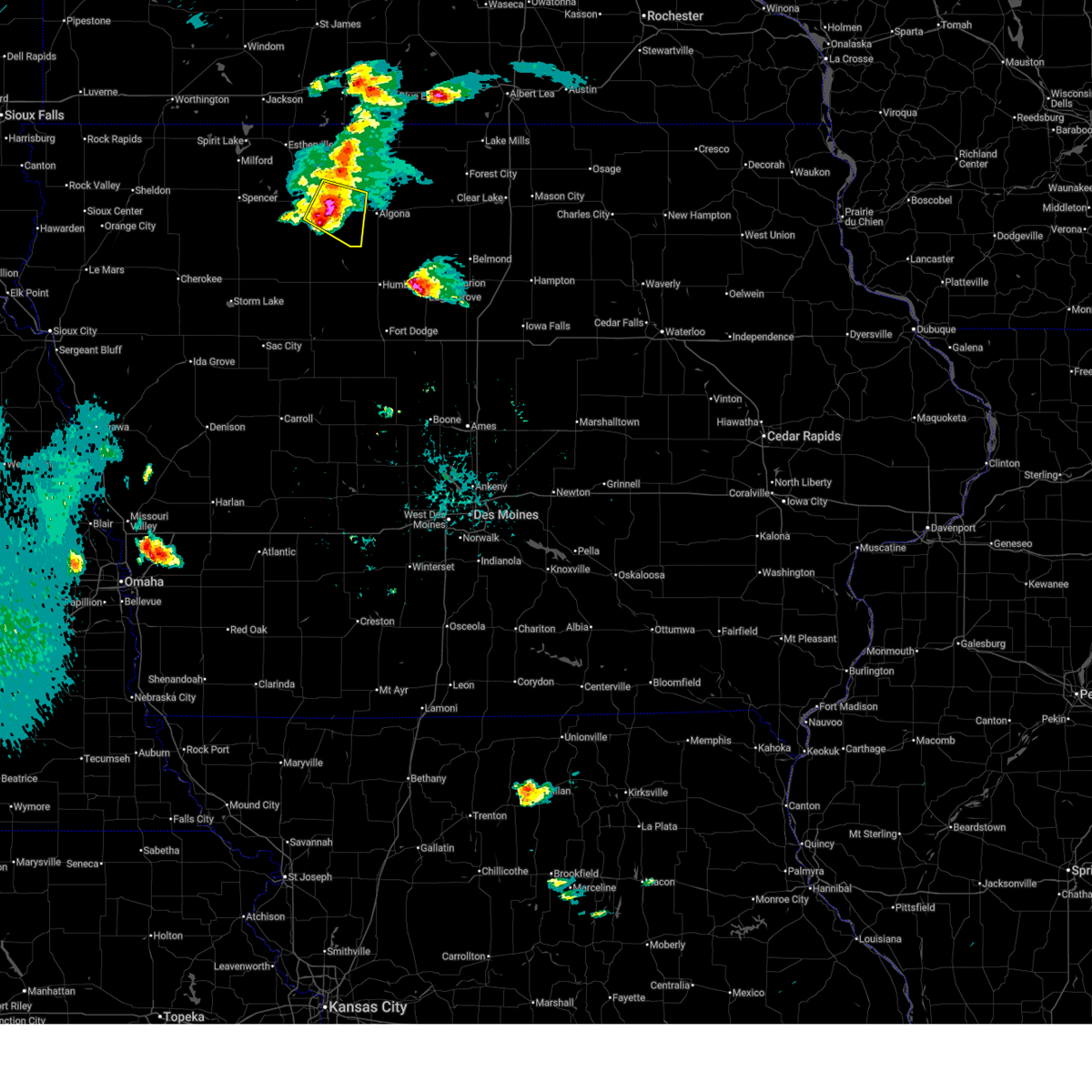 At 755 pm cdt, a severe thunderstorm was located over rodman, or 12 miles southeast of emmetsburg, moving southeast at 35 mph (radar indicated). Hazards include quarter size hail. Damage to vehicles is expected. this severe thunderstorm will be near, west bend around 800 pm cdt. ottosen around 810 pm cdt. other locations in the path of this severe thunderstorm include bode, bradgate, gilmore city, rutland, dakota city, humboldt and humboldt municipal airport. hail threat, radar indicated max hail size, 1. 00 in wind threat, radar indicated max wind gust, <50 mph.