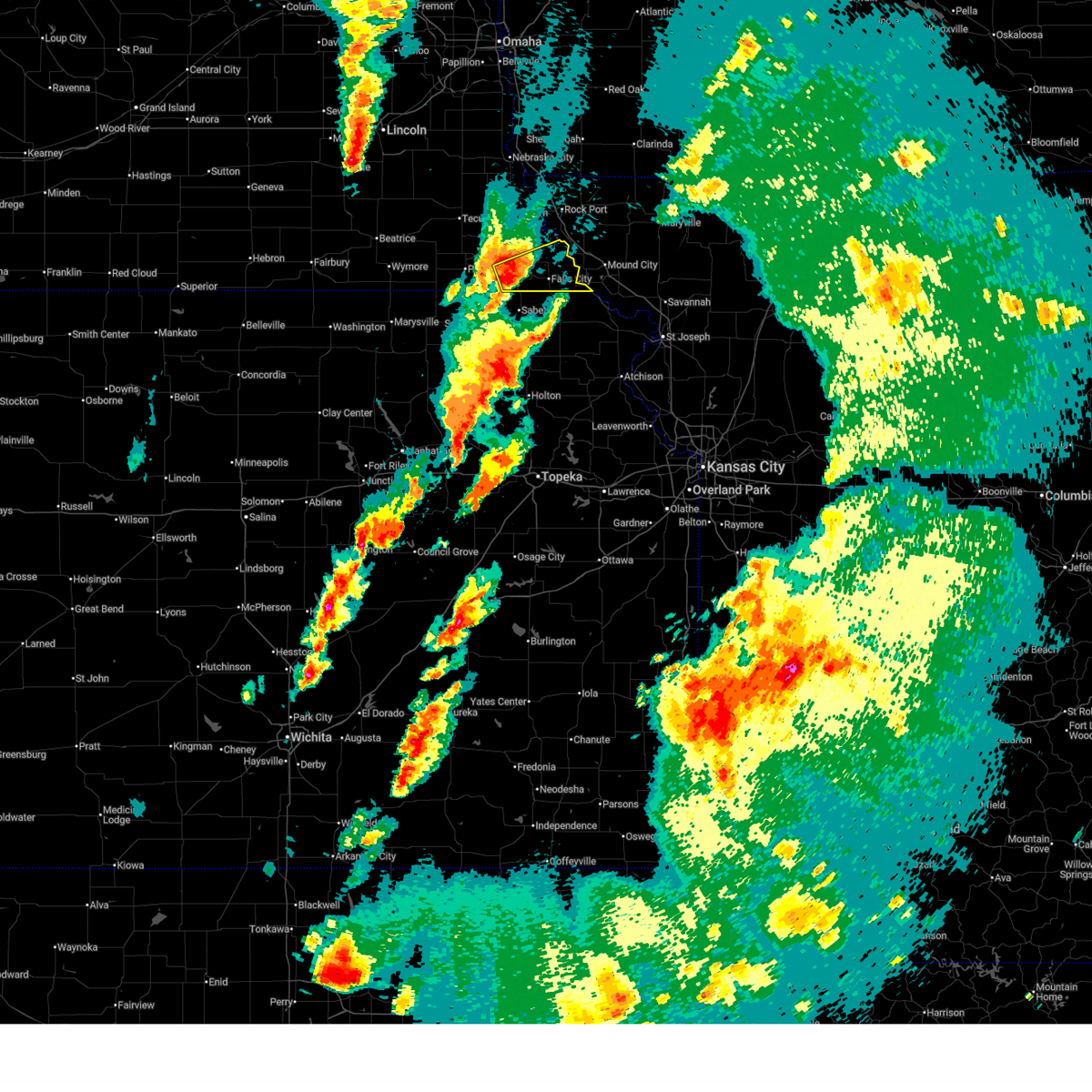 At 723 pm cdt, a severe thunderstorm capable of producing a tornado was located over rulo, or 7 miles east of falls city, moving northeast at 20 mph (radar indicated rotation). Hazards include tornado and quarter size hail. Flying debris will be dangerous to those caught without shelter. mobile homes will be damaged or destroyed. damage to roofs, windows, and vehicles will occur. tree damage is likely. This tornadic thunderstorm will remain over mainly rural areas of southeastern richardson county, including the following locations, preston, sac and fox nation reservation and iowa reservation of kansas and nebraska.