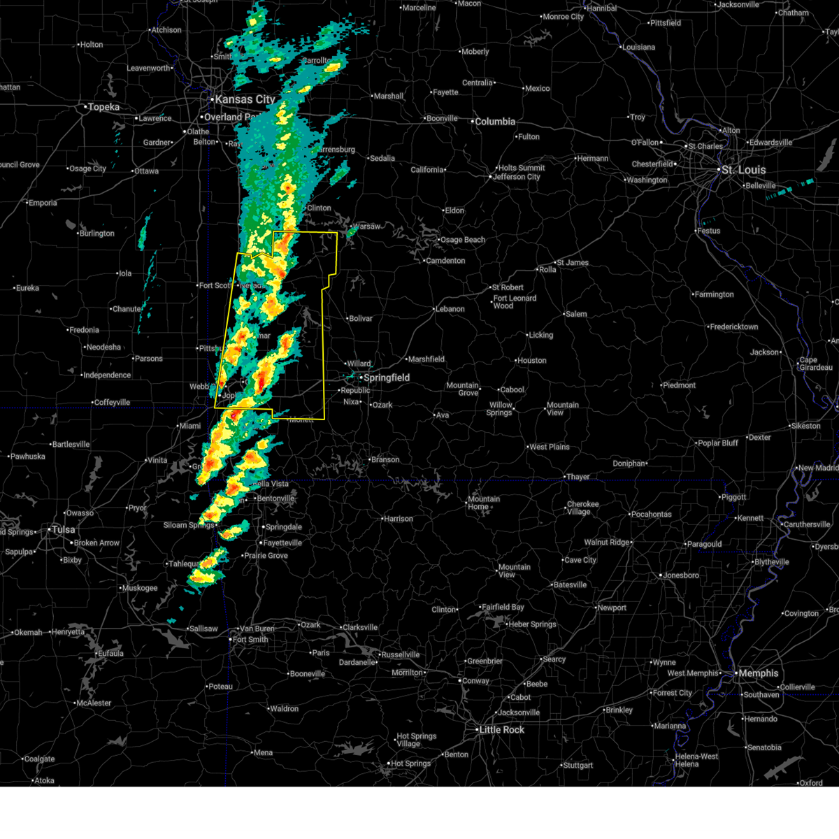 At 1024 pm cst, severe thunderstorms were located along a line extending from 7 miles southeast of urbana to near everton, moving east at 130 mph (public). Hazards include 70 mph wind gusts and quarter size hail. Hail damage to vehicles is expected. expect considerable tree damage. wind damage is also likely to mobile homes, roofs, and outbuildings. locations impacted include, joplin, carthage, webb city, bolivar, stockton lake, pomme de terre lake, stockton state park, carl junction, mount vernon, lamar, baxter springs, galena, oronogo, carterville, stockton, duquesne, ash grove, greenfield, sarcoxie, duenweg, this includes interstate 44 between mile markers 4 and 57. a tornado watch remains in effect until 300 am cst for southeastern kansas, and central, southwestern and west central missouri. Time, mot, loc 0424z 260deg 112kt 3778 9305 3728 9369.