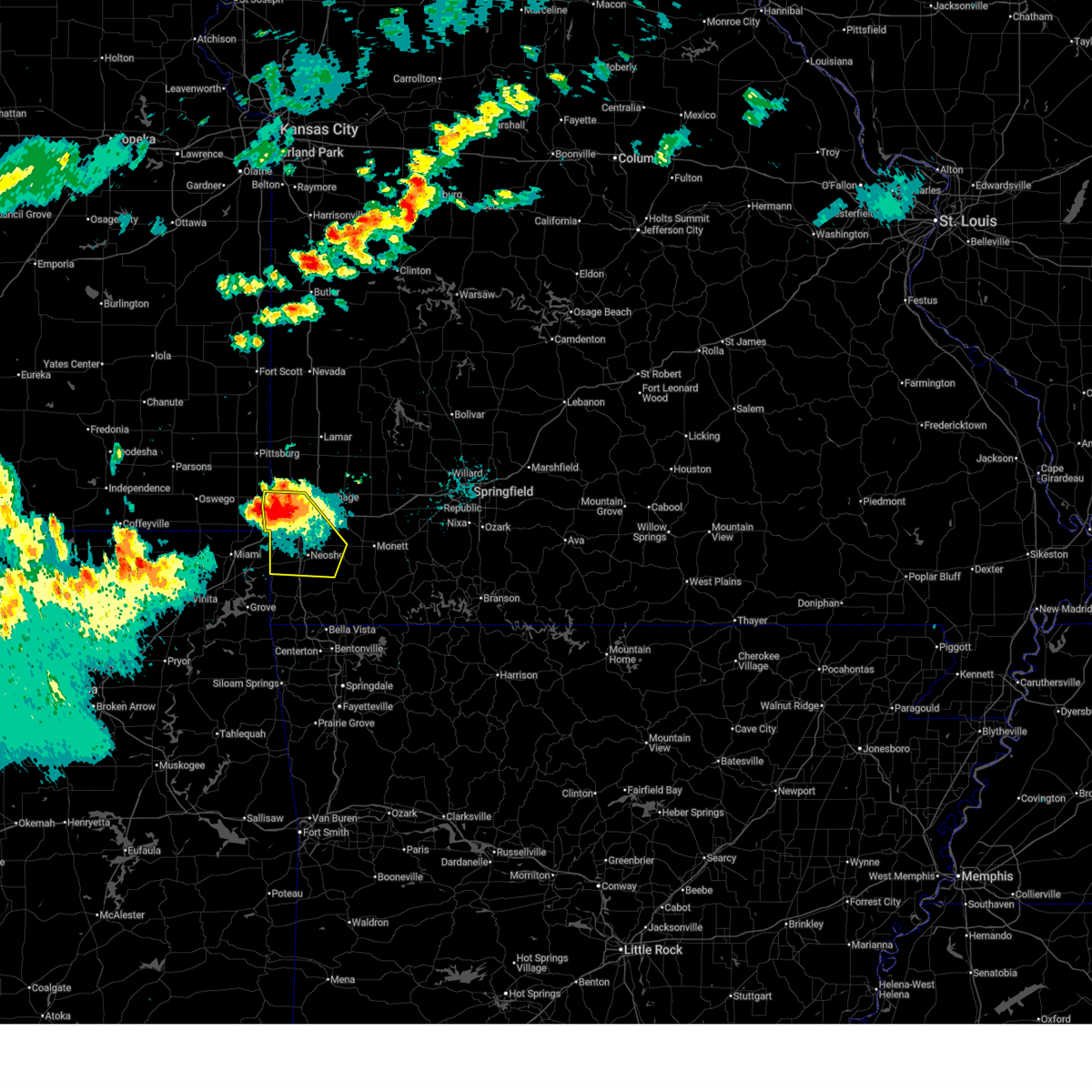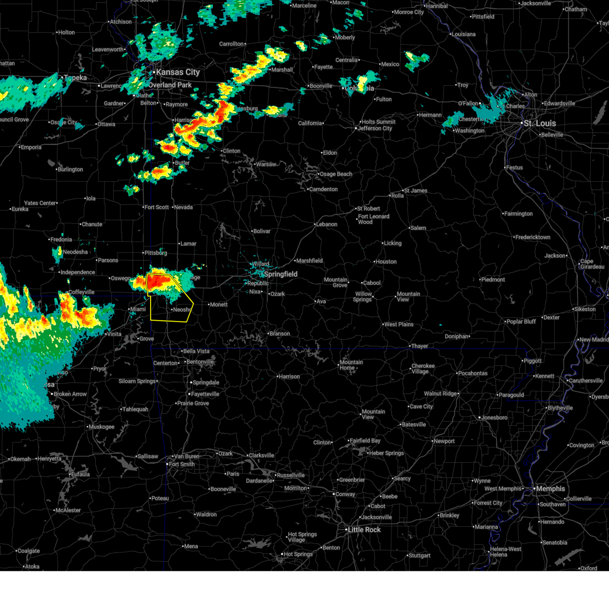 At 337 pm cdt, a severe thunderstorm was located near seneca, or 7 miles northwest of neosho, moving east at 35 mph (emergency management). Hazards include golf ball size hail and 60 mph wind gusts. People and animals outdoors will be injured. expect hail damage to roofs, siding, windows, and vehicles. expect wind damage to roofs, siding, and trees. locations impacted include, southern joplin, neosho, seneca, granby, sarcoxie, goodman, diamond, loma linda, leawood, fairview, saginaw, newtonia, stella, redings mill, wentworth, stark city, shoal creek estates, ritchey, rocky comfort, and racine. this includes the following highways, interstate 44 between mile markers 1 and 5, and between mile markers 26 and 32. Interstate 49 between mile markers 11 and 34.