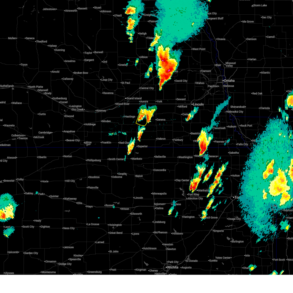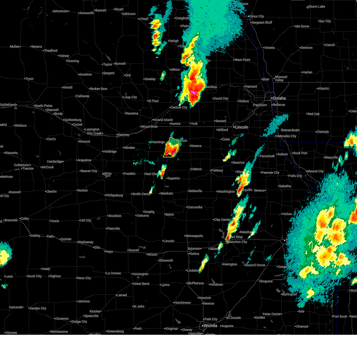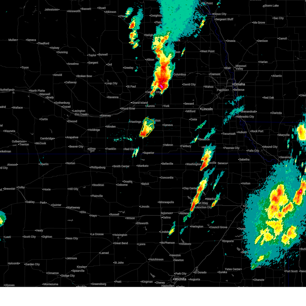 Svrgid the national weather service in hastings has issued a * severe thunderstorm warning for, northern jewell county in north central kansas, northern smith county in north central kansas, northeastern phillips county in north central kansas, webster county in south central nebraska, adams county in south central nebraska, hamilton county in south central nebraska, eastern buffalo county in south central nebraska, southern polk county in east central nebraska, hall county in south central nebraska, clay county in south central nebraska, franklin county in south central nebraska, nuckolls county in south central nebraska, eastern kearney county in south central nebraska, york county in east central nebraska, fillmore county in south central nebraska, thayer county in south central nebraska, southwestern merrick county in central nebraska, southern howard county in central nebraska, * until 115 am cdt. * at 1237 am cdt, severe thunderstorms were located along a line extending from near chapman to near trumbull to near lawrence to 6 miles north of kensington, moving east at 60 mph (radar indicated). Hazards include 70 mph wind gusts and quarter size hail. Hail damage to vehicles is expected. expect considerable tree damage. wind damage is also likely to mobile homes, roofs, and outbuildings. severe thunderstorms will be near, aurora, red cloud, harvard, fairfield, giltner, glenvil, lawrence, marquette, inland, and deweese around 1240 am cdt. clay center, nelson, and guide rock around 1245 am cdt. sutton, edgar, hampton, saronville, and stockham around 1250 am cdt. henderson, bradshaw, oak, and ong around 1255 am cdt. other locations in the path of these severe thunderstorms include davenport, benedict, grafton, lushton, nora, york, fairmont, mccool junction, shickley, carleton, bostwick, geneva and strang. This includes interstate 80 between mile markers 286 and 365.