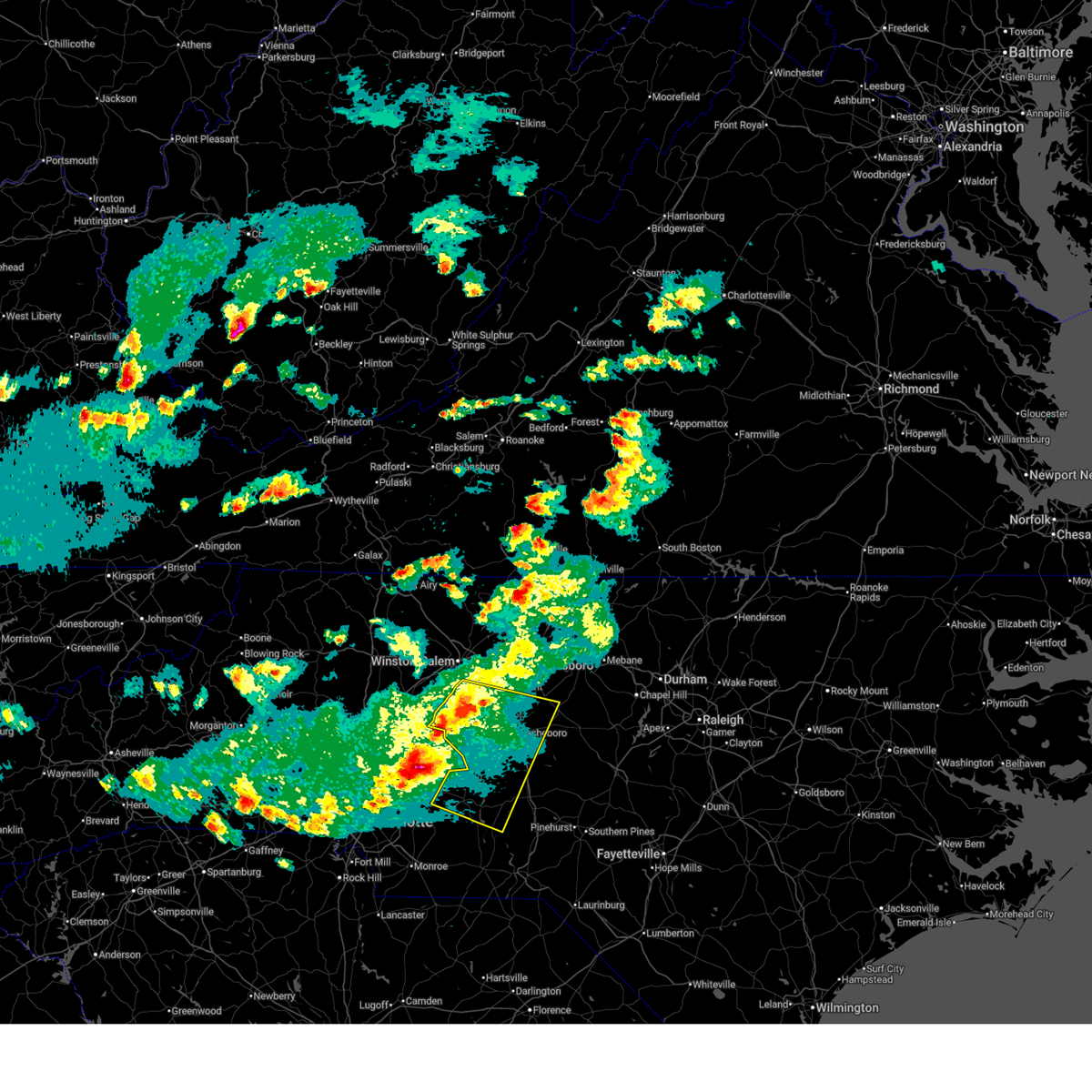 At 749 pm edt, doppler radar indicated a line of severe thunderstorms capable of producing quarter size hail and damaging winds in excess of 58 mph. these storms were located along a line extending from near greensboro to near randleman to 10 miles southwest of asheboro, and moving east at 25 mph.