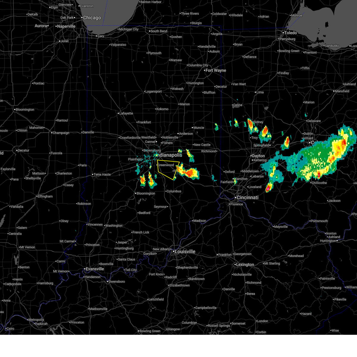 At 504 pm edt, a severe thunderstorm was located over greenwood, or 13 miles south of indianapolis, moving east at 20 mph (radar indicated). Hazards include 60 mph wind gusts and quarter size hail. Hail damage to vehicles is expected. expect wind damage to roofs, siding, and trees. locations impacted include, indianapolis, shelbyville, greenwood, franklin, southport, new whiteland, whiteland, bargersville, homecroft, fairland, marietta and boggstown. this includes the following highways, interstate 65 between mile markers 88 and 103. Interstate 74 between mile markers 100 and 110.