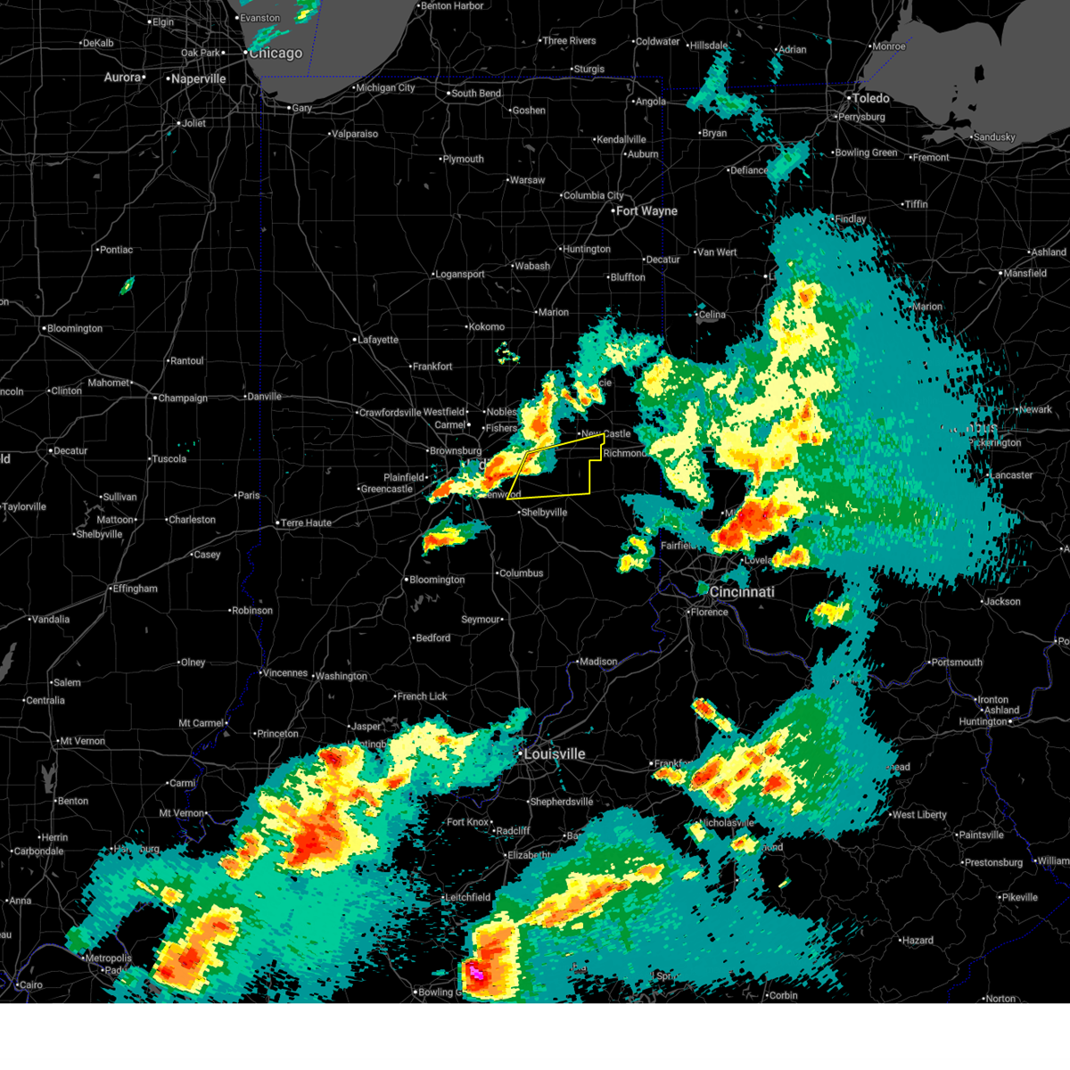 At 736 pm edt, severe thunderstorms were located along a line extending from 7 miles east of shelbyville to near seymour, moving east at 65 mph (radar indicated). Hazards include 60 mph wind gusts and quarter size hail. Hail damage to vehicles is expected. expect wind damage to roofs, siding, and trees. locations impacted include, greensburg, newbern, paris crossing, hartsville, crothersville, vallonia, azalia, manilla, millhousen, sandusky, arlington, clarksburg, burney, waymansville, clifford, butlerville, boggstown, marietta, rushville, and shelbyville. this includes the following highways, interstate 65 between mile markers 37 and 84. Interstate 74 between mile markers 108 and 144.