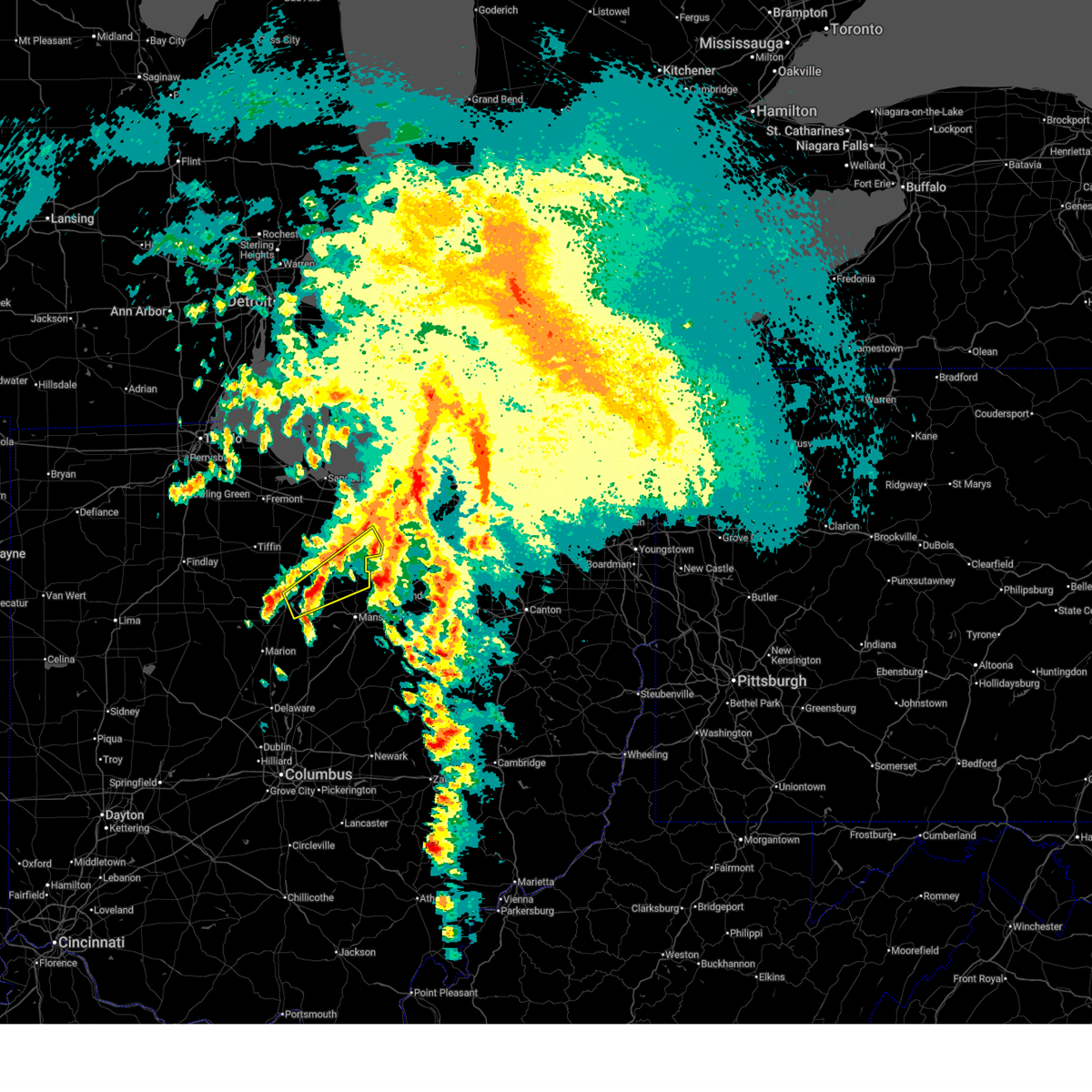 At 621 pm edt, severe thunderstorms were located along a line extending from near bloomville to 6 miles northwest of cardington, moving northeast at 35 mph (radar indicated). Hazards include 60 mph wind gusts. expect damage to trees and power lines