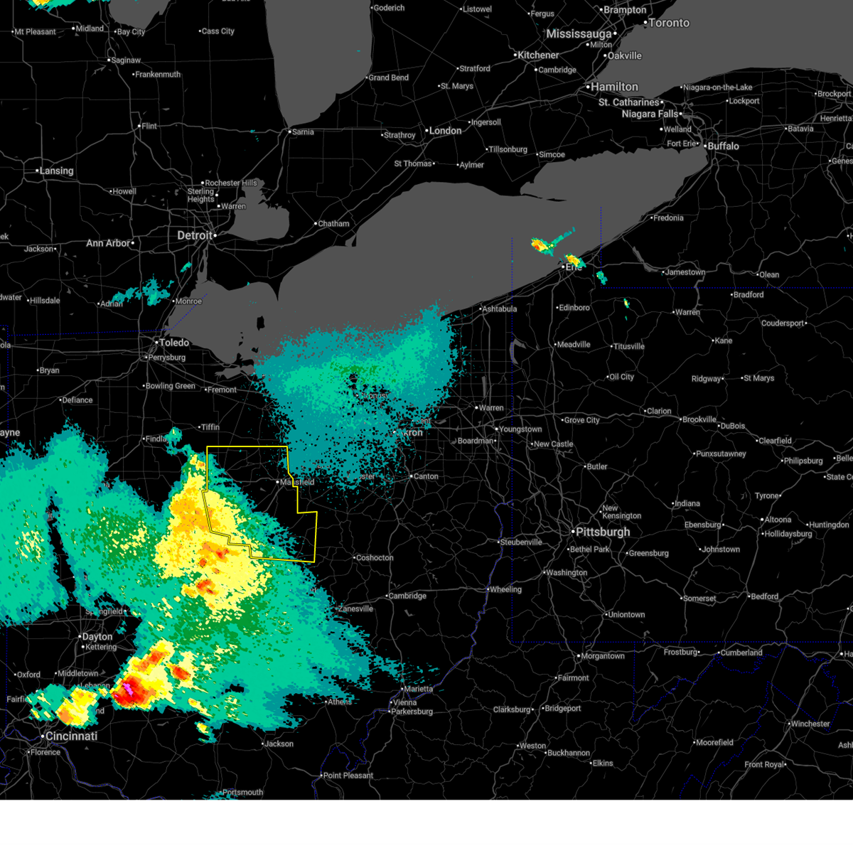 Torcle the national weather service in cleveland has issued a * tornado warning for, huron county in north central ohio, richland county in north central ohio, northwestern ashland county in north central ohio, northeastern crawford county in north central ohio, * until 630 pm edt. * at 544 pm edt, a severe thunderstorm capable of producing a tornado was located over ontario, or near mansfield, moving north at 50 mph (radar indicated rotation). Hazards include tornado. Flying debris will be dangerous to those caught without shelter. mobile homes will be damaged or destroyed. damage to roofs, windows, and vehicles will occur. tree damage is likely. this dangerous storm will be near, mansfield and shelby around 550 pm edt. plymouth around 600 pm edt. norwalk around 620 pm edt. Other locations impacted by this tornadic thunderstorm include shenandoah, north fairfield, tiro, olivesburg, and greenwich.