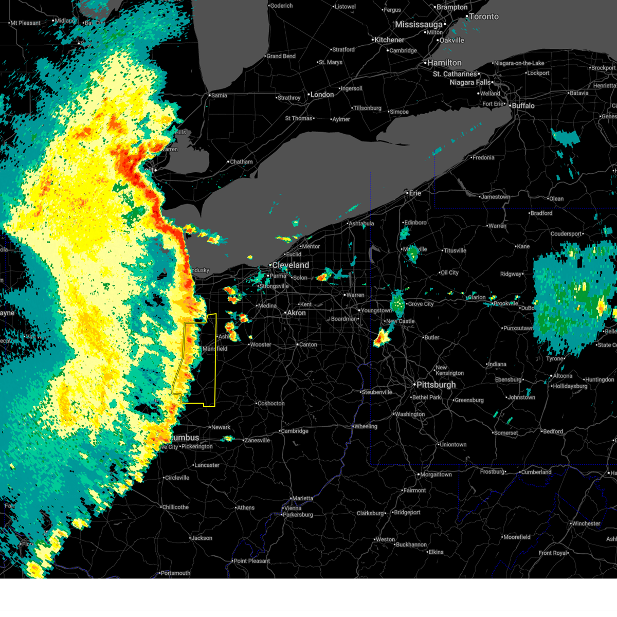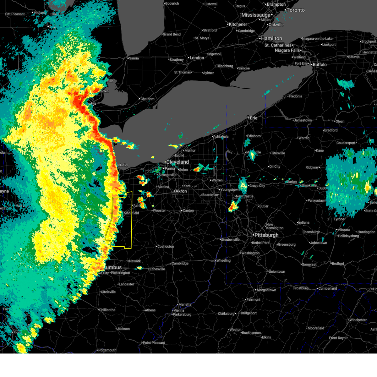 At 134 am est, severe thunderstorms were located along a line extending from 8 miles northwest of vermilion to near medina to near orrville, moving northeast at 85 mph (radar indicated). Hazards include 60 mph wind gusts. Expect damage to roofs, siding, and trees. Locations impacted include, mansfield, ashland, mount vernon, mount gilead, shelby, ontario, lexington, loudonville, fredericktown, new london, gambier, bellville, centerburg, danville, hayesville, savannah, polk, chesterville, sparta and waterford.