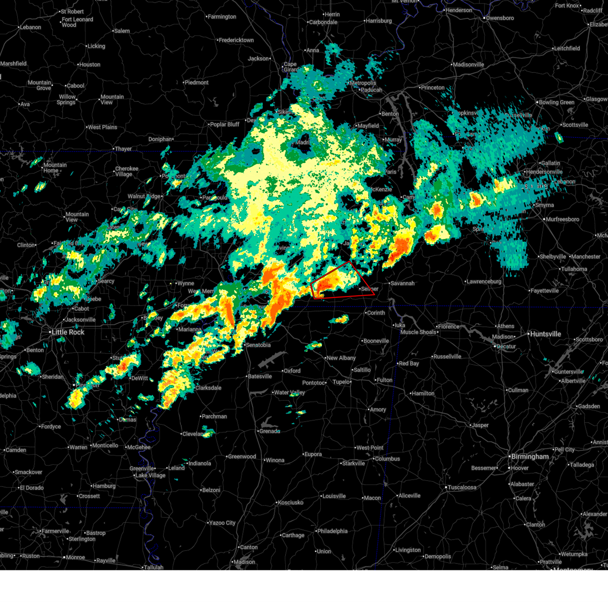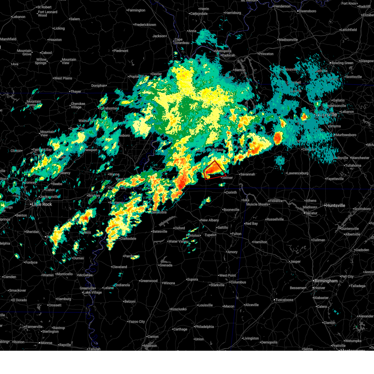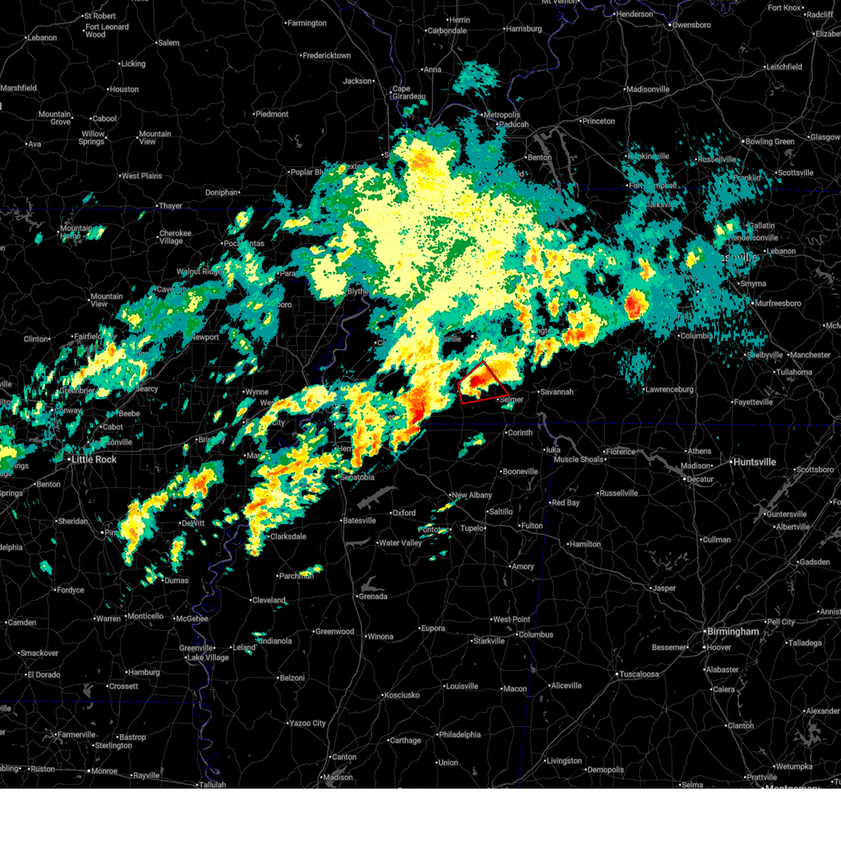 At 222 am cdt, a large and extremely dangerous tornado was located near masseyville, or 8 miles north of selmer, moving northeast at 50 mph. this is a particularly dangerous situation. take cover now! (radar indicated rotation). Hazards include damaging tornado. You are in a life-threatening situation. flying debris may be deadly to those caught without shelter. mobile homes will be destroyed. considerable damage to homes, businesses, and vehicles is likely and complete destruction is possible. Locations impacted include, pine top, masseyville, adamsville, reagan, rock hill, silerton, hickory corners, pleasant grove, middle fork, decaturville, cerro gordo, thurman, lick skillet, milledgeville, perryville, montgomery, woodville, warrens bluff, bath springs, and montezuma.