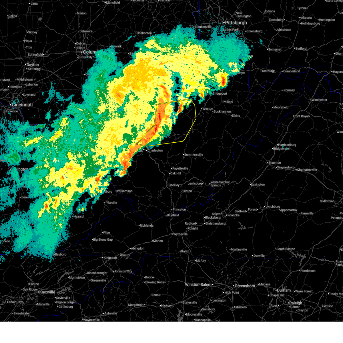 At 456 pm edt, doppler radar indicated a line of severe thunderstorms capable of producing damaging winds in excess of 60 mph. these storms were located along a line extending from near sissonville to near madison, moving southeast at 35 mph. these severe storms will be near, elkview and pinch around 510 pm edt. clendenin around 520 pm edt. other locations impacted by these severe thunderstorms include sharon, sylvester, foster, ashford, prenter, racine, seth, danville, dawes and whitesville.