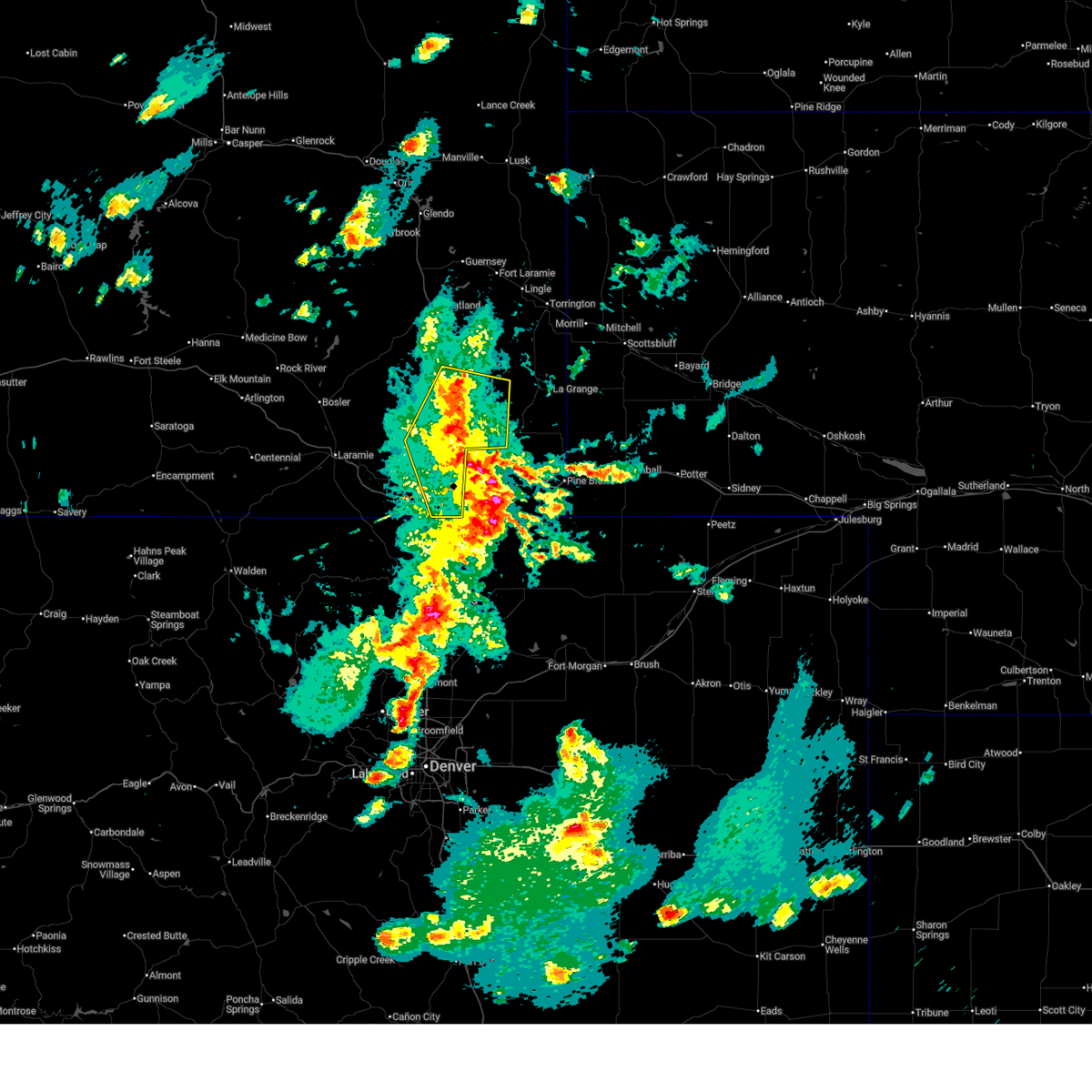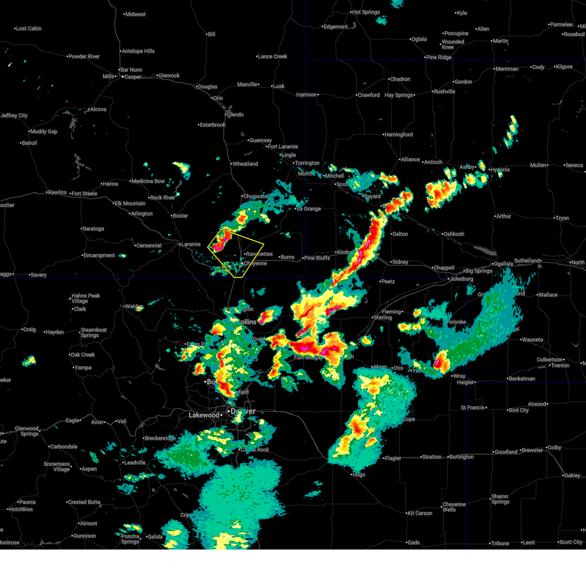 At 400 pm mdt, a severe thunderstorm was located over north cheyenne, or near cheyenne, moving northeast at 30 mph. this is a very dangerous storm (trained weather spotters. baseball sized hail has been confirmed at fe warren afb and north cheyenne with this storm!). Hazards include baseball size hail and 60 mph wind gusts. People and animals outdoors will be severely injured. expect shattered windows, extensive damage to roofs, siding, and vehicles. locations impacted include, cheyenne, ranchettes, warren afb, frontier park, north cheyenne, warren af base, south greeley and fox farm-college. this includes the following highways, interstate 25 in wyoming between mile markers 10 and 24. interstate 80 in wyoming between mile markers 362 and 365. A tornado watch remains in effect until 800 pm mdt for southeastern wyoming.