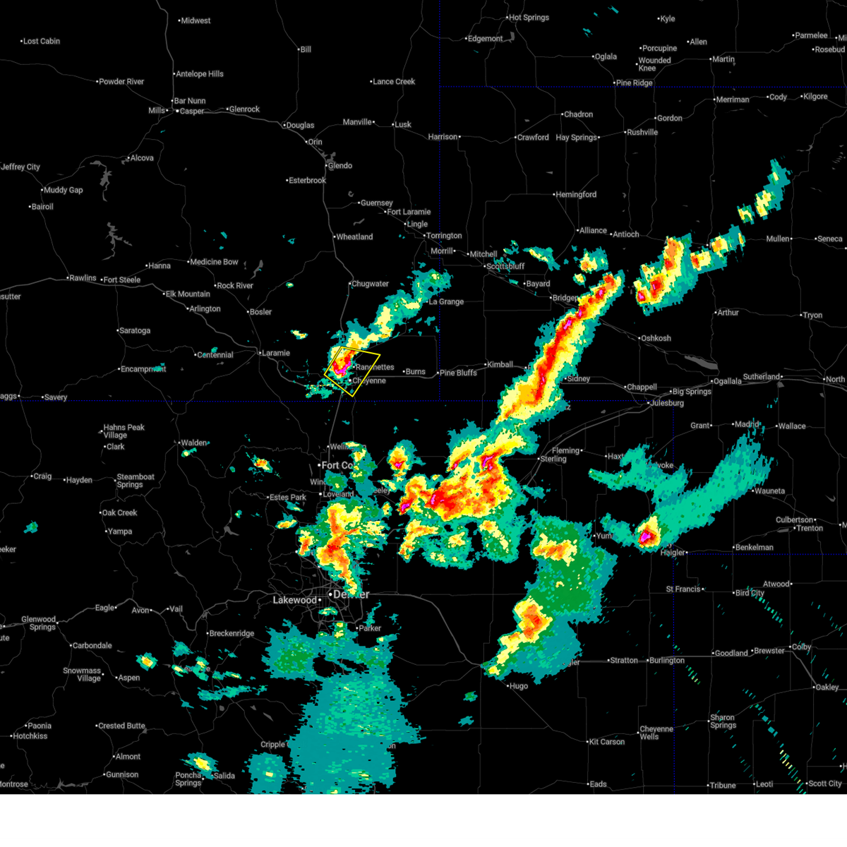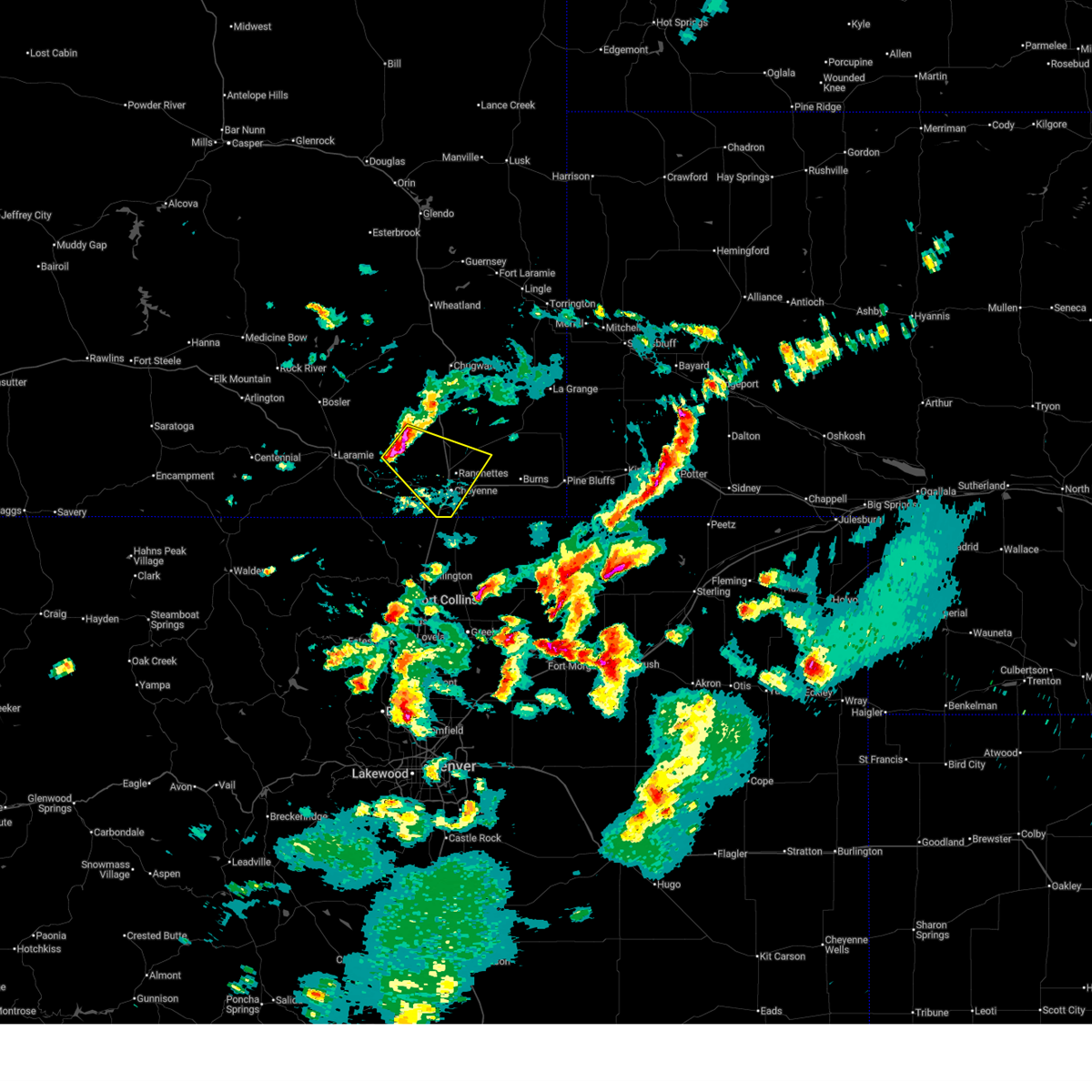 At 700 pm mdt, a severe thunderstorm was located near south greeley, or 7 miles south of cheyenne, moving east at 20 mph (radar indicated). Hazards include 60 mph wind gusts and quarter size hail. Hail damage to vehicles is expected. expect wind damage to roofs, siding, and trees. this severe storm will be near, cheyenne around 715 pm mdt. other locations impacted by this severe thunderstorm include fox farm-college and south greeley high. this includes the following highways, interstate 25 in wyoming between mile markers 6 and 14. Interstate 80 in wyoming between mile markers 360 and 363.