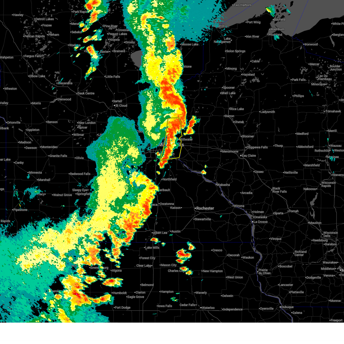 At 541 pm cdt, a severe thunderstorm was located over north minneapolis, or near minneapolis, moving east at 40 mph (radar indicated). Hazards include 60 mph wind gusts and quarter size hail. Hail damage to vehicles is expected. expect wind damage to roofs, siding, and trees. this severe thunderstorm will be near, minneapolis and new brighton around 545 pm cdt. richfield, roseville and msp international airport around 550 pm cdt. bloomington around 555 pm cdt. st. paul, eagan, maplewood, inver grove heights and oakdale around 600 pm cdt. st. paul park around 605 pm cdt. woodbury and cottage grove around 610 pm cdt. afton around 615 pm cdt. Prescott around 625 pm cdt.