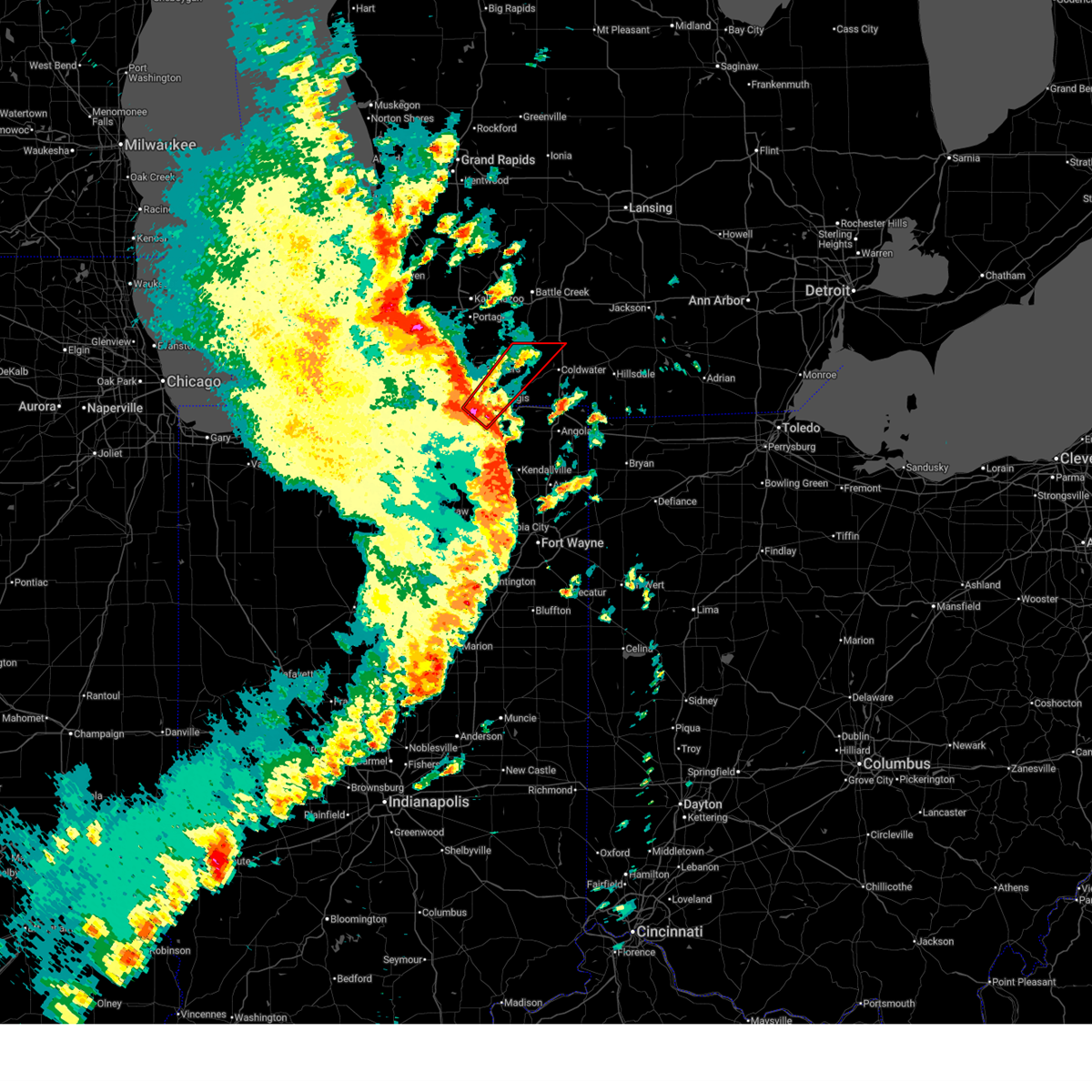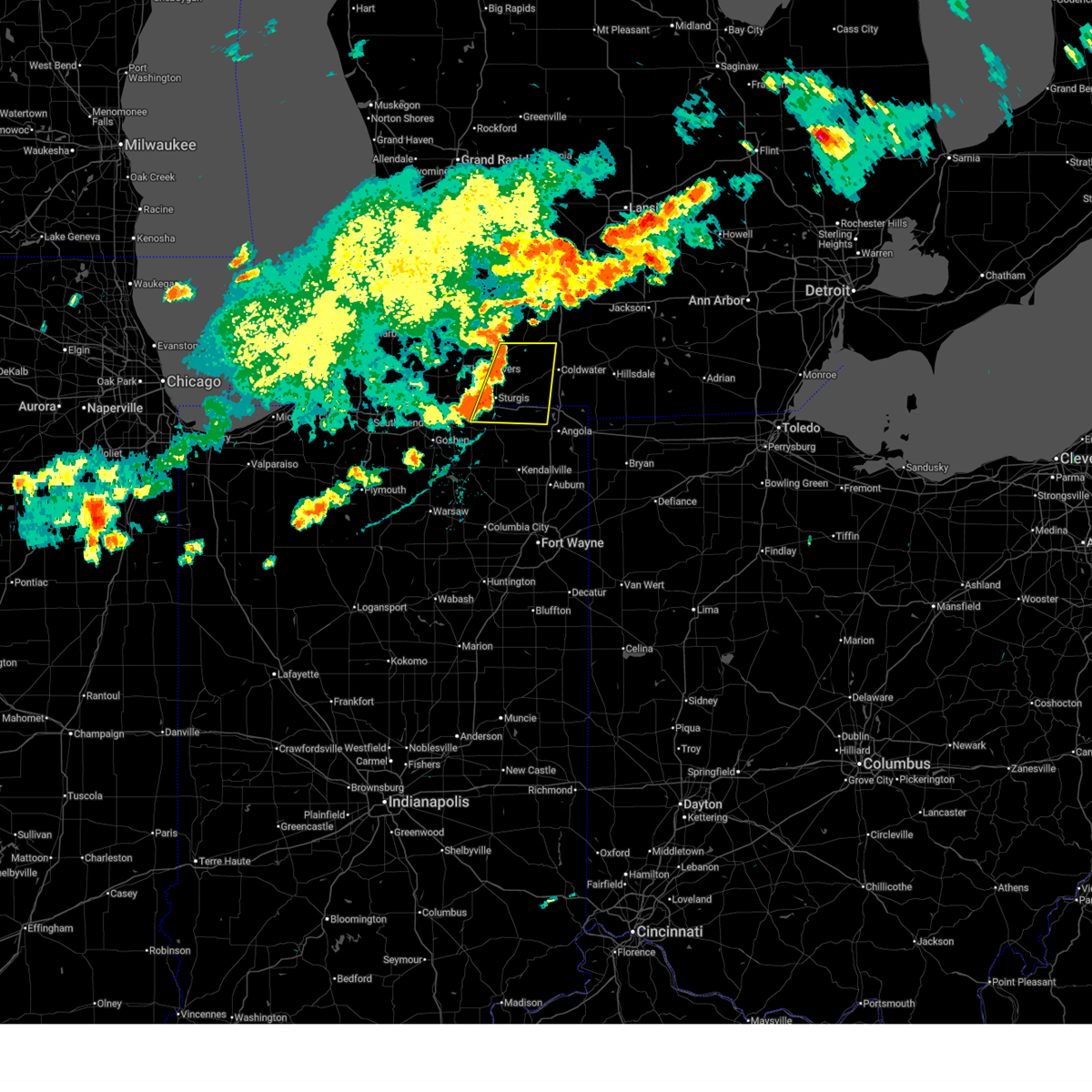 Toriwx the national weather service in northern indiana has issued a * tornado warning for, northwestern lagrange county in northeastern indiana, eastern st. joseph county in southwestern michigan, northwestern branch county in southwestern michigan, * until 545 pm edt. * at 514 pm edt, a severe thunderstorm capable of producing a tornado was located near sturgis, moving northeast at 60 mph (radar indicated rotation). Hazards include tornado. Flying debris will be dangerous to those caught without shelter. mobile homes will be damaged or destroyed. damage to roofs, windows, and vehicles will occur. tree damage is likely. this dangerous storm will be near, sturgis around 520 pm edt. colon around 530 pm edt. union city around 540 pm edt. other locations impacted by this tornadic thunderstorm include nottawa, burr oak, klinger lake, sherwood, fairfax, leonidas, fawn river, howe, findley, and matteson lake. this includes the following highways, interstate 69 in michigan near mile marker 21. Interstate 80 in indiana between mile markers 110 and 124.