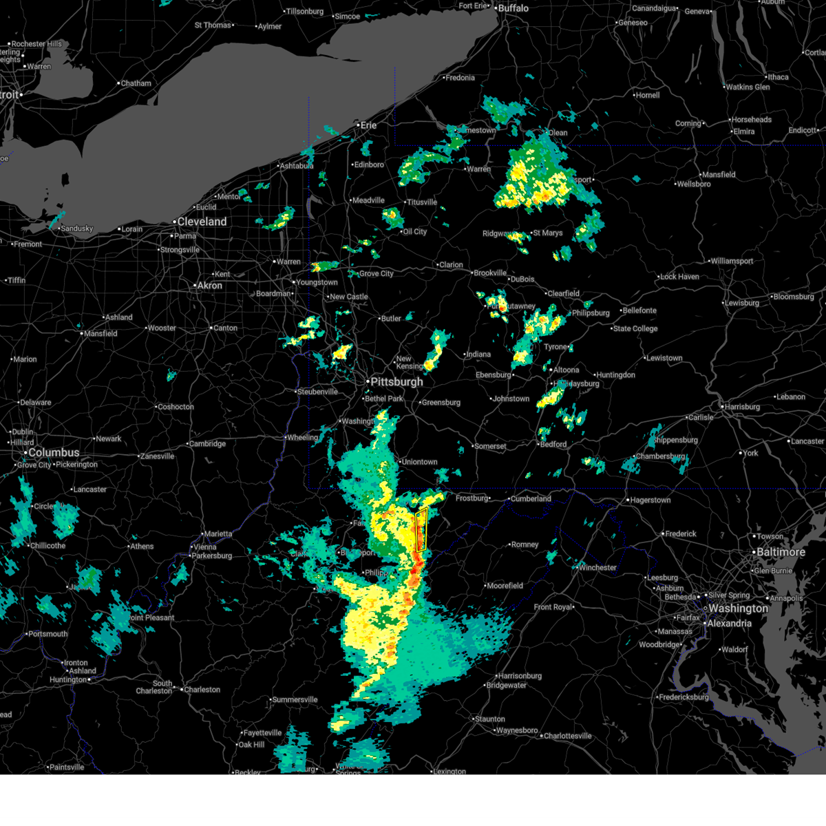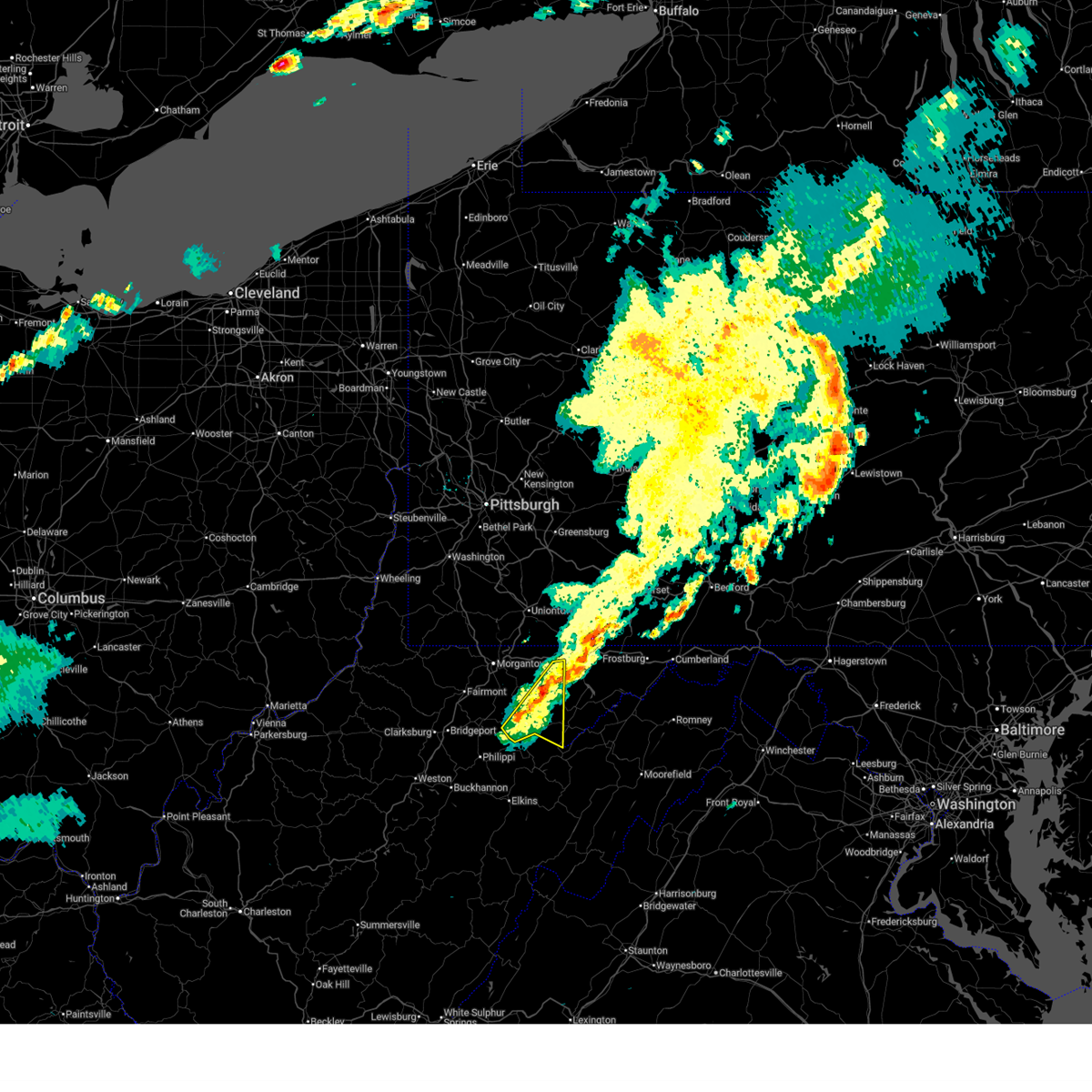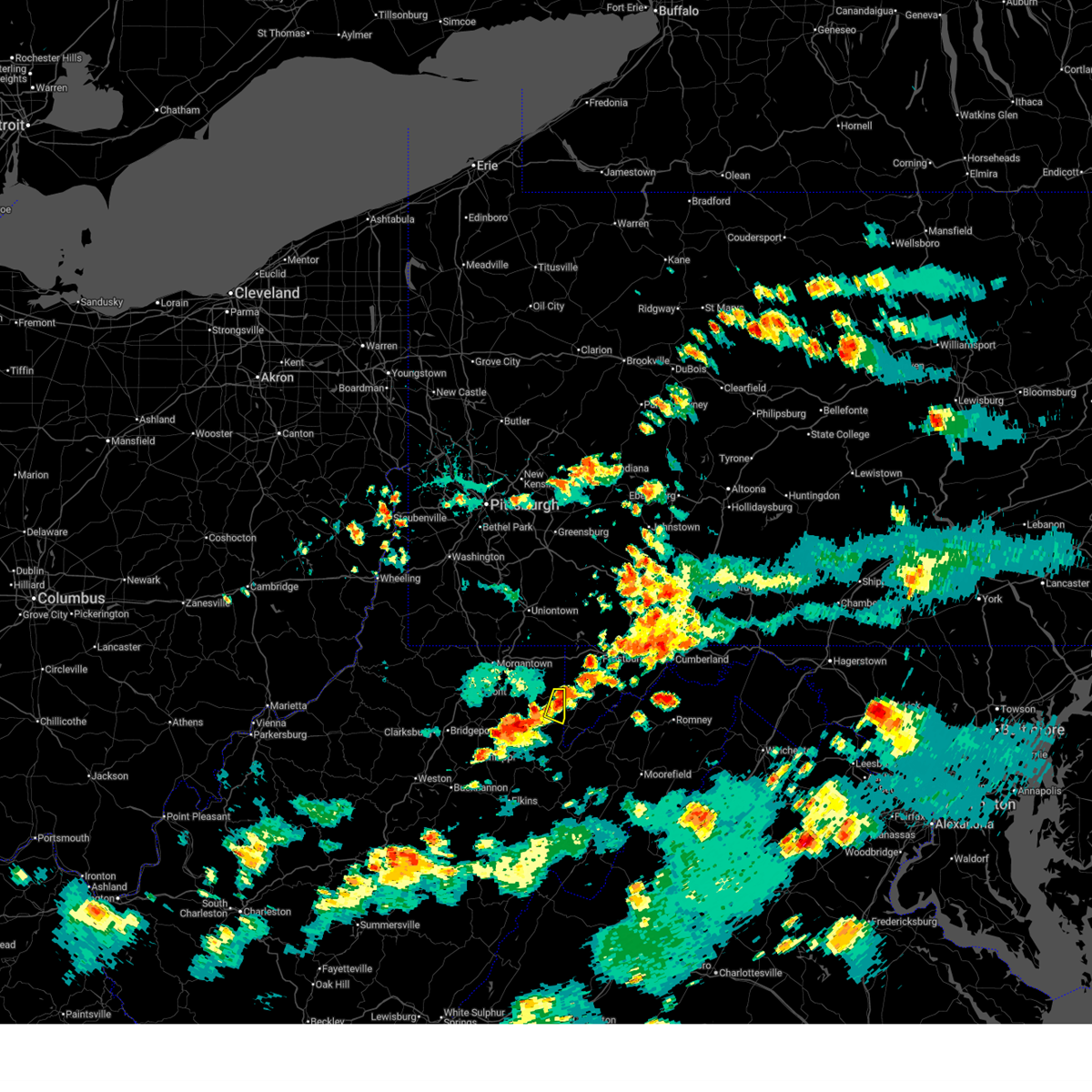 At 509 pm edt, severe thunderstorms were located along a line extending from near seven springs to 8 miles northeast of brookhaven to near bridgeport, moving east at 45 mph (radar indicated). Hazards include 60 mph wind gusts and quarter size hail. Hail damage to vehicles is expected. expect wind damage to trees and power lines, resulting in some power outages. locations impacted include, morgantown, fairmont, uniontown, connellsville, westover, kingwood, oakland, star city, terra alta, rowlesburg, bittinger, pleasant valley, winfield, south connellsville, farmington, barrackville, point marion, monongah, granville and grantsville. this includes the following highways, interstate 68 in maryland between mile markers 1 and 24. interstate 68 in west virginia between mile markers 1 and 32. interstate 79 in west virginia between mile markers 131 and 154. Please report severe weather by calling 4 1 2, 2 6 2, 1 9 8 8, posting to the nws pittsburgh facebook page, or using twitter @nwspittsburgh.