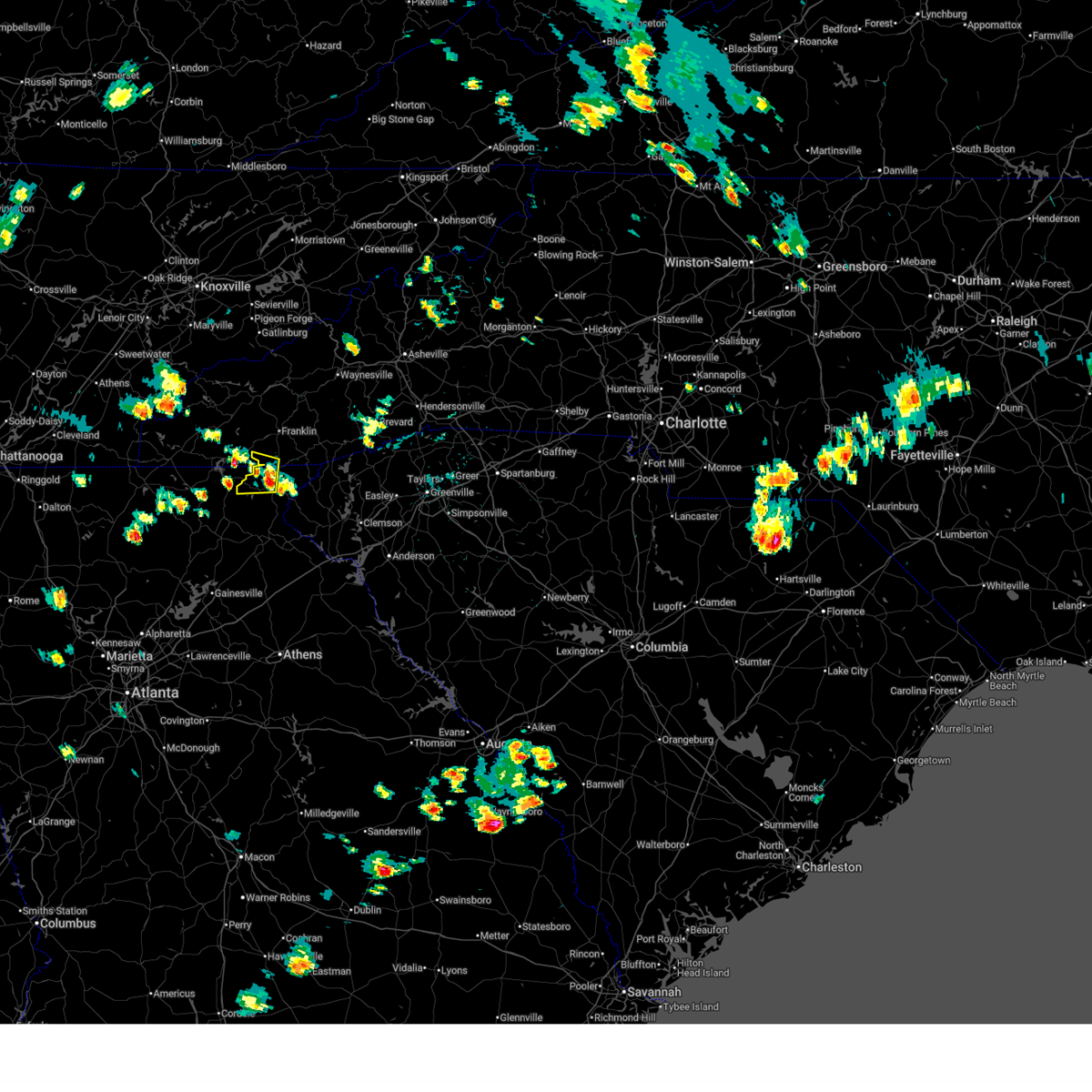 At 815 pm edt, severe thunderstorms were located along a line extending from 5 miles northeast of hayesville to 11 miles southeast of hiawassee to near cleveland, moving east at 30 mph (radar indicated). Hazards include 60 mph wind gusts and penny size hail. Expect damage to roofs. Siding and trees.