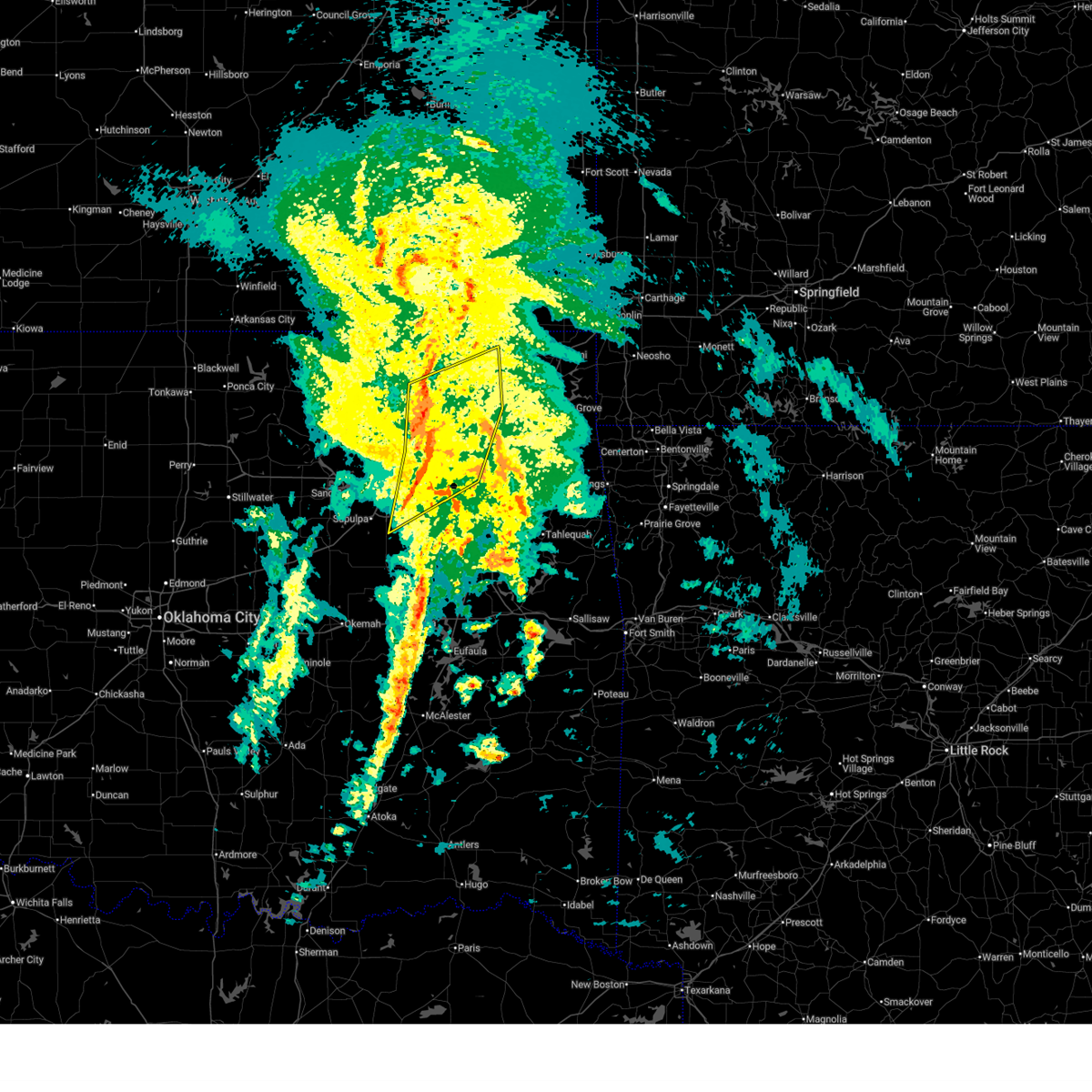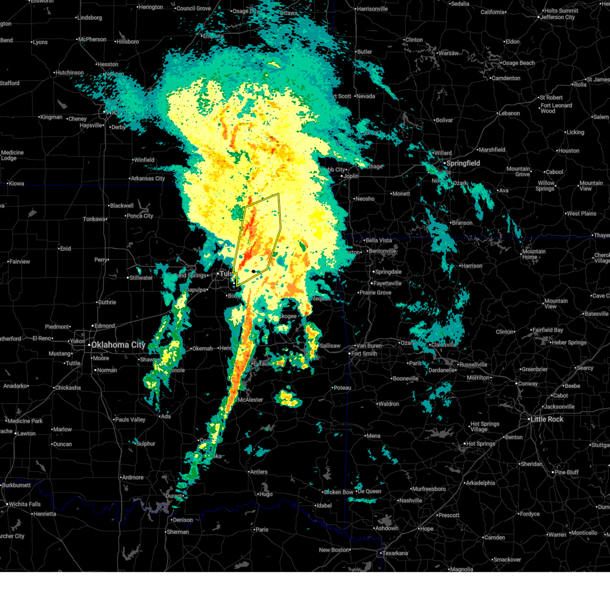 At 1148 pm cdt, severe thunderstorms were located along a line extending from 3 miles west of wynona to near keystone state park to near bristow, moving east at 60 mph (radar indicated). Hazards include 70 mph wind gusts and nickel size hail. Expect considerable tree damage. damage is likely to mobile homes, roofs, and outbuildings. Locations impacted include, tulsa, broken arrow, sand springs, bristow, owasso, bixby, sapulpa, jenks, glenpool, skiatook, hominy, mannford, kiefer, sperry, mounds, kellyville, depew, avant, westport, and osage.