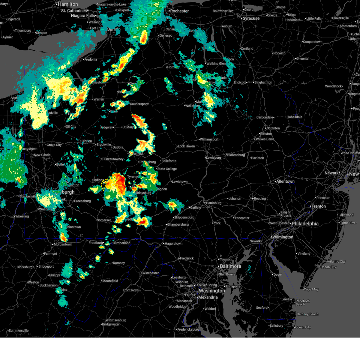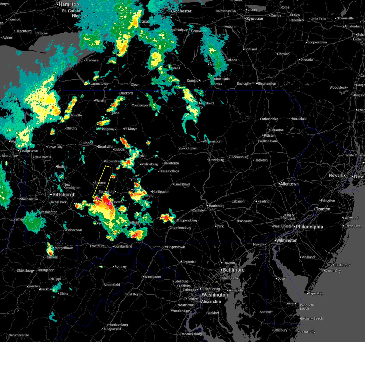 At 320 pm edt, a severe thunderstorm capable of producing a tornado was located 9 miles southeast of ford city, or 11 miles southeast of kittanning, moving southeast at 35 mph (radar indicated rotation). Hazards include tornado and golf ball size hail. Flying debris will be dangerous to those caught without shelter. mobile homes will be damaged or destroyed. damage to roofs, windows, and vehicles will occur. tree damage is likely. this dangerous storm will be near, indiana and homer city around 345 pm edt. other locations impacted by this tornadic thunderstorm include chevy chase heights, armagh, lucerne mines, creekside, atwood, elderton, shelocta, clymer, yellow creek state park and brush vly. Please report severe weather by calling 412-262-1988, posting to the nws pittsburgh facebook page, or using twitter @nwspittsburgh.