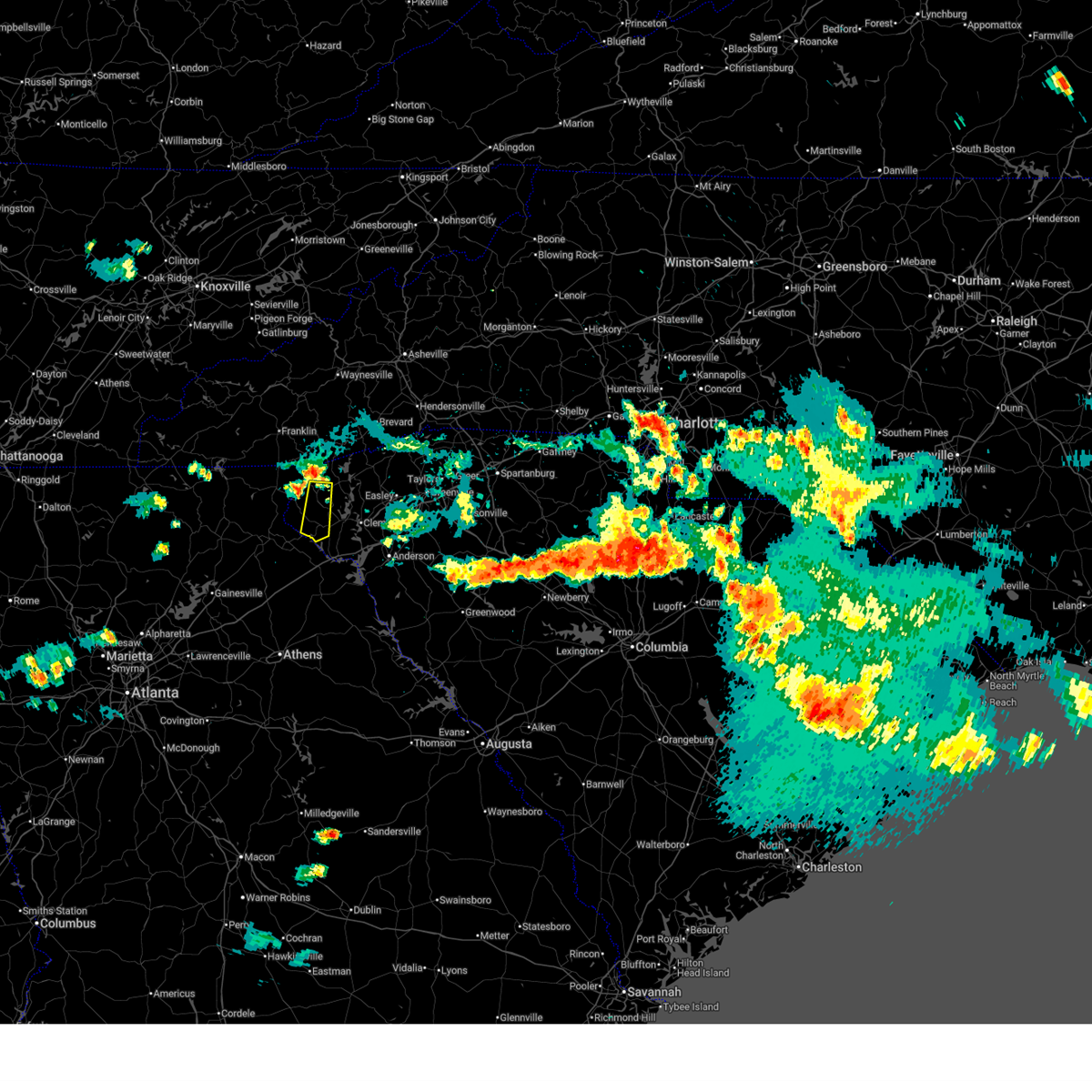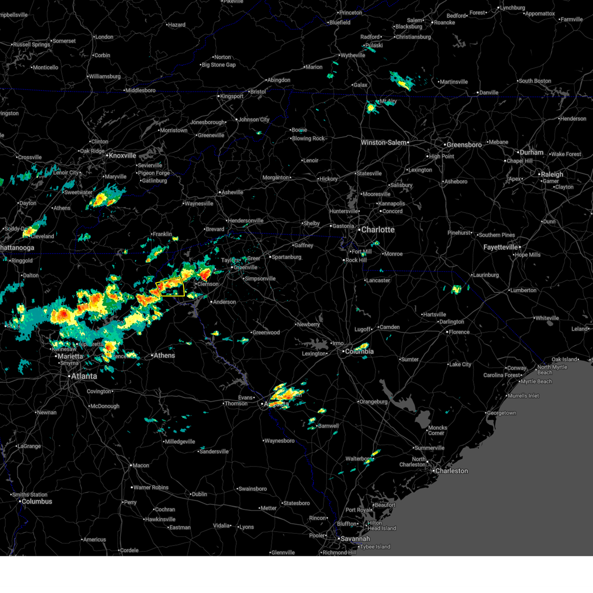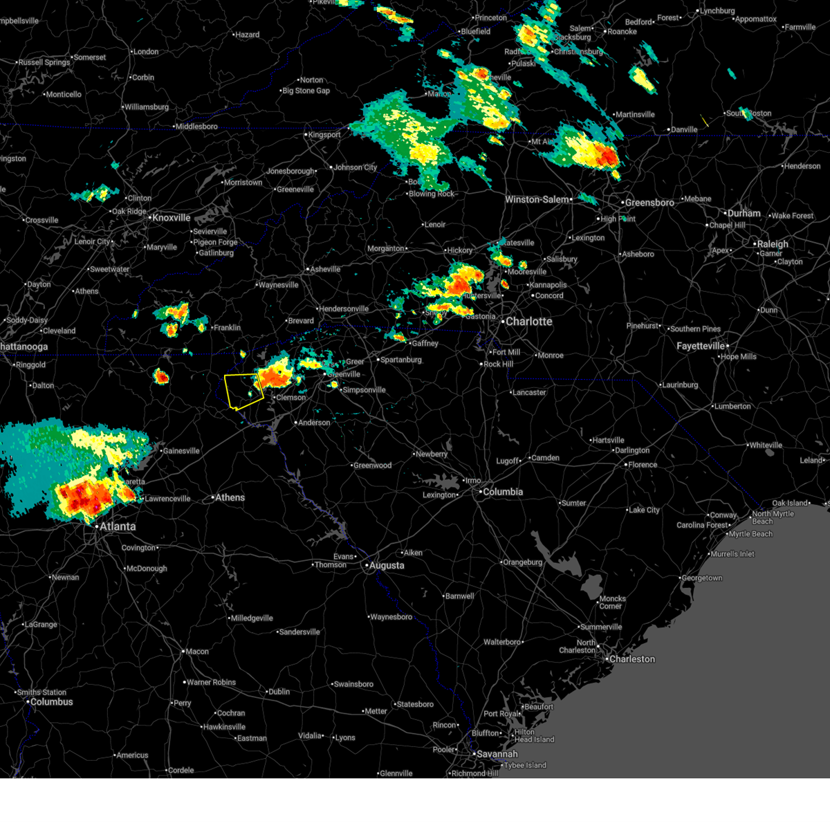 At 720 pm edt, doppler radar indicated a line of severe thunderstorms capable of producing damaging winds in excess of 60 mph. these storms were located along a line extending from 8 miles north of walhalla to 5 miles north of clemson, moving north at 25 mph. penny size hail may also accompany the damaging winds. locations impacted include, clemson, seneca, walhalla, pickens, central, norris, six mile, salem, lake keowee and keowee toxaway state park.