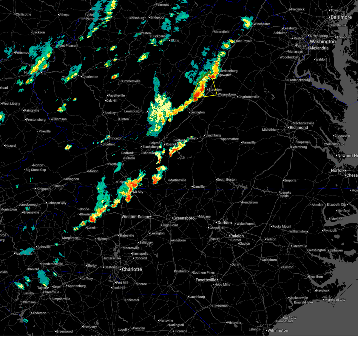 Svrlwx the national weather service in sterling virginia has issued a * severe thunderstorm warning for, nelson county in central virginia, rockingham county in western virginia, western albemarle county in central virginia, western greene county in central virginia, augusta county in western virginia, the city of staunton in western virginia, the city of harrisonburg in western virginia, the city of waynesboro in western virginia, eastern highland county in western virginia, pendleton county in eastern west virginia, southwestern hardy county in eastern west virginia, * until 845 pm edt. * at 742 pm edt, severe thunderstorms were located along a line extending from 13 miles southeast of elkins to monterey to near fairfield to near evington, moving east at 40 mph (radar indicated). Hazards include 60 mph wind gusts. Damaging winds will cause some trees and large branches to fall. this could injure those outdoors, as well as damage homes and vehicles. roadways may become blocked by downed trees. localized power outages are possible. Unsecured light objects may become projectiles.