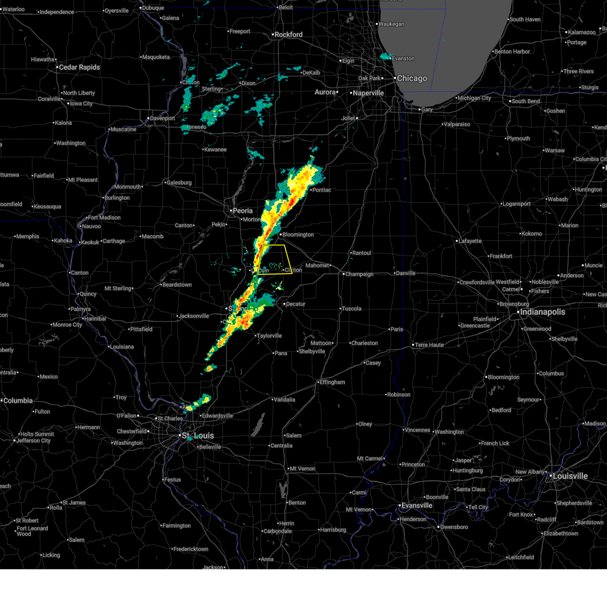 At 850 pm cdt, severe thunderstorms were located along a line extending from near minonk to deer creek to near green valley, moving southeast at 60 mph (trained weather spotters reported 70 mph wind gusts near henry, illinois in marshall county). Hazards include 70 mph wind gusts and penny size hail. Expect considerable tree damage. damage is likely to mobile homes, roofs, and outbuildings. these severe storms will be near, el paso, minonk, mackinaw, delavan, minier, hopedale, goodfield, san jose, emden, and congerville around 855 pm cdt. hudson, gridley, danvers, stanford, carlock, armington, and hartsburg around 900 pm cdt. bloomington, normal, lincoln, atlanta, and mclean around 905 pm cdt. towanda and waynesville around 910 pm cdt. heyworth around 915 pm cdt. other locations impacted by these severe thunderstorms include lawndale, smithville, dillon, powerton, panola, norwood, kickapoo, la rose, peoria heights, and shirley. this includes the following highways, interstate 155 between mile markers 0 and 31. interstate 39 between mile markers 0 and 40. interstate 474 between mile markers 0 and 14. interstate 55 between mile markers 123 and 172. Interstate 74 between mile markers 77 and 139.