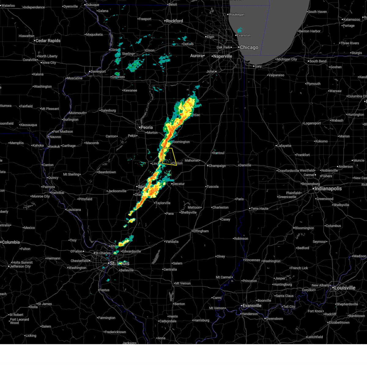 At 1251 am cdt, a severe thunderstorm was located near waynesville, or near clinton, moving east at 60 mph. this is a very dangerous storm (radar indicated). Hazards include 80 mph wind gusts and quarter size hail. brief tornados are possible with this storm. Flying debris will be dangerous to those caught without shelter. mobile homes will be heavily damaged. expect considerable damage to roofs, windows, and vehicles. extensive tree damage and power outages are likely. locations impacted include, bloomington, clinton, normal, forsyth, heyworth, maroa, williamsville, minier, warrensburg, argenta, oreana, mclean, stanford, wapella, waynesville, armington, kenney, cantrall, weldon springs state park and clinton lake dam. this includes the following highways, interstate 155 between mile markers 12 and 14. interstate 55 between mile markers 107 and 111, and between mile markers 142 and 163. interstate 72 between mile markers 148 and 156. Interstate 74 between mile markers 128 and 137.