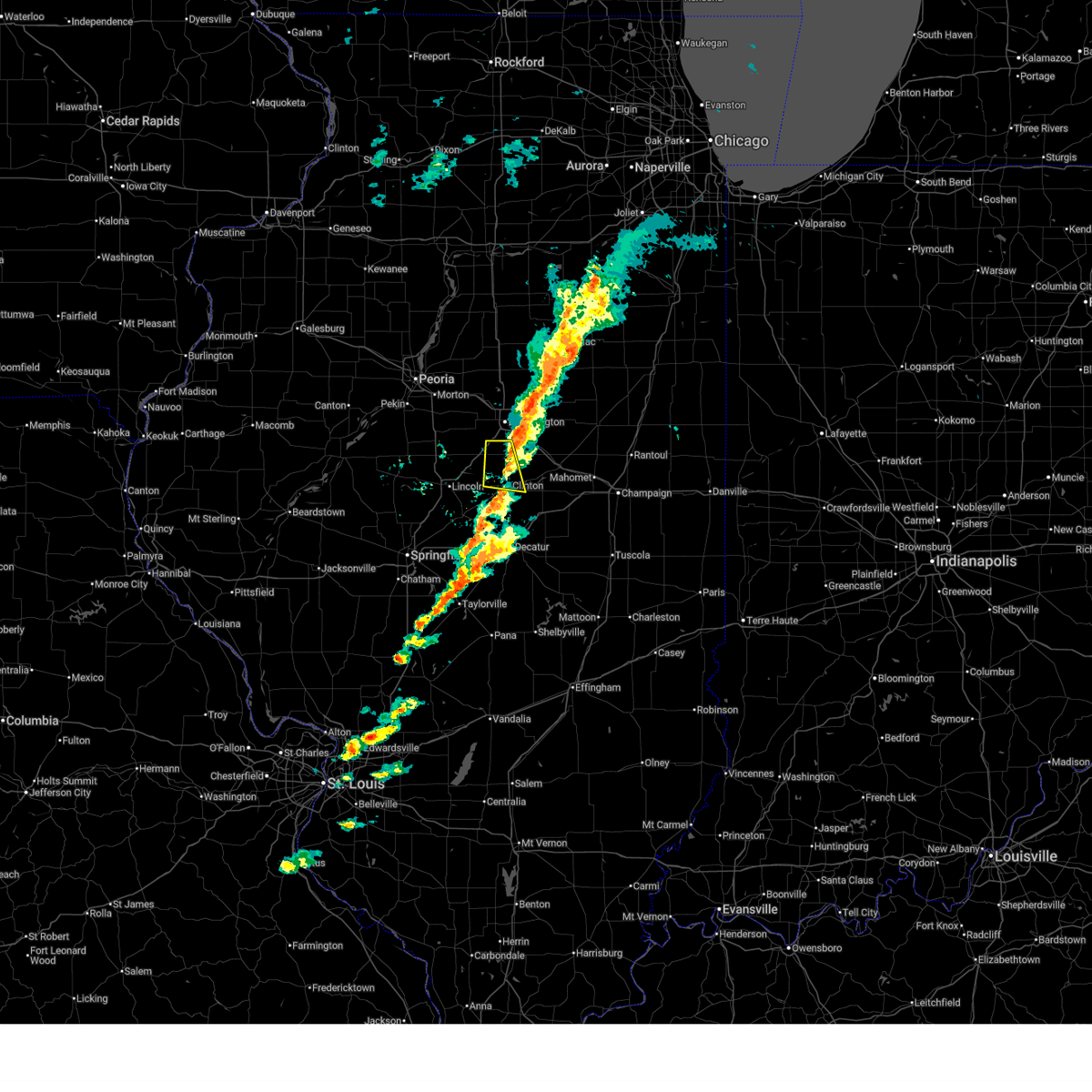 At 813 pm cdt, a severe thunderstorm was located from lincoln to beason, moving southeast at 40 mph (radar indicated. at 813 pm, multiple power lines were blown down in lincoln, and a 62 mph wind gust was reported at the national weather service office at the logan county airport). Hazards include 70 mph wind gusts and penny size hail. Expect considerable tree damage. damage is likely to mobile homes, roofs, and outbuildings. locations impacted include, decatur, lincoln, clinton, forsyth, maroa, atlanta, mount pulaski, warrensburg, mclean, emden, waynesville, latham, kenney, hartsburg, chestnut, beason, lawndale, broadwell, weldon springs state park and midland city. this includes the following highways, interstate 155 between mile markers 0 and 11. interstate 55 between mile markers 119 and 145. Interstate 72 between mile markers 136 and 140.
