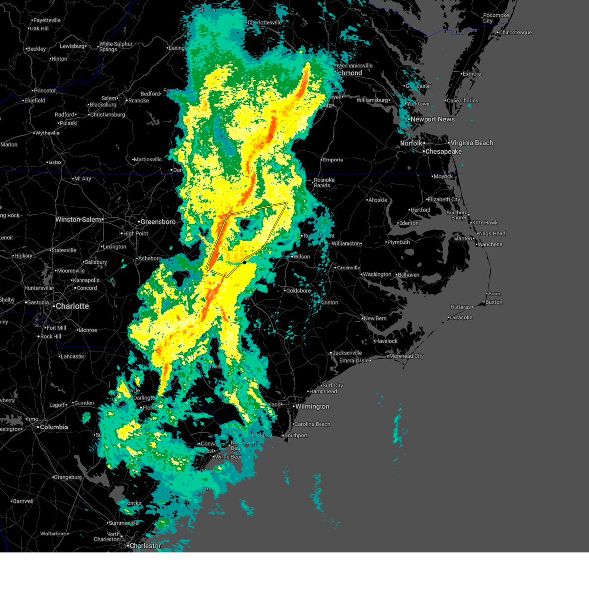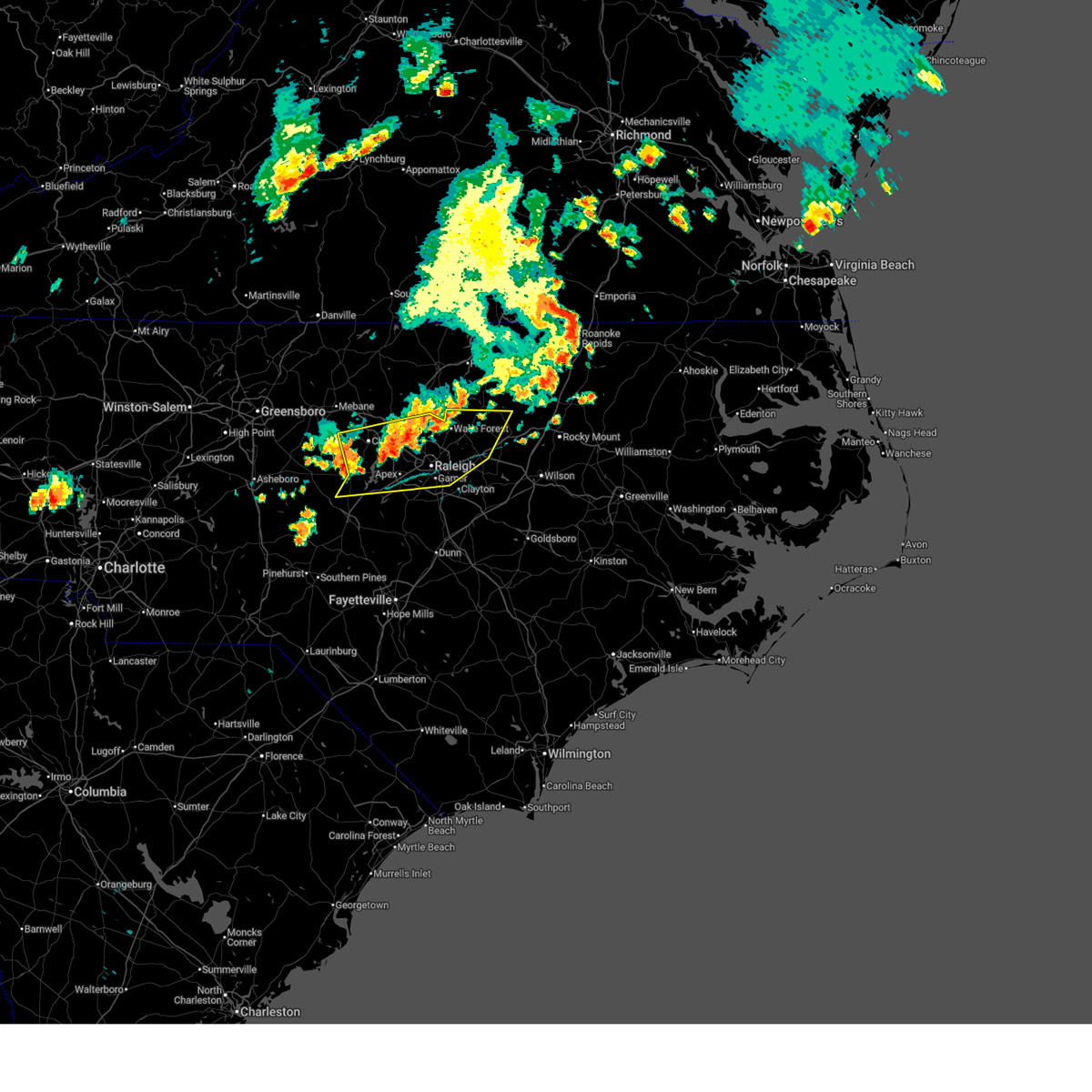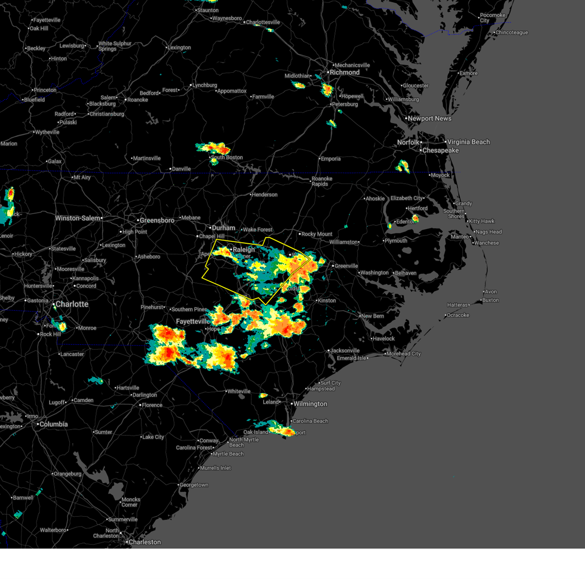 At 909 pm edt, a severe thunderstorm was located from raleigh to near zebulon, or 15 miles south of louisburg, moving east at 50 mph (radar indicated). Hazards include 60 mph wind gusts. Expect damage to roofs, siding, and trees. Locations impacted include, raleigh, cary, smithfield, garner, fuquay-varina, clayton, zebulon, bailey, bunn, and knightdale.