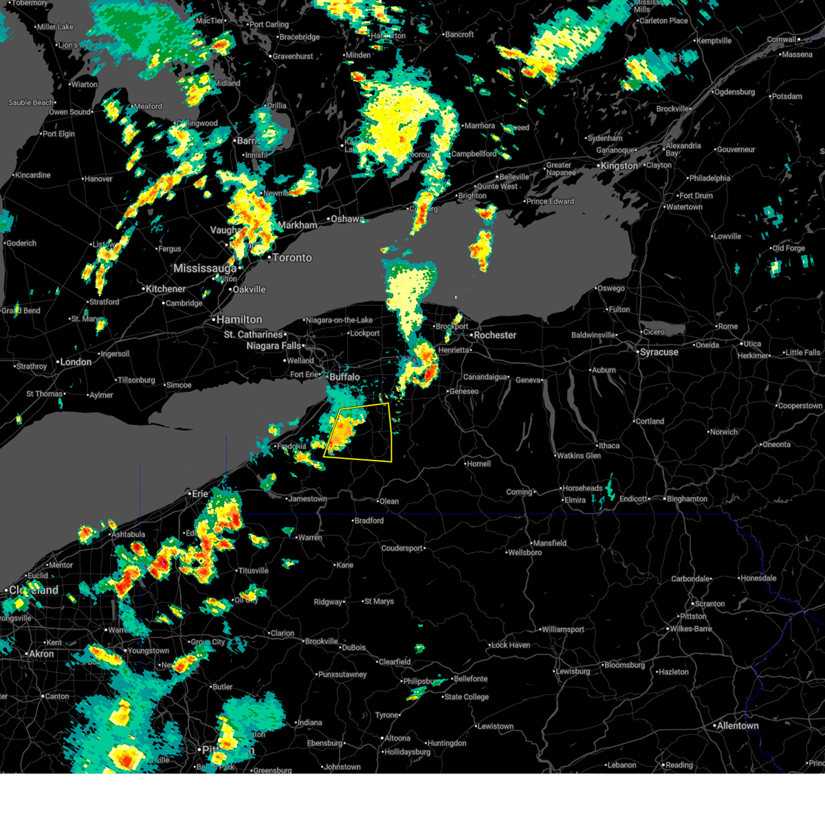 At 330 pm edt, severe thunderstorms were located along a line extending from near dunkirk to jamestown, moving northeast at 60 mph (law enforcement reported numerous downed trees and powerlines across chautuauqua county). Hazards include 70 mph wind gusts. Expect considerable tree damage. damage is likely to mobile homes, roofs, and outbuildings. locations impacted include, jamestown, dunkirk, fredonia, hamburg, east aurora, salamanca, allegany state park and evans. this includes the following highways, interstate 90 between exits 59 and 57a. interstate 86 between exits 11 and 21. A tornado watch remains in effect until 1000 pm edt for western new york.