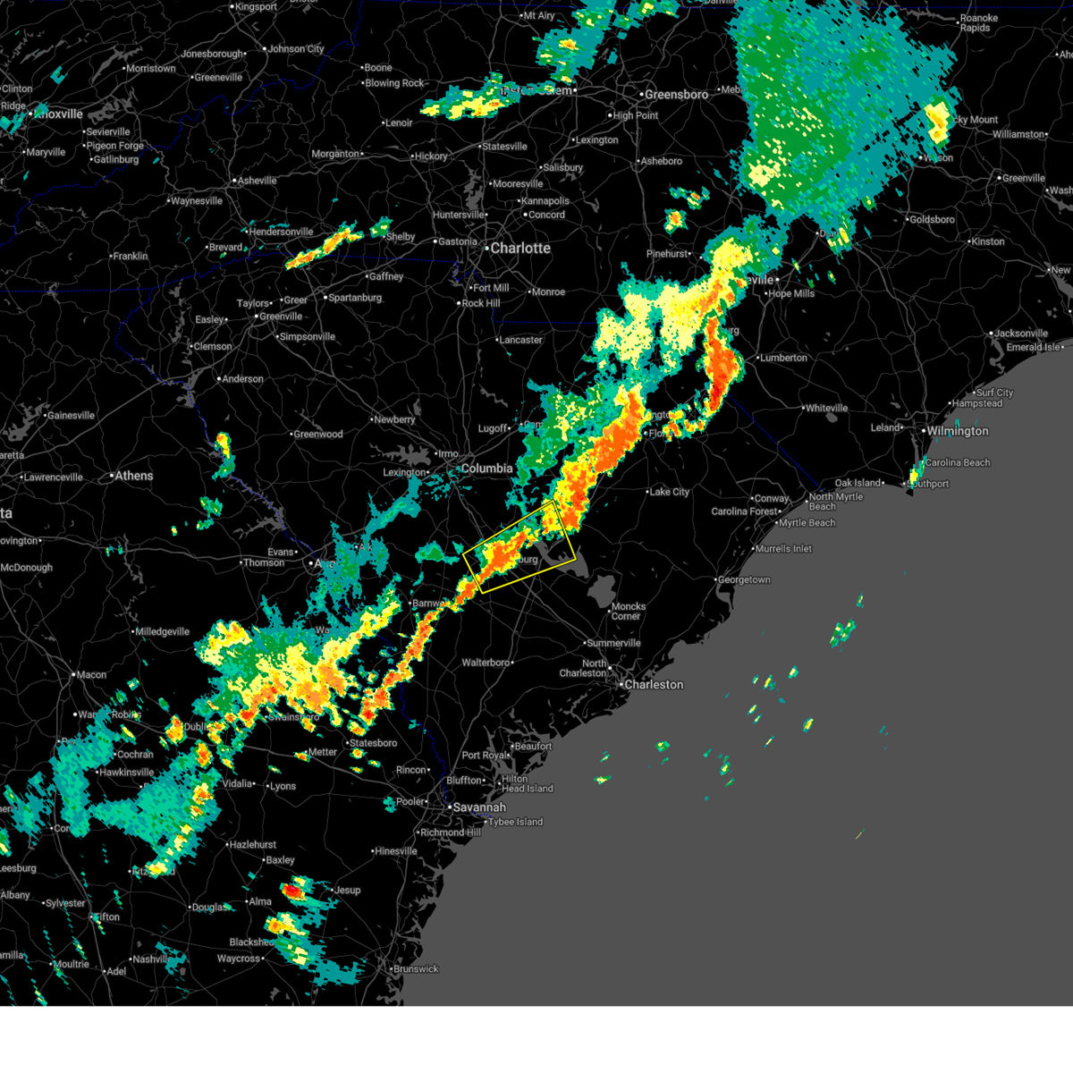 At 812 am est, severe thunderstorms were located along a line extending from 8 miles south of sandy run to near sylvania, moving east at 50 mph (radar indicated). Hazards include 60 mph wind gusts. Expect damage to trees and powerlines. locations impacted include, orangeburg, barnwell, bamberg, denmark, brookdale, blackville, st. matthews, claflin college, south carolina state university, orangeburg county airport, barnwell state park, edisto gardens, north, hilda, cameron, neeses, norway, rowesville, snelling, and olar. This includes interstate 26 between mile markers 138 and 153.