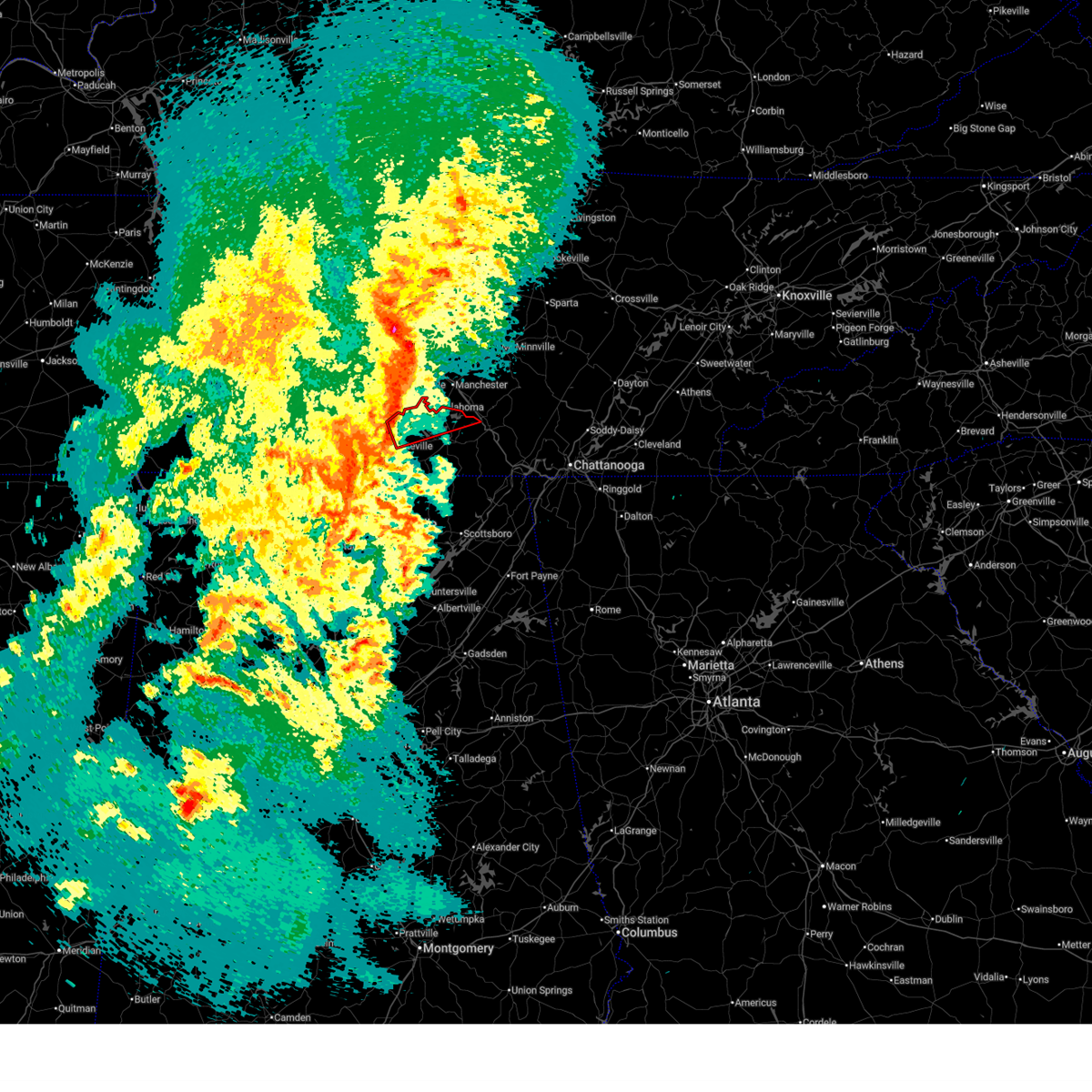At 408 pm cdt, a severe thunderstorm capable of producing a tornado was located near winchester, moving east at 50 mph (radar indicated rotation). Hazards include tornado. Flying debris will be dangerous to those caught without shelter. mobile homes will be damaged or destroyed. damage to roofs, windows, and vehicles will occur. tree damage is likely. this dangerous storm will be near, winchester and cowan around 415 pm cdt. sewanee around 425 pm cdt. other locations impacted by this tornadic thunderstorm include lexie crossroads, bass, beans creek, harmony, jericho, russell cave national monument, maxwell, st. Andrews, anderson, and belvidere.