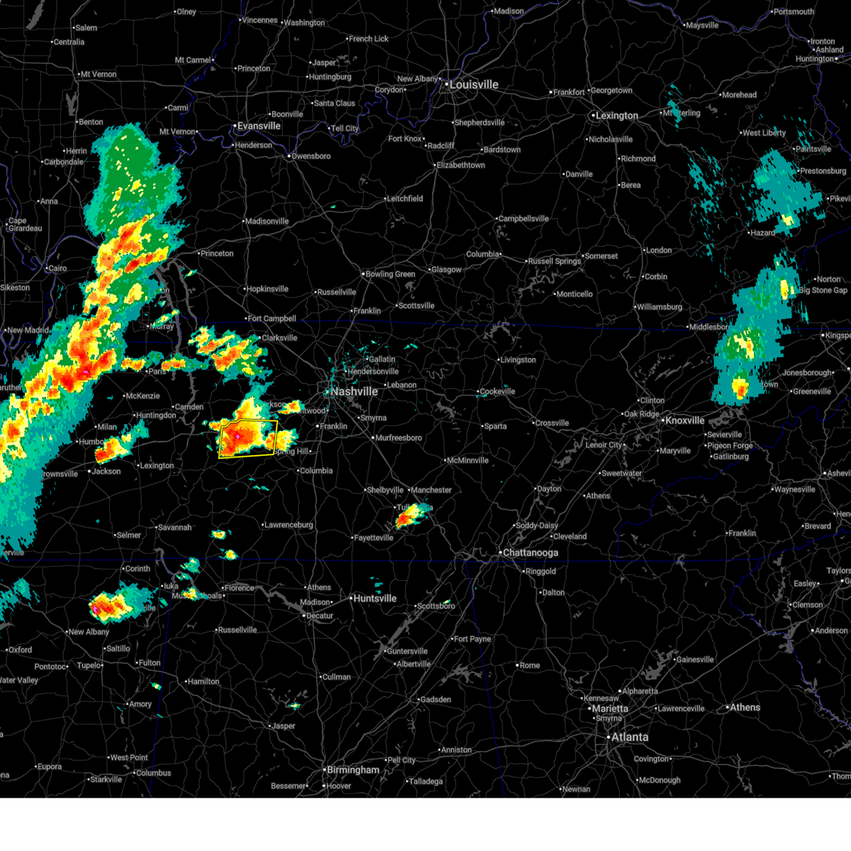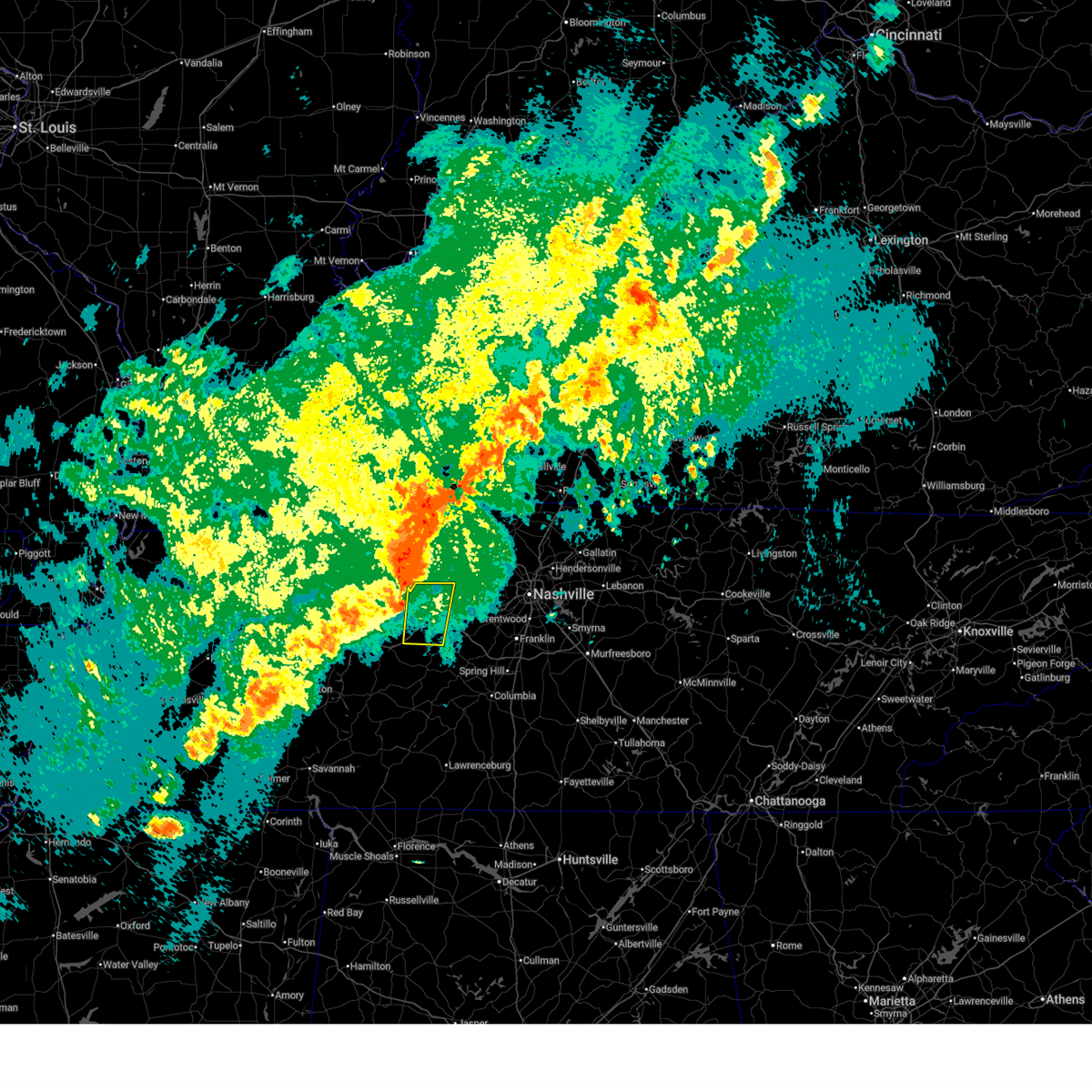 Torohx the national weather service in nashville has issued a * tornado warning for, southeastern dickson county in middle tennessee, northern maury county in middle tennessee, western williamson county in middle tennessee, hickman county in middle tennessee, * until 245 am cdt. * at 202 am cdt, a confirmed large and extremely dangerous tornado was located 8 miles southwest of centerville, moving northeast at 45 mph. this is a particularly dangerous situation. take cover now! (radar confirmed tornado). Hazards include damaging tornado. You are in a life-threatening situation. flying debris may be deadly to those caught without shelter. mobile homes will be destroyed. considerable damage to homes, businesses, and vehicles is likely and complete destruction is possible. the tornado will be near, centerville around 205 am cdt. other locations impacted by this tornadic thunderstorm include santa fe, bon aqua, pinewood, primm springs, williamsport, leipers fork, lyles, and nunnelly. this includes the following highways, interstate 40 between mile markers 170 and 184. interstate 65 near mile marker 54. Interstate 840 between mile markers 1 and 26.