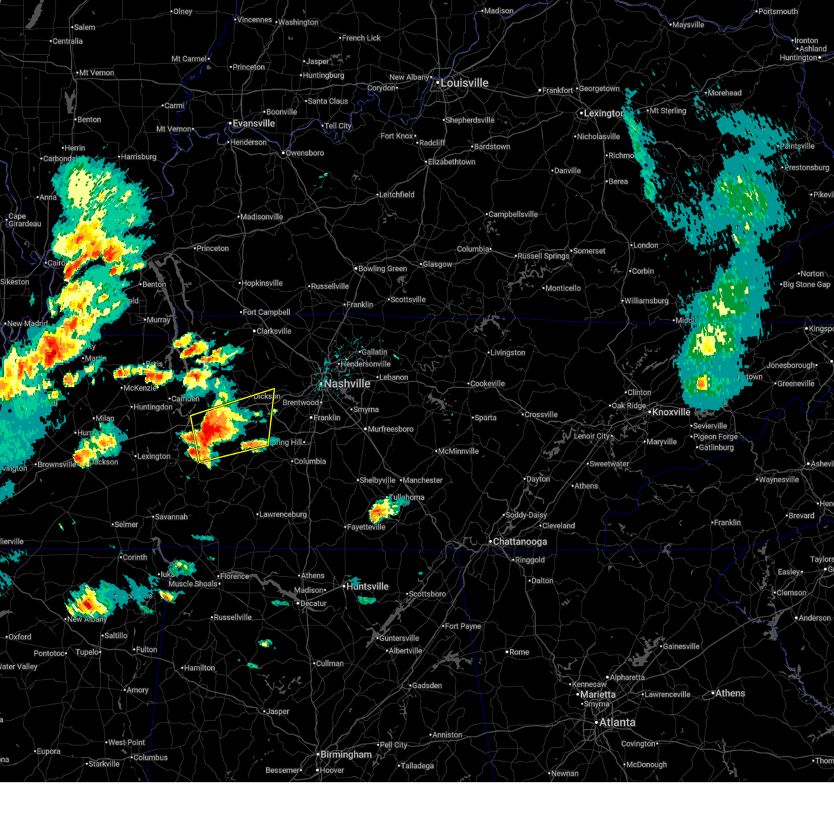 At 404 pm cdt, a severe thunderstorm was located near centerville, moving east at 35 mph (radar indicated). Hazards include tennis ball size hail and 70 mph wind gusts. People and animals outdoors will be injured. expect hail damage to roofs, siding, windows, and vehicles. expect considerable tree damage. wind damage is also likely to mobile homes, roofs, and outbuildings. Locations impacted include, franklin, forest hills, bon aqua, spring hill, thompson's station, brentwood, primm springs, lyles, bellevue, natchez trace at highway 96, santa fe, fairview, leipers fork, oak hill, belle meade, and centerville.