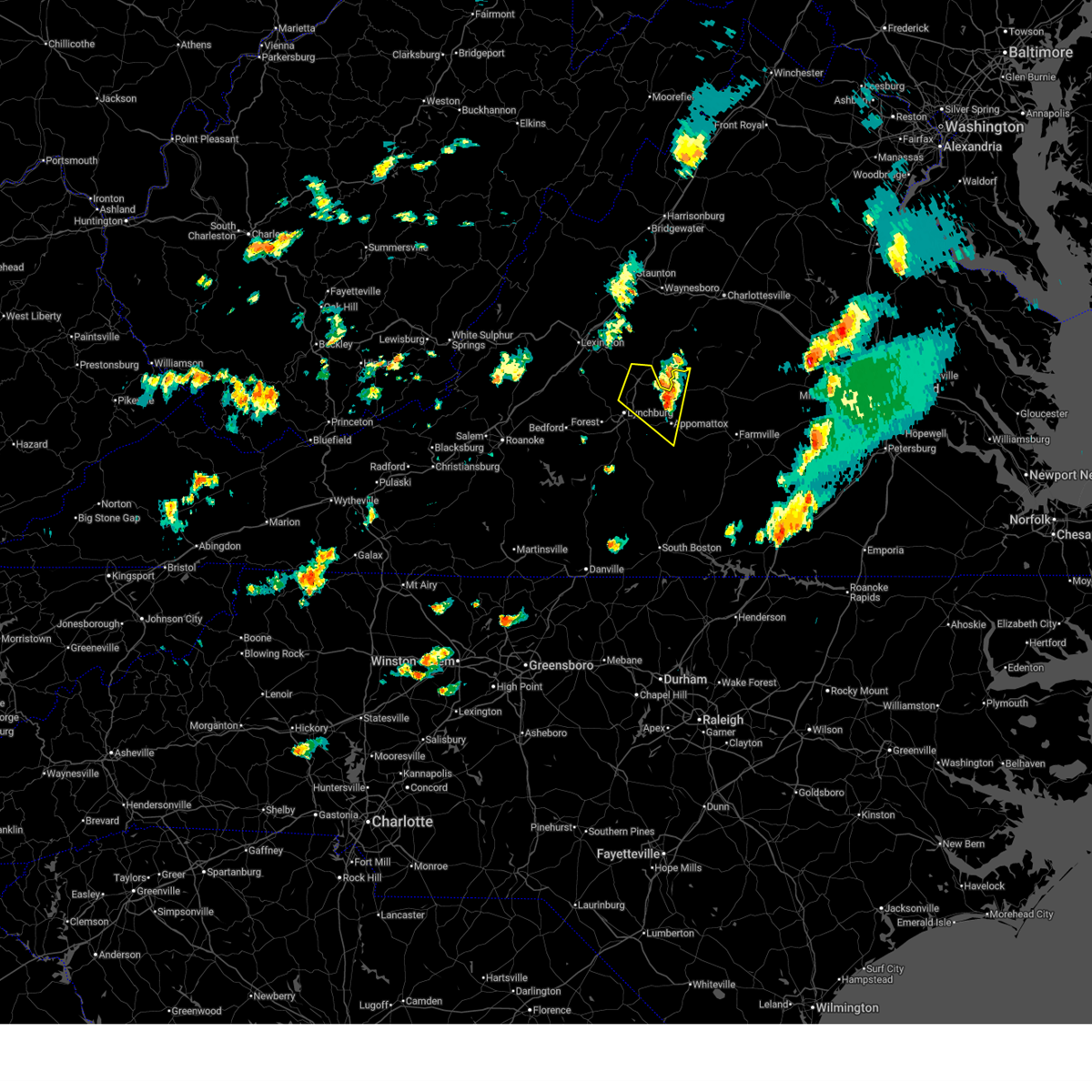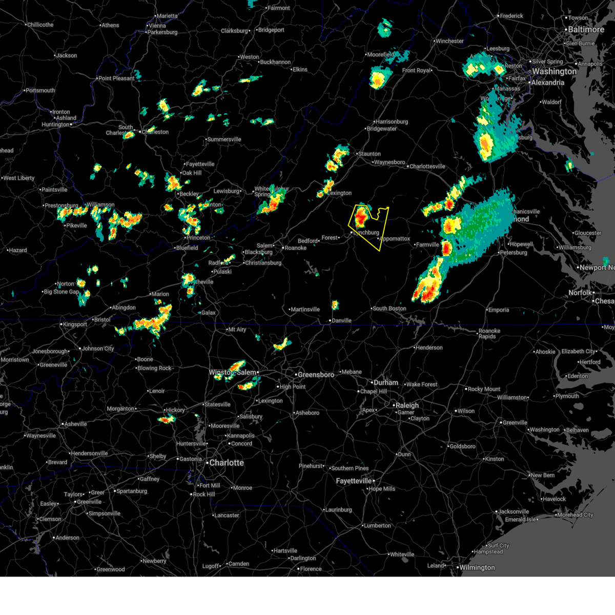 Svrrnk the national weather service in blacksburg has issued a * severe thunderstorm warning for, appomattox county in central virginia, charlotte county in south central virginia, campbell county in central virginia, northern pittsylvania county in south central virginia, northwestern halifax county in south central virginia, buckingham county in central virginia, amherst county in central virginia, the city of lynchburg in central virginia, * until 545 pm edt. * at 421 pm edt, severe thunderstorms were located along a line extending from near pleasant view to near goode to near huddleston to smith mountain lake state park, moving east at 50 mph (radar indicated). Hazards include 60 mph wind gusts. expect damage to roofs, siding, and trees