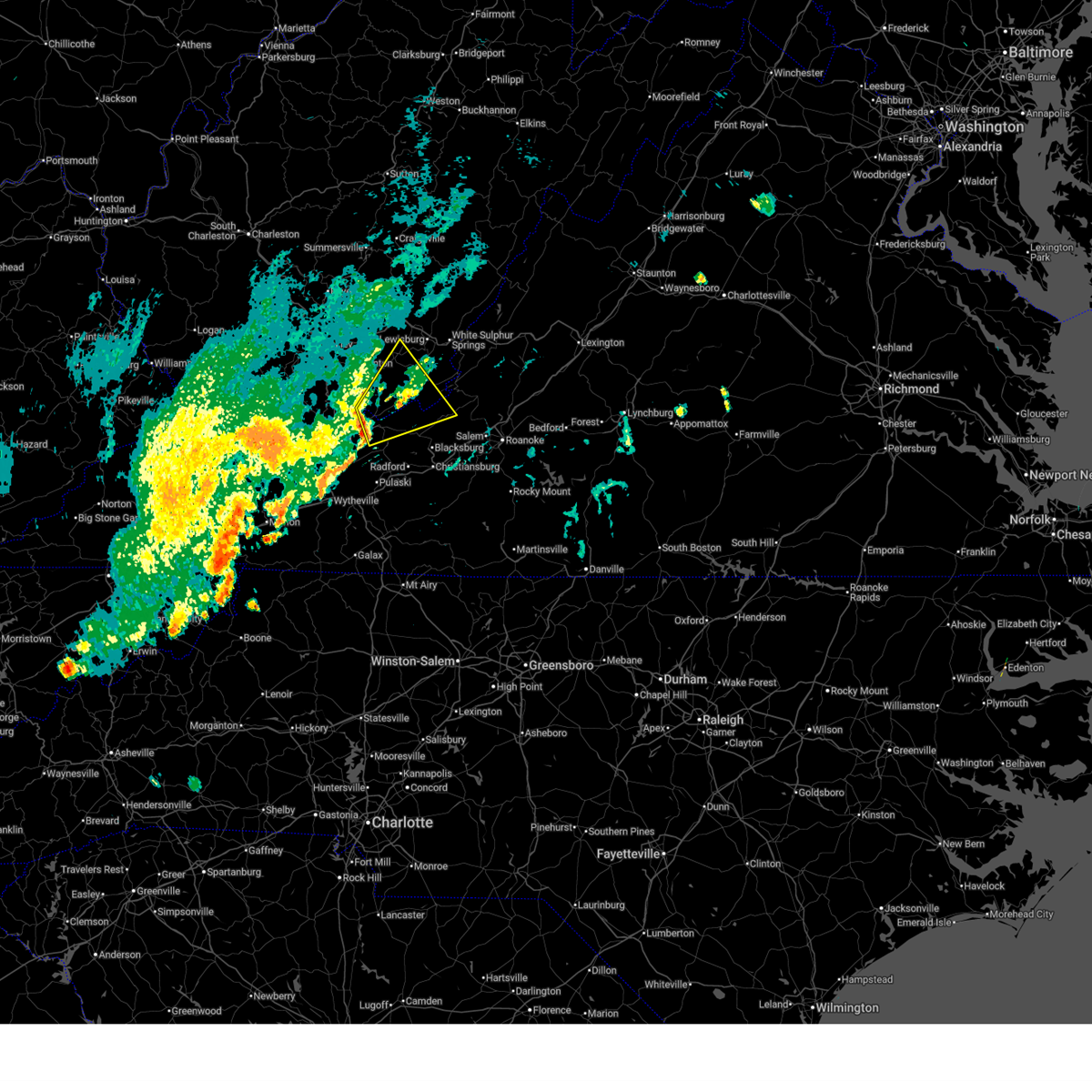 At 805 pm edt, severe thunderstorms were located along a line extending from near burnsville to near jordan mines to pembroke, moving east at 45 mph (radar indicated). Hazards include 60 mph wind gusts. Expect damage to roofs. siding and trees. locations impacted include, lexington, covington, clifton forge, pearisburg, and narrows. This includes vmi.