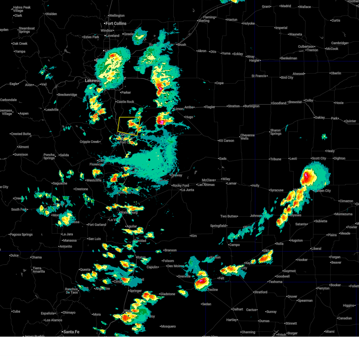 Svrpub the national weather service in pueblo has issued a * severe thunderstorm warning for, central el paso county in east central colorado, * until 700 pm mdt. * at 635 pm mdt, a severe thunderstorm was located over northeastern colorado springs, moving southeast at 20 mph (radar indicated). Hazards include 60 mph wind gusts and half dollar size hail. Hail damage to vehicles is expected. expect wind damage to roofs, siding, and trees. This storm has a long history of producing hailstones between the size of quarters and golfballs.
