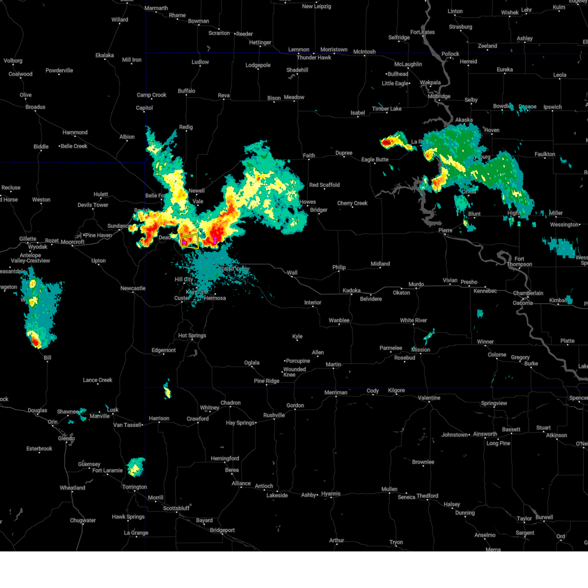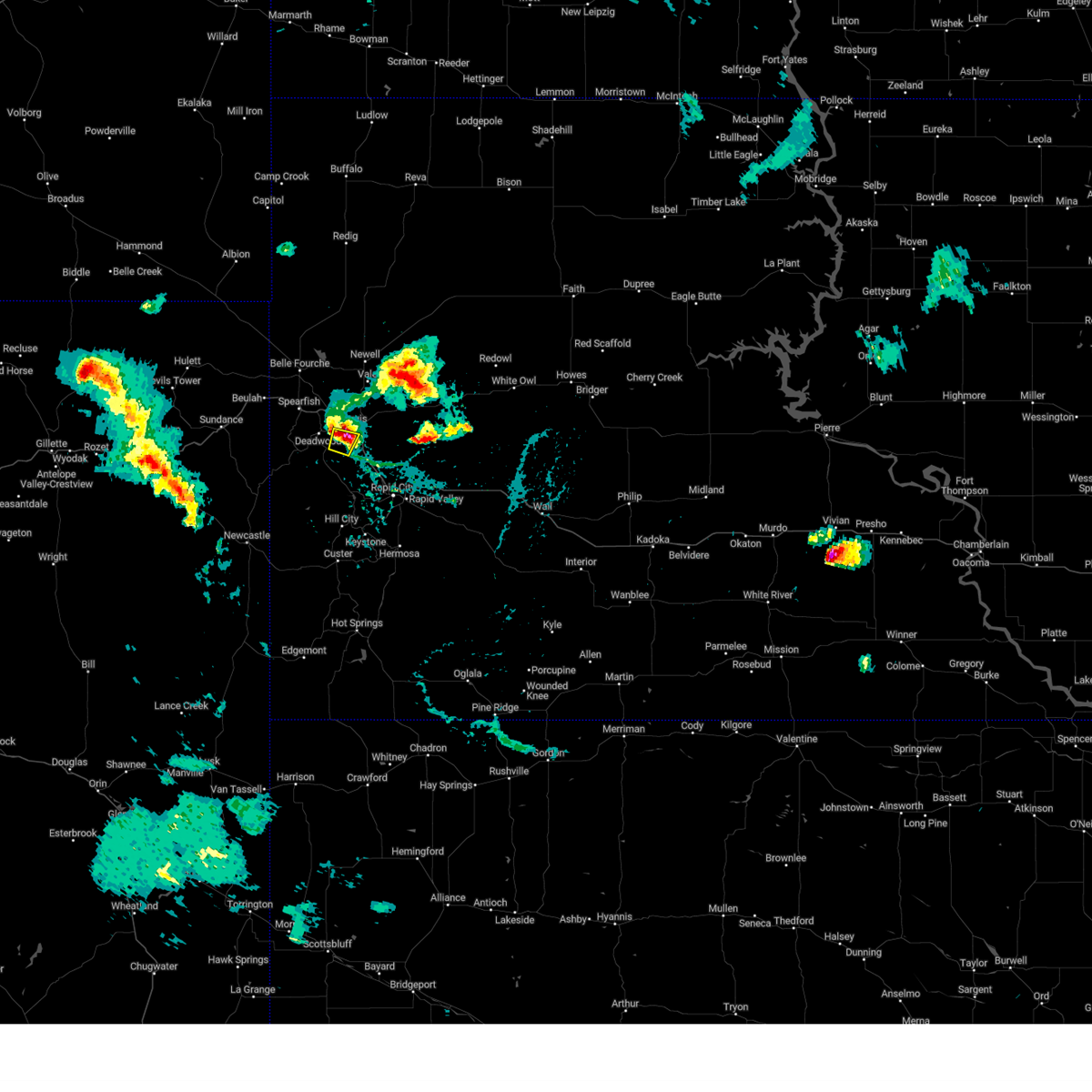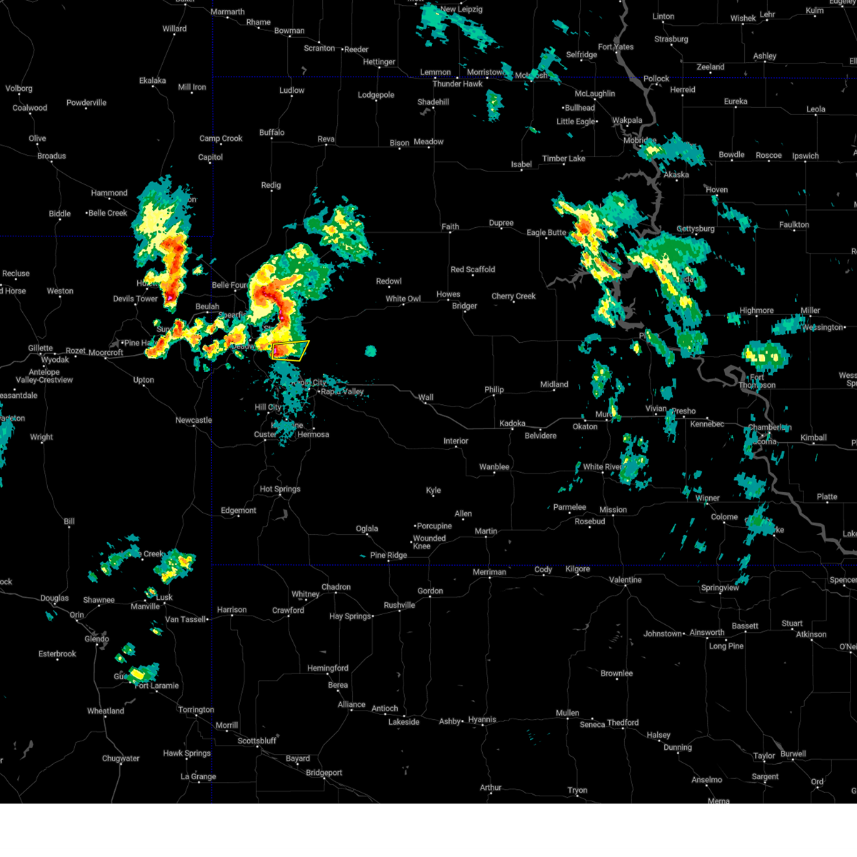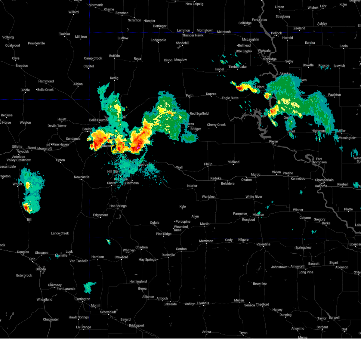 At 321 pm mdt, severe thunderstorms were located along a line extending from near sturgis to near o`neil pass, moving east at 45 mph (radar indicated). Hazards include 60 mph wind gusts and quarter size hail. Hail damage to vehicles is expected. expect wind damage to roofs, siding, and trees. severe thunderstorms will be near, sturgis and fort meade around 325 pm mdt. rochford and roubaix lake around 340 pm mdt. mystic around 345 pm mdt. nemo, silver city and pactola reservoir around 350 pm mdt. johnson siding around 355 pm mdt. hisega around 400 pm mdt. black hawk and hereford around 405 pm mdt. rapid city around 410 pm mdt. this includes interstate 90 in south dakota between mile markers 26 and 66. A tornado watch remains in effect until 900 pm mdt for west central south dakota.
