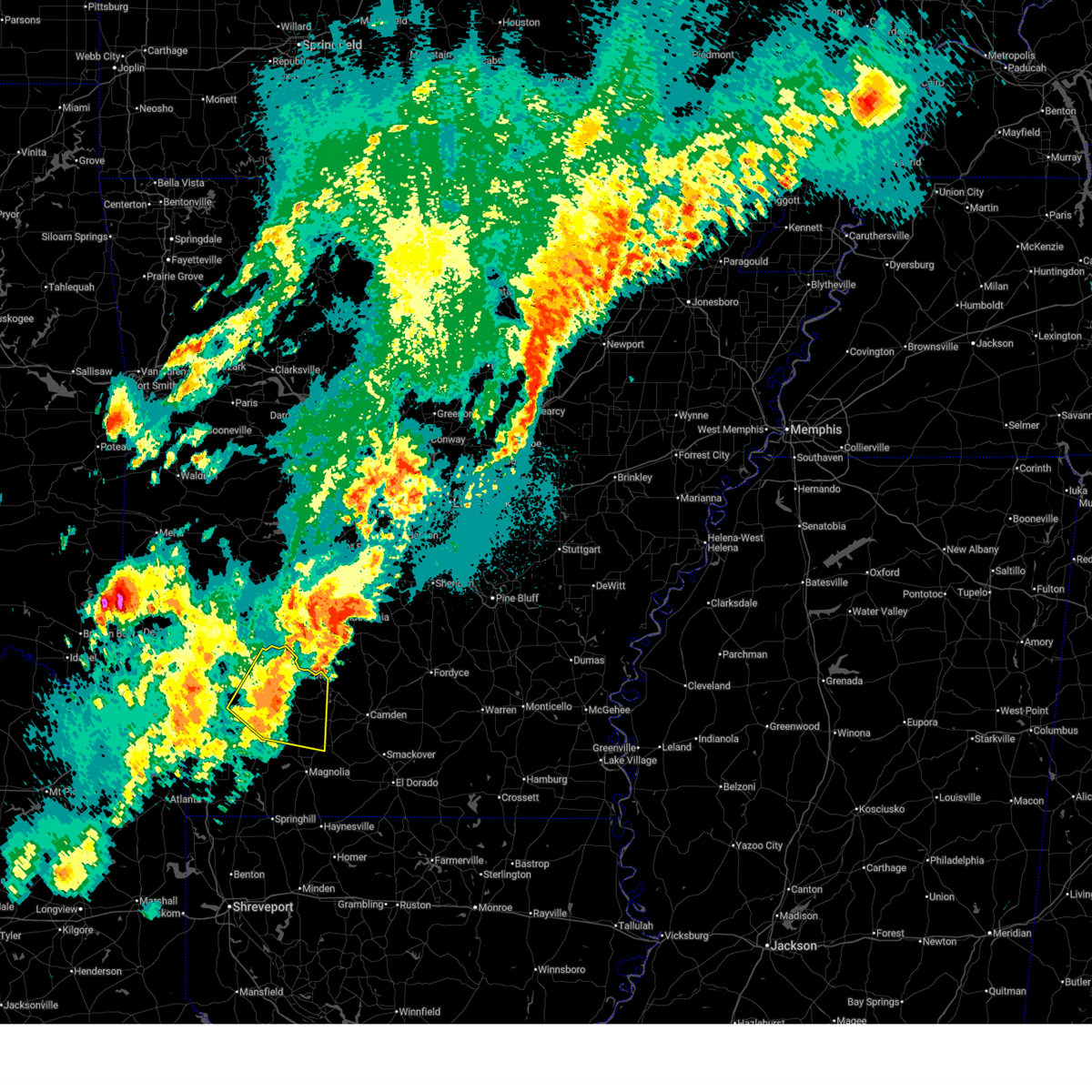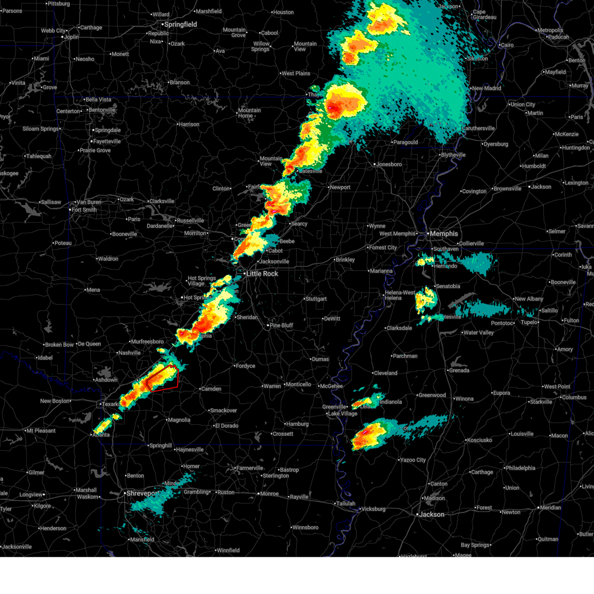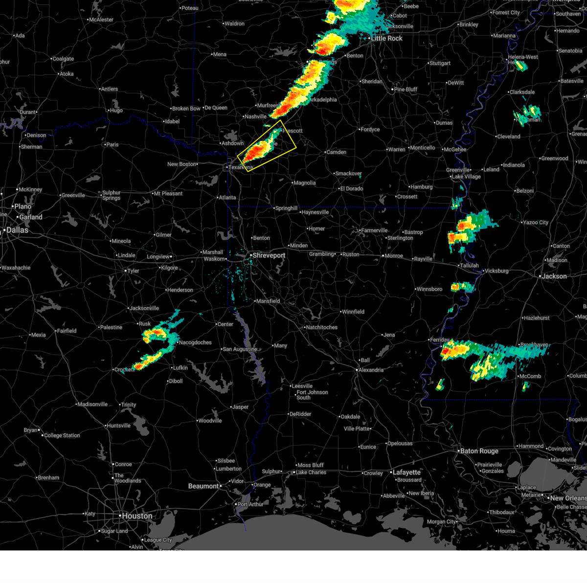At 504 pm cdt, a severe thunderstorm capable of producing a tornado was located near stamps, moving northeast at 50 mph (radar indicated rotation). Hazards include tornado and quarter size hail. Flying debris will be dangerous to those caught without shelter. mobile homes will be damaged or destroyed. damage to roofs, windows, and vehicles will occur. tree damage is likely. this dangerous storm will be near, bodcaw around 510 pm cdt. willisville around 515 pm cdt. rosston around 520 pm cdt. Other locations impacted by this tornadic thunderstorm include mount moriah, sutton, waterloo, piney grove, falcon, and patmos.