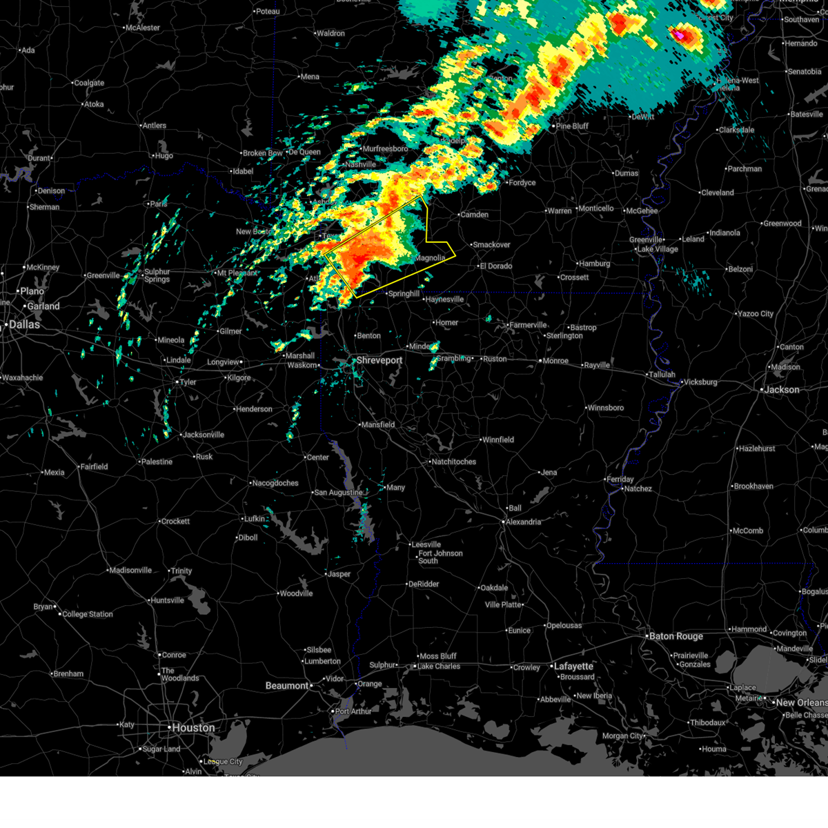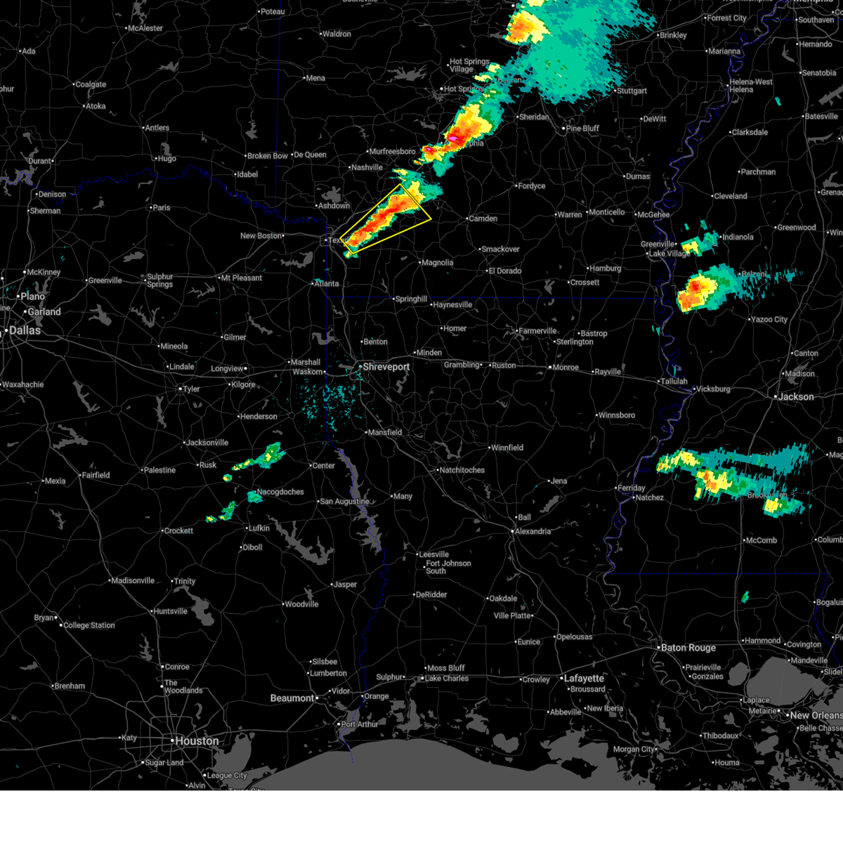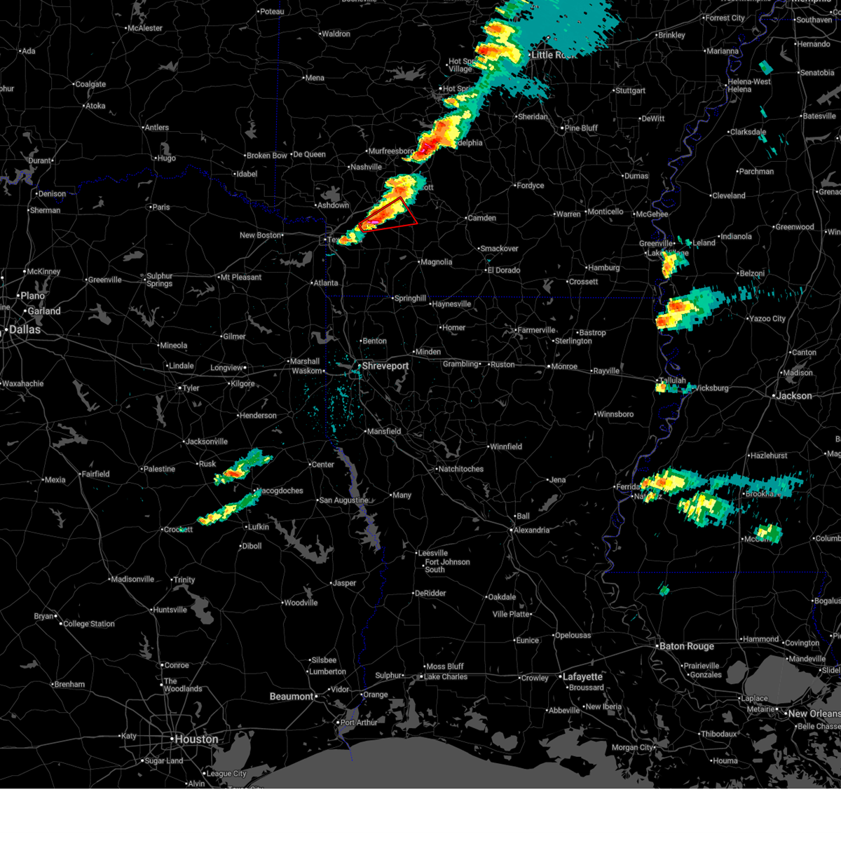 At 504 pm cdt, a severe thunderstorm capable of producing a tornado was located near stamps, moving northeast at 50 mph (radar indicated rotation). Hazards include tornado and quarter size hail. Flying debris will be dangerous to those caught without shelter. mobile homes will be damaged or destroyed. damage to roofs, windows, and vehicles will occur. tree damage is likely. this dangerous storm will be near, bodcaw around 510 pm cdt. willisville around 515 pm cdt. rosston around 520 pm cdt. Other locations impacted by this tornadic thunderstorm include mount moriah, sutton, waterloo, piney grove, falcon, and patmos.