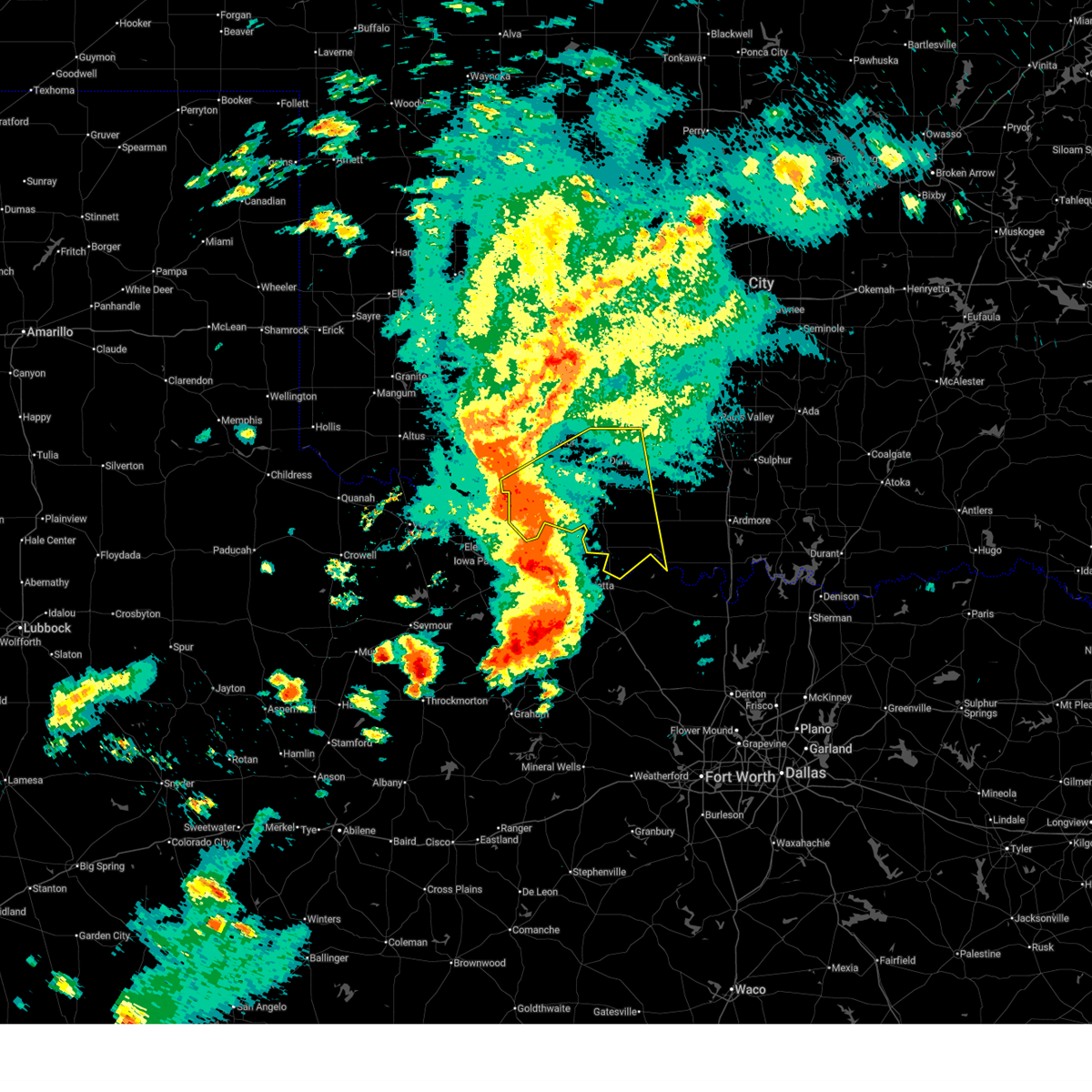 At 702 pm cdt, severe thunderstorms were located along a line extending from 4 miles west of walters to 3 miles east of byers to 5 miles east of henrietta to 11 miles south of bluegrove, moving northeast at 35 mph (radar indicated. there have also been numerous reports of 60 to 80 mph wind gusts and damage across southwest oklahoma and western north texas. seek shelter and stay away from windows!). Hazards include 70 mph wind gusts and half dollar size hail. Hail damage to vehicles is expected. expect considerable tree damage. Wind damage is also likely to mobile homes, roofs and outbuildings.