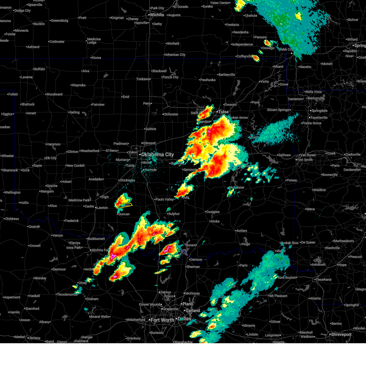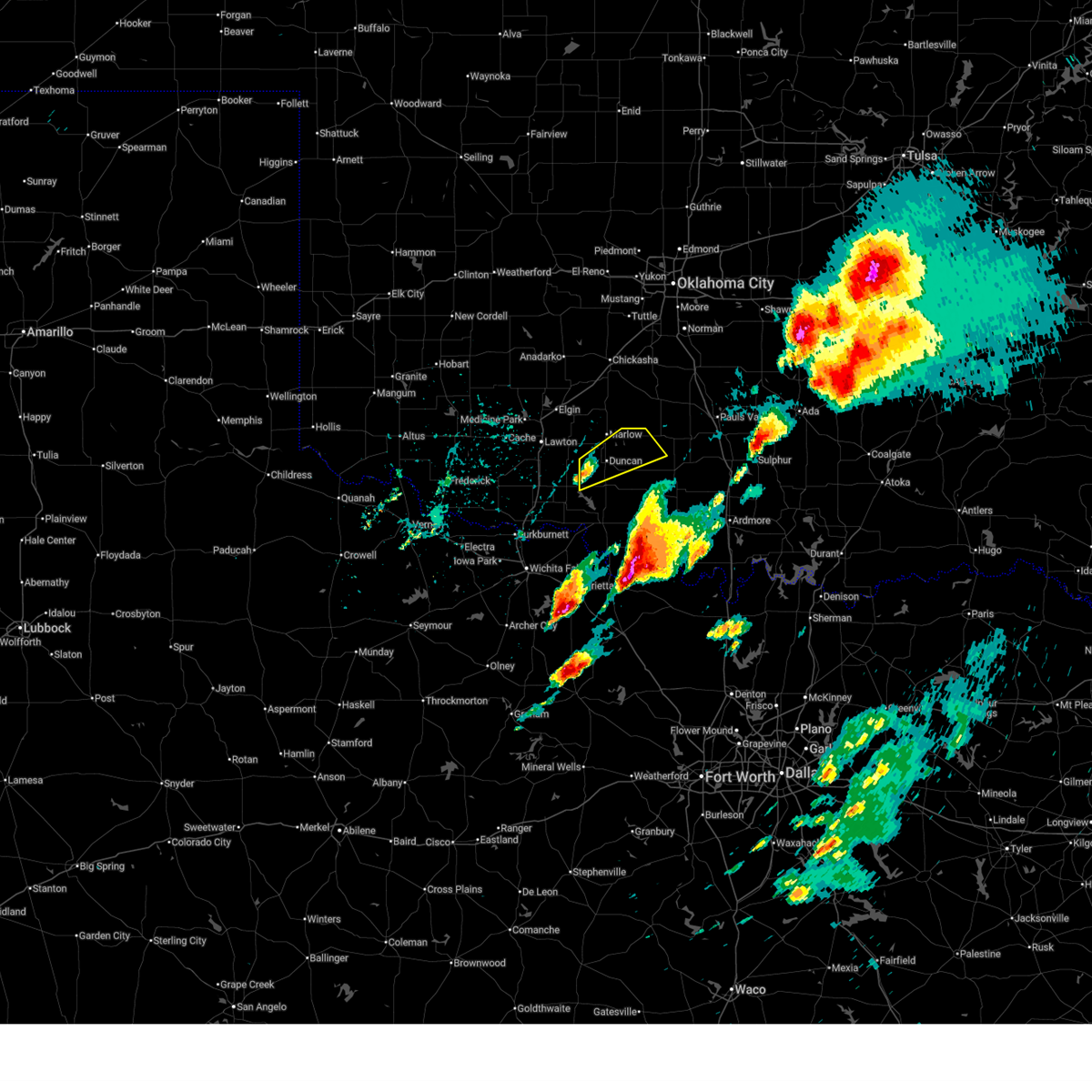 At 758 pm cdt, severe thunderstorms were located along a line extending from near duncan to 4 miles south of loco to near oscar, moving northeast at 35 mph. these are very dangerous storms (radar indicated). Hazards include 80 mph wind gusts and quarter size hail. Flying debris will be dangerous to those caught without shelter. mobile homes will be heavily damaged. expect considerable damage to roofs, windows and vehicles. extensive tree damage and power outages are likely. Locations impacted include, duncan, marlow, waurika, healdton, wilson, comanche, bray, ringling, ryan, velma, terral, loco, ratliff city, addington, leon, sugden, oscar, corum, rubottom and grady.