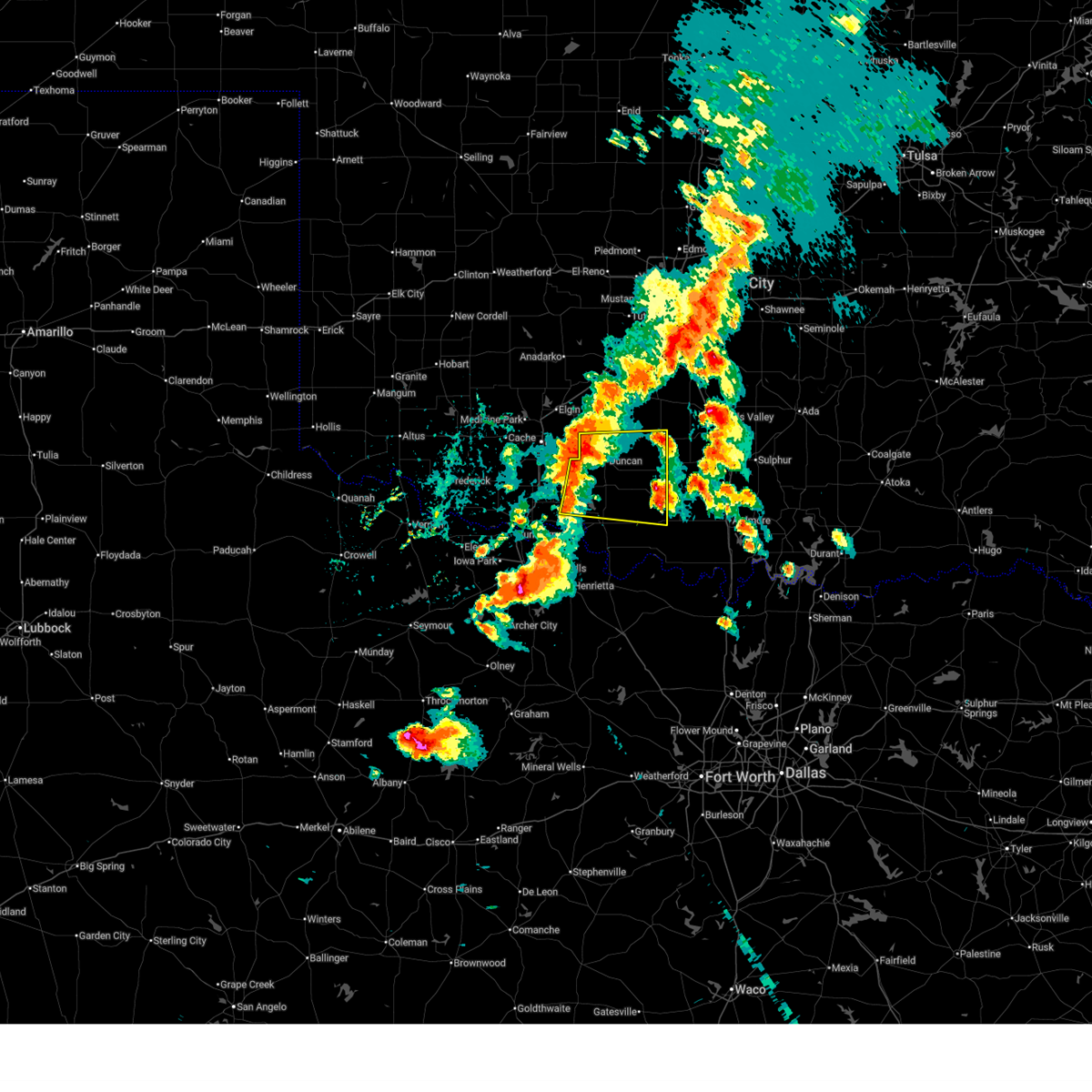 At 827 am cdt, severe thunderstorms were located4 miles northwest of duncan and 7 miles northwest of comanche, moving east at 30 mph (radar indicated). Hazards include 60 mph wind gusts and quarter size hail. Hail damage to vehicles is expected. expect wind damage to roofs, siding, and trees. Locations impacted include, duncan, marlow, bray, velma, central high, and empire city.