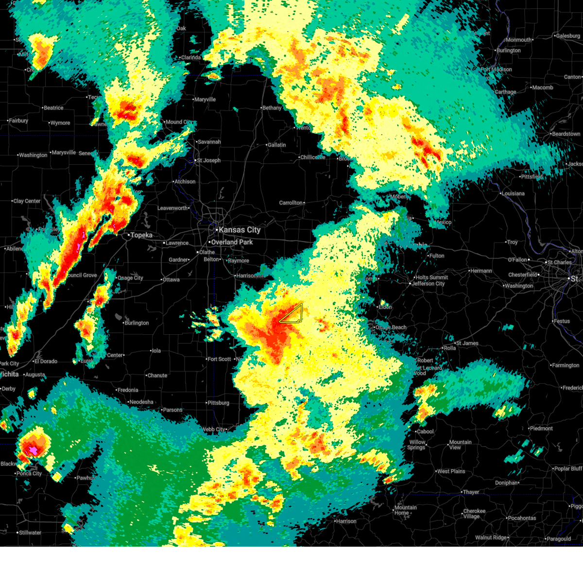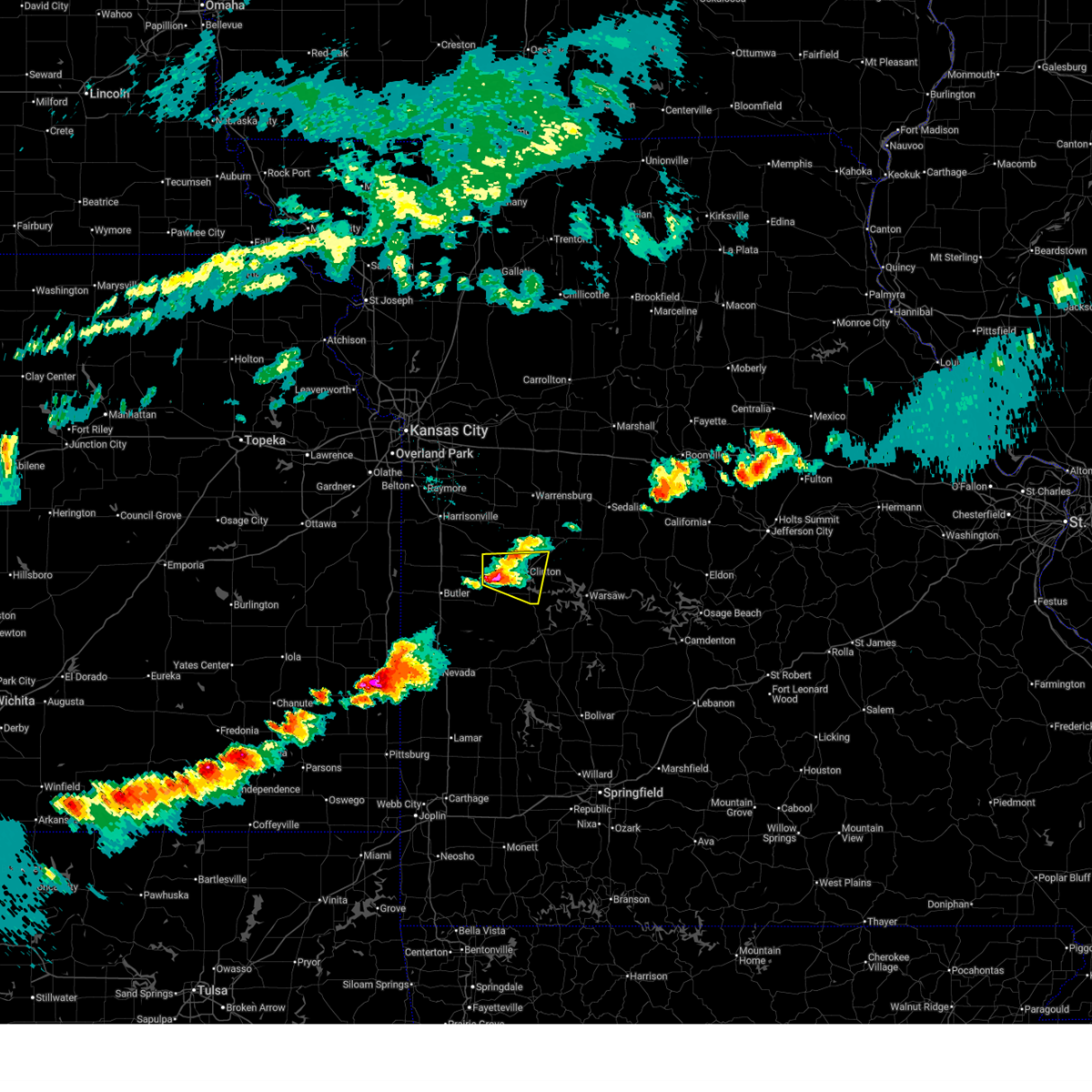 At 103 pm cdt, severe thunderstorms were located along a line extending from near oak grove to holden to 8 miles northwest of montrose, moving east at 40 mph. these are very dangerous storms (trained weather spotters). Hazards include baseball size hail and 70 mph wind gusts. ***the most severe portion of the storm will move across henry county, where winds up to 70 mph and baseball size hail is likely***. People and animals outdoors will be severely injured. expect shattered windows, extensive damage to roofs, siding, and vehicles. locations impacted include, warrensburg, clinton, oak grove, odessa, higginsville, windsor, knob noster, concordia, holden, whiteman air force base, leeton, urich, calhoun, deepwater, creighton, chilhowee, kingsville, mayview, whiteman afb and lake lafayette. this includes interstate 70 in missouri between mile markers 30 and 62. A tornado watch remains in effect until 700 pm cdt for central and west central missouri.